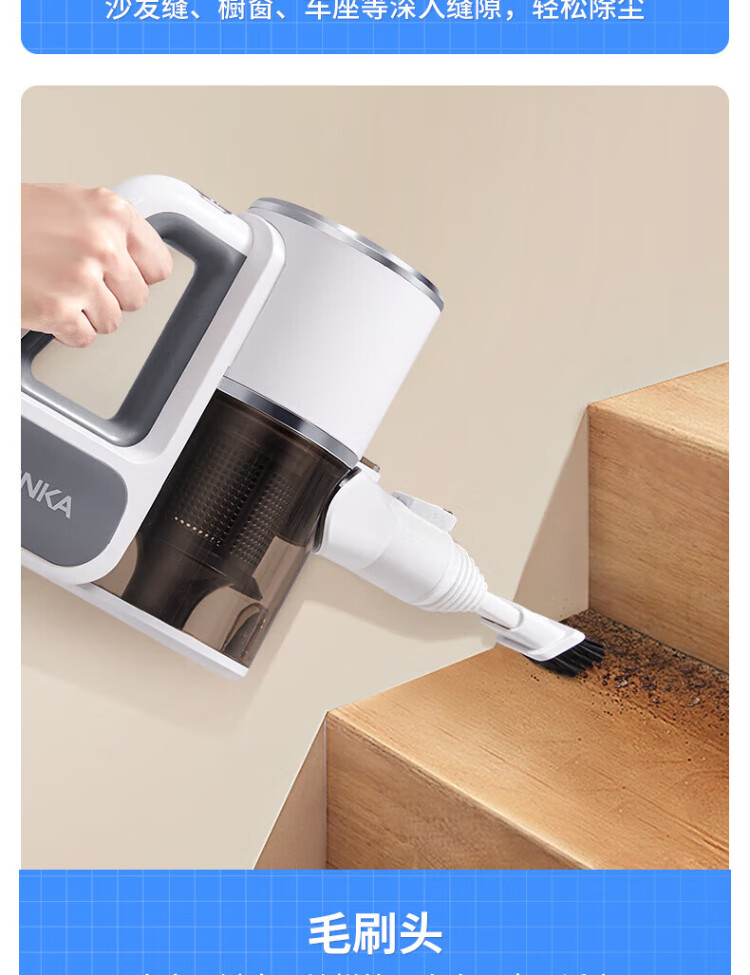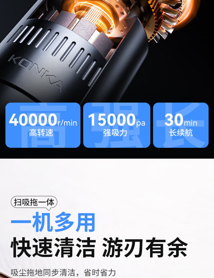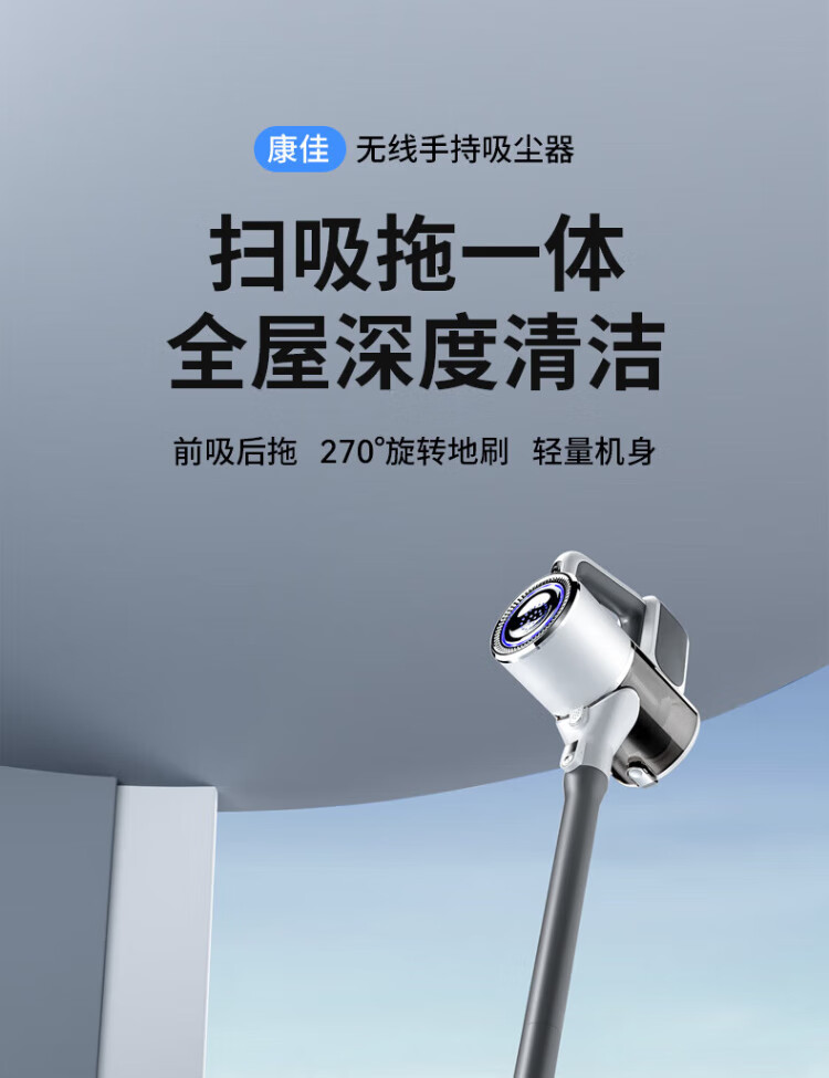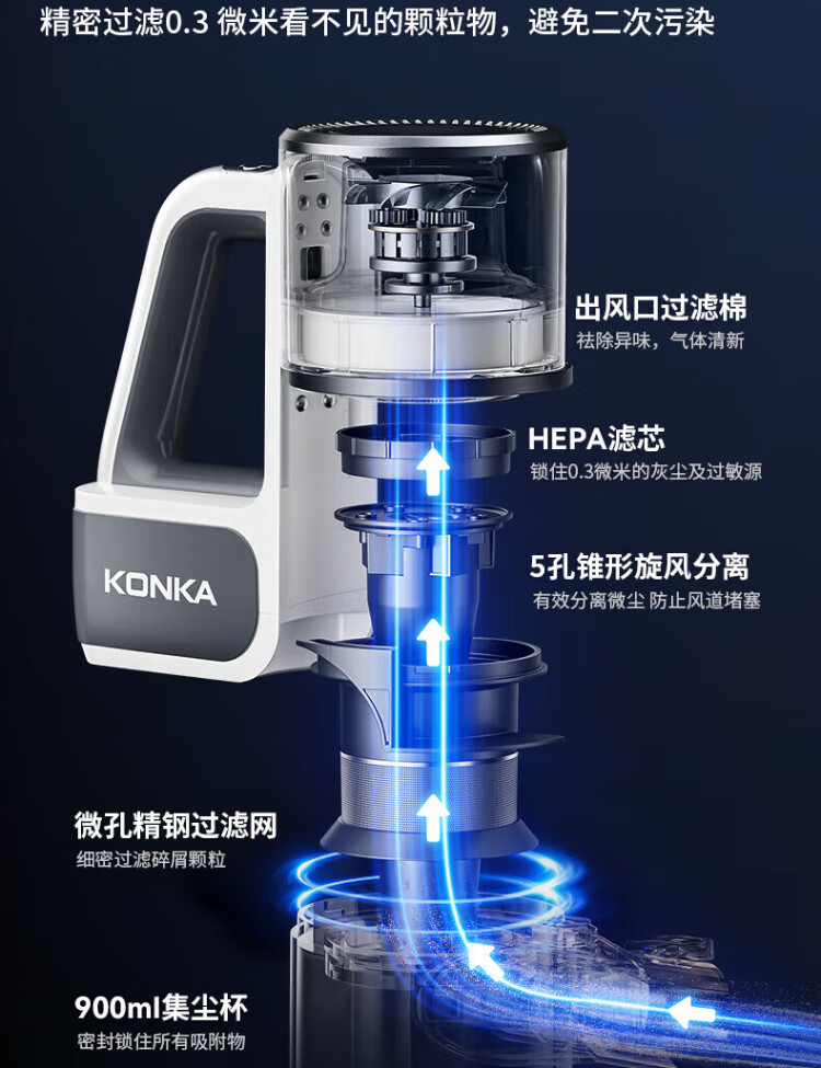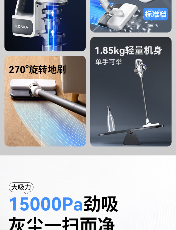 Konka 2025 vacuum cleaner wireless suction and mopping all-in-one home high suction handheld carpet scrubber small soft sound high power mite removal gray pine wireless 3 in 1 + filter element * 1 + brush head * 2 + mop * 1