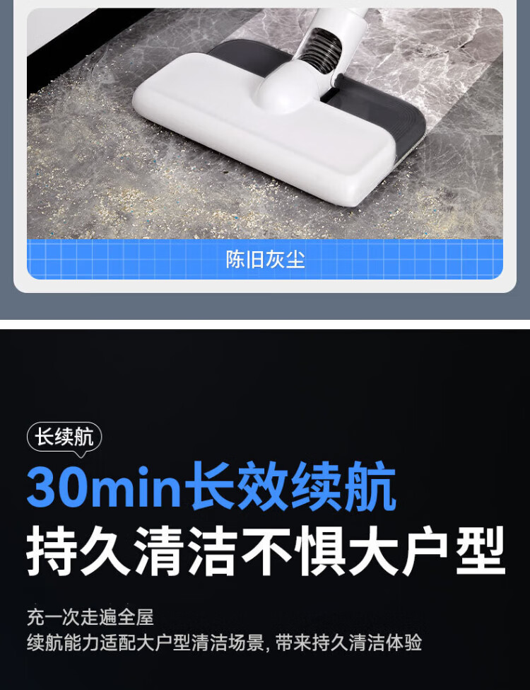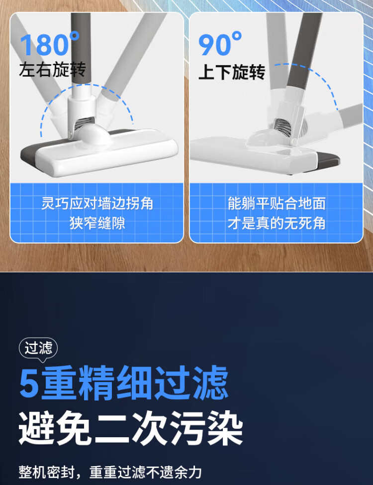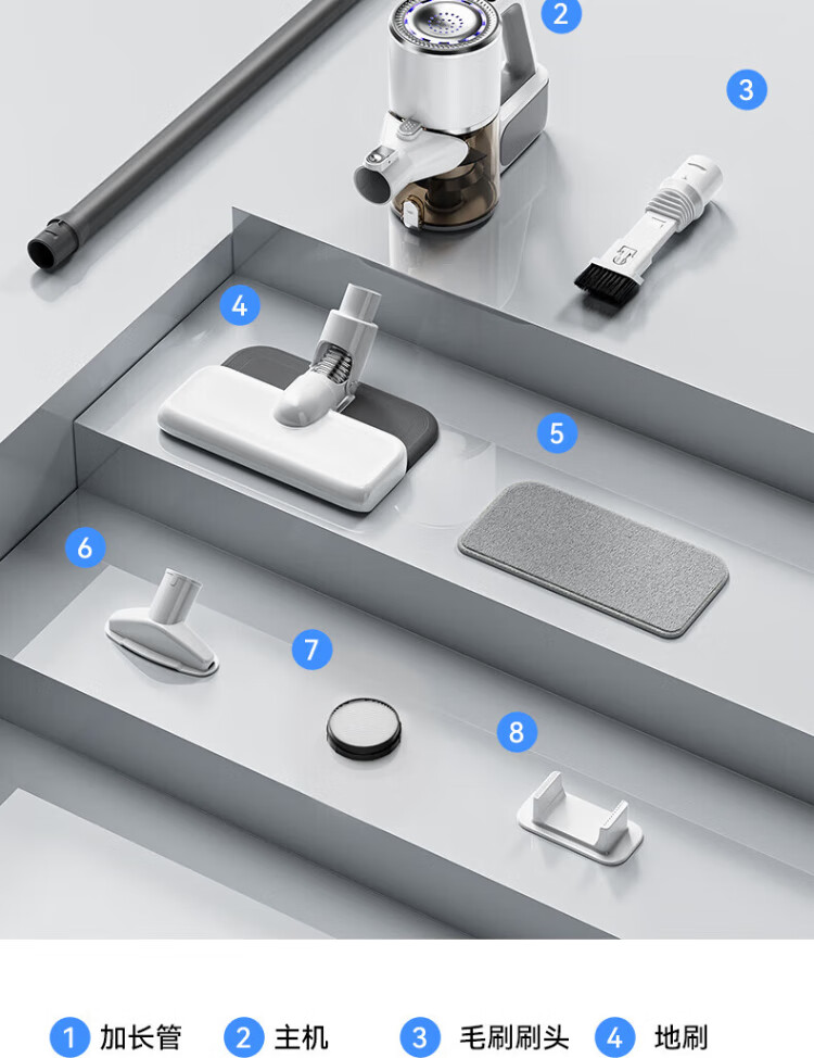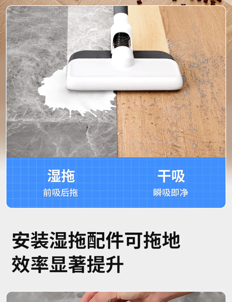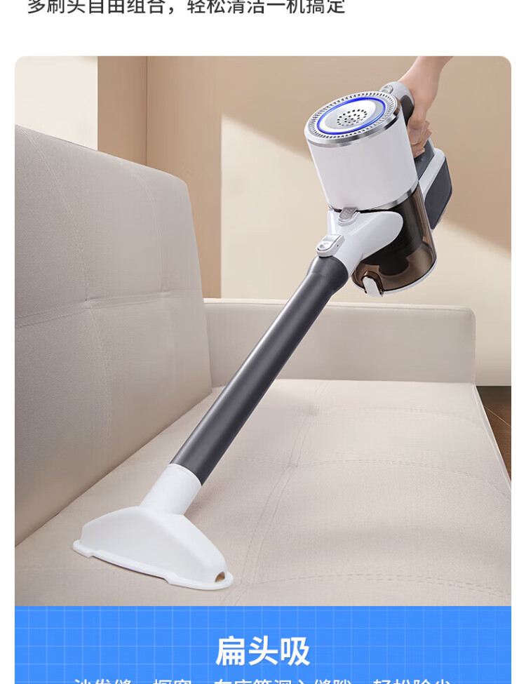 Konka 2025 vacuum cleaner wireless suction and mopping all-in-one home high suction handheld carpet scrubber small soft sound high power mite removal gray pine wireless 3 in 1 + filter element * 1 + brush head * 2 + mop * 1