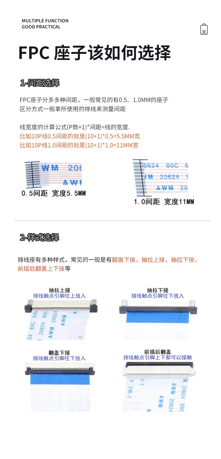 Zejie FFC/FPC connector 1.0/0.5MM drawer clamshell top and bottom connection socket 4/6/8/10/12/30~40P FFC/FPC 0.5mm-6P flip top and bottom connection (5 pieces)