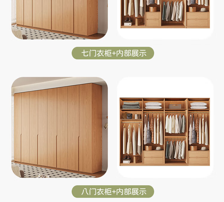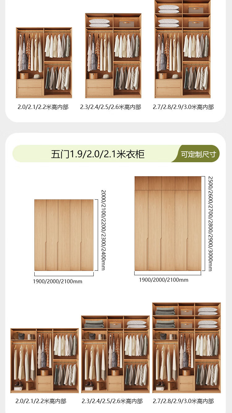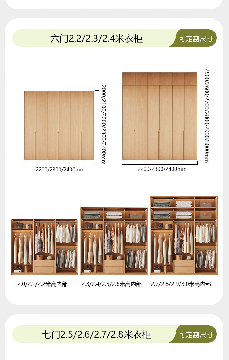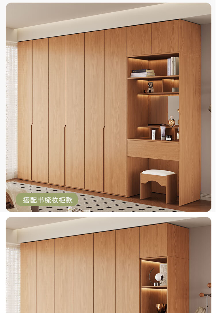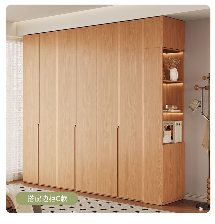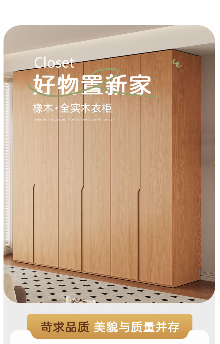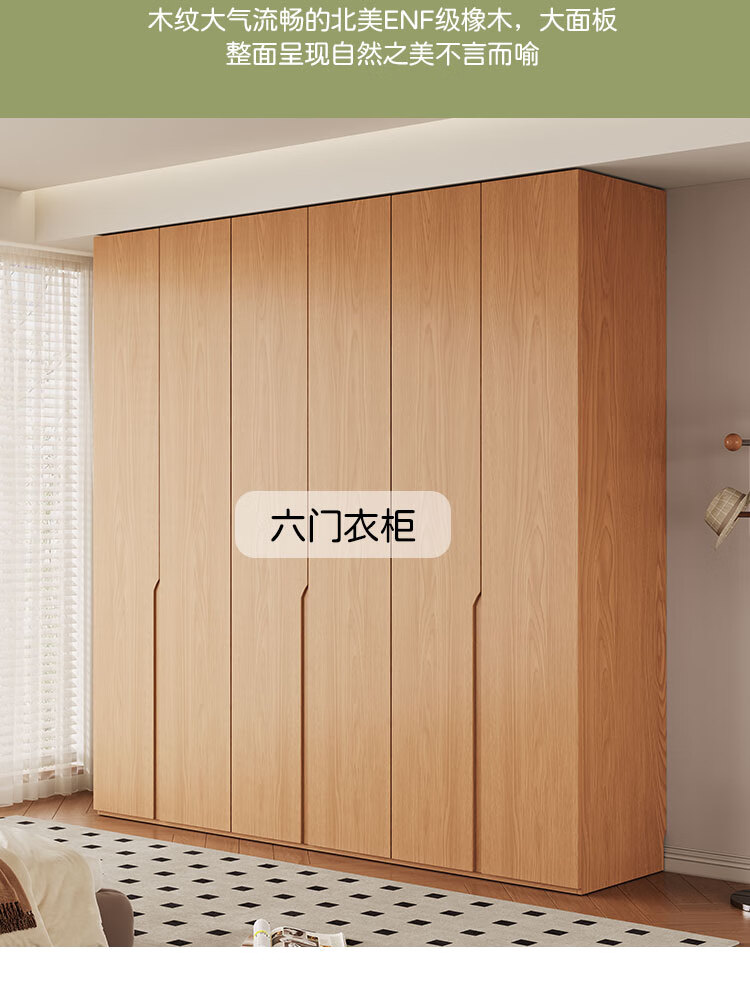 Jian Mu 0 aldehyde wardrobe customized 100% pure solid wood one door to top oak wardrobe bedroom home master bedroom handle free wardrobe 2.2 meters six door wardrobe 2.1 meters high one cabinet to top