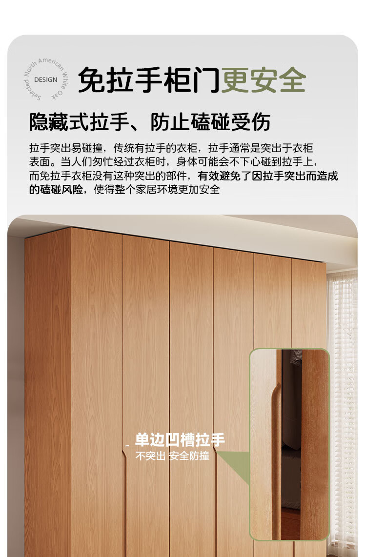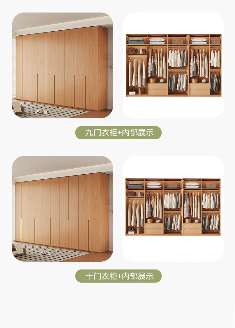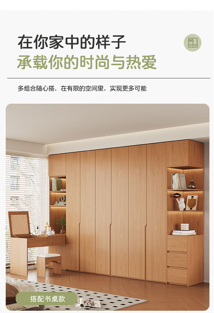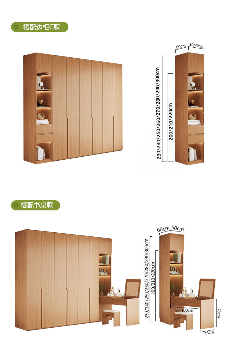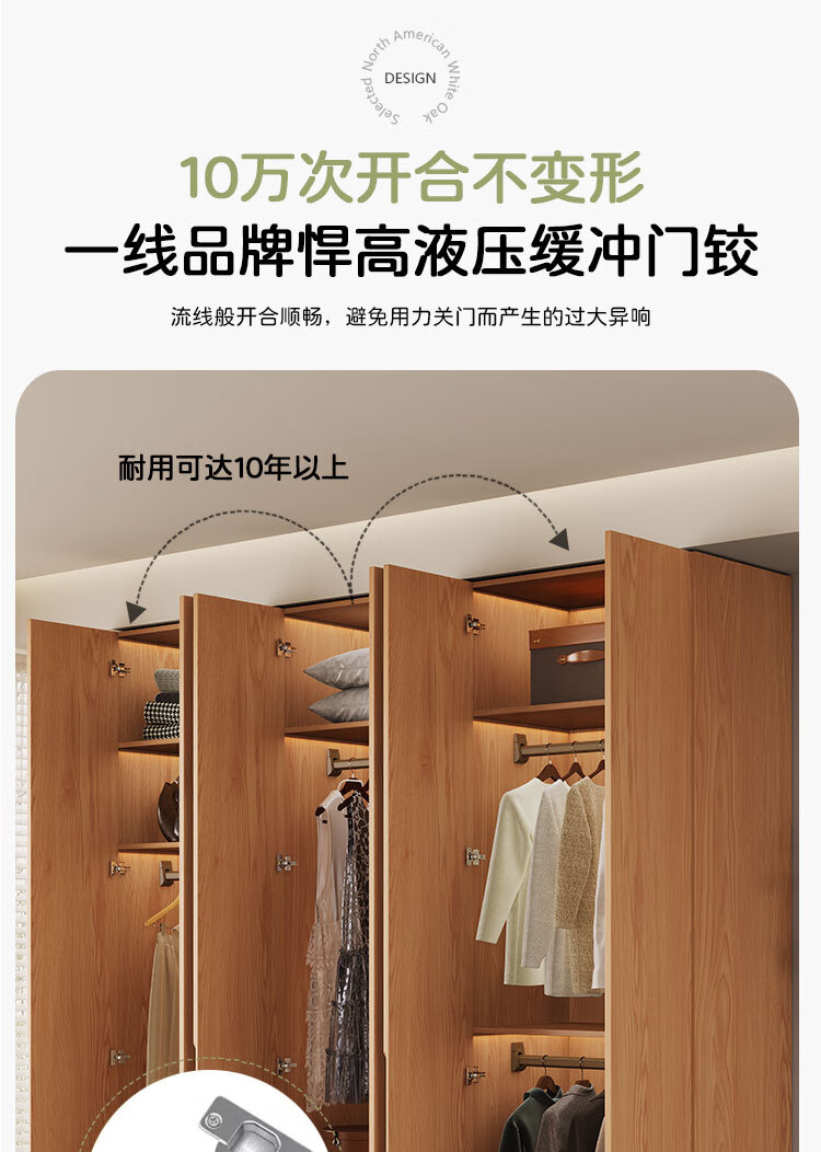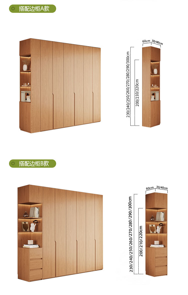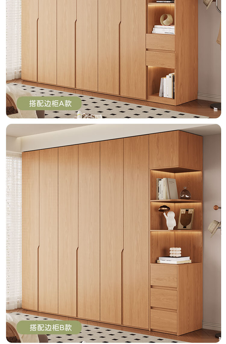 Jian Mu 0 aldehyde wardrobe customized 100% pure solid wood one door to top oak wardrobe bedroom home master bedroom handle free wardrobe 2.2 meters six door wardrobe 2.1 meters high one cabinet to top