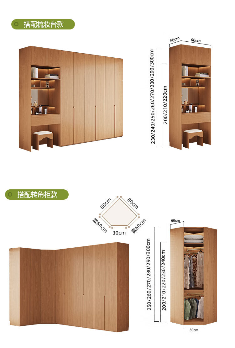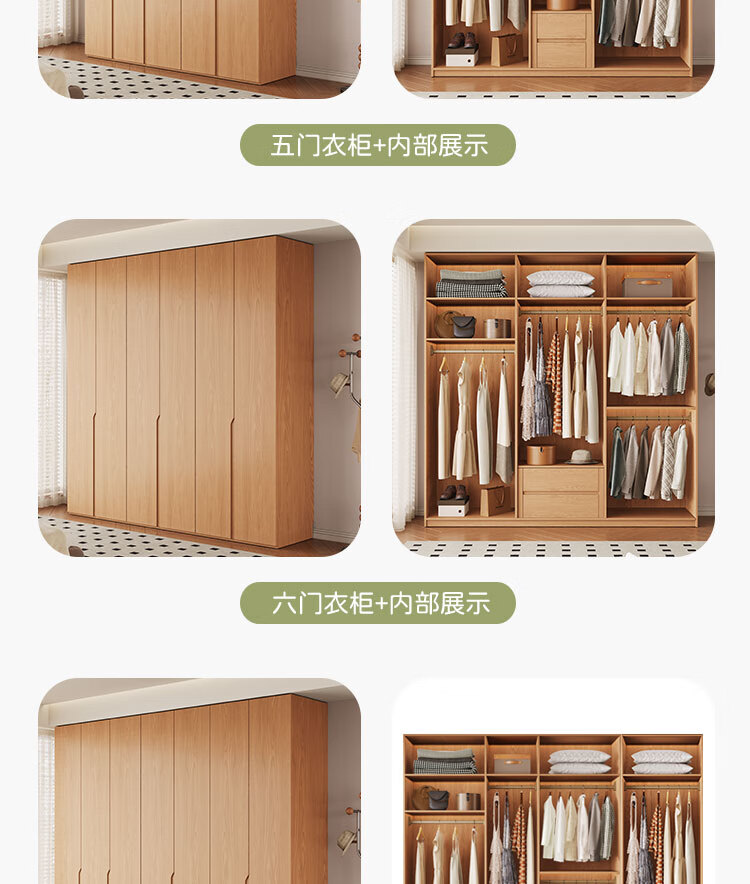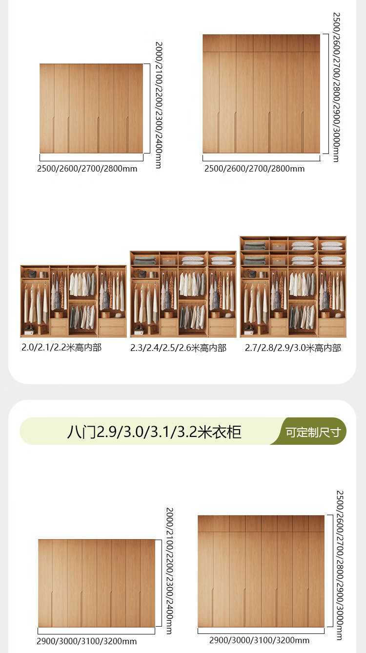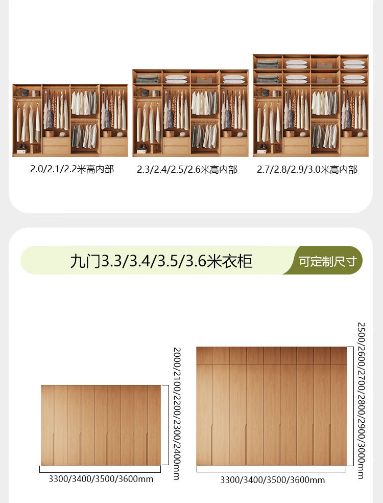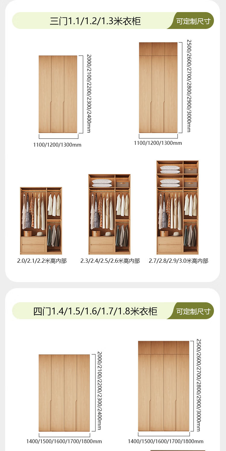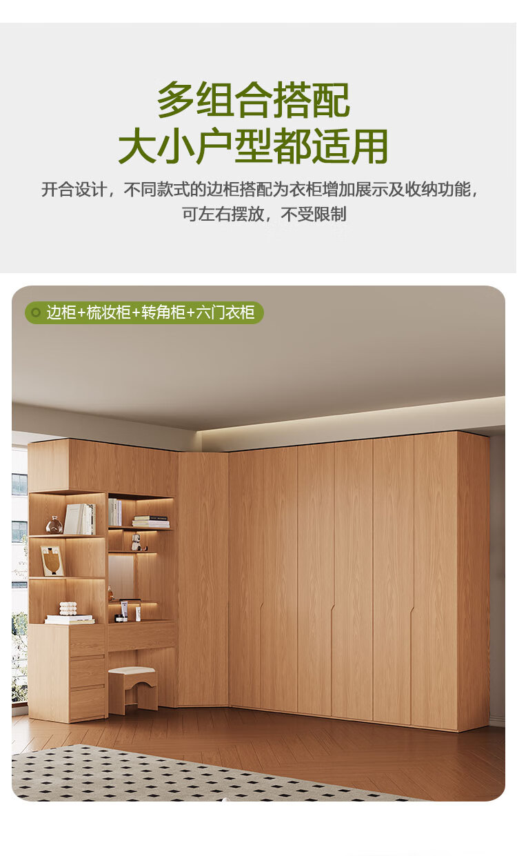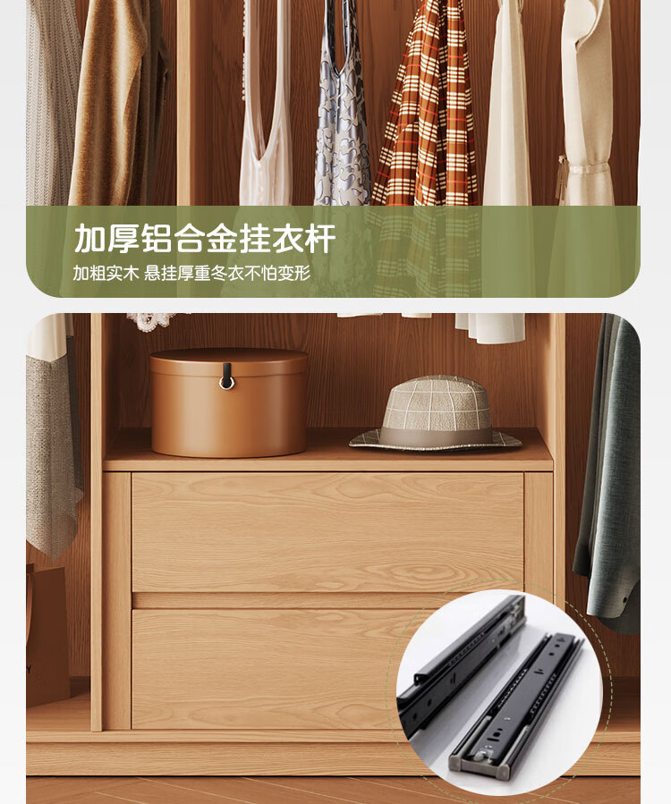 Jian Mu 0 aldehyde wardrobe customized 100% pure solid wood one door to top oak wardrobe bedroom home master bedroom handle free wardrobe 2.2 meters six door wardrobe 2.1 meters high one cabinet to top
