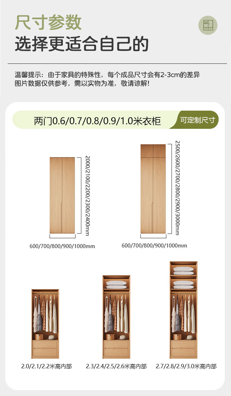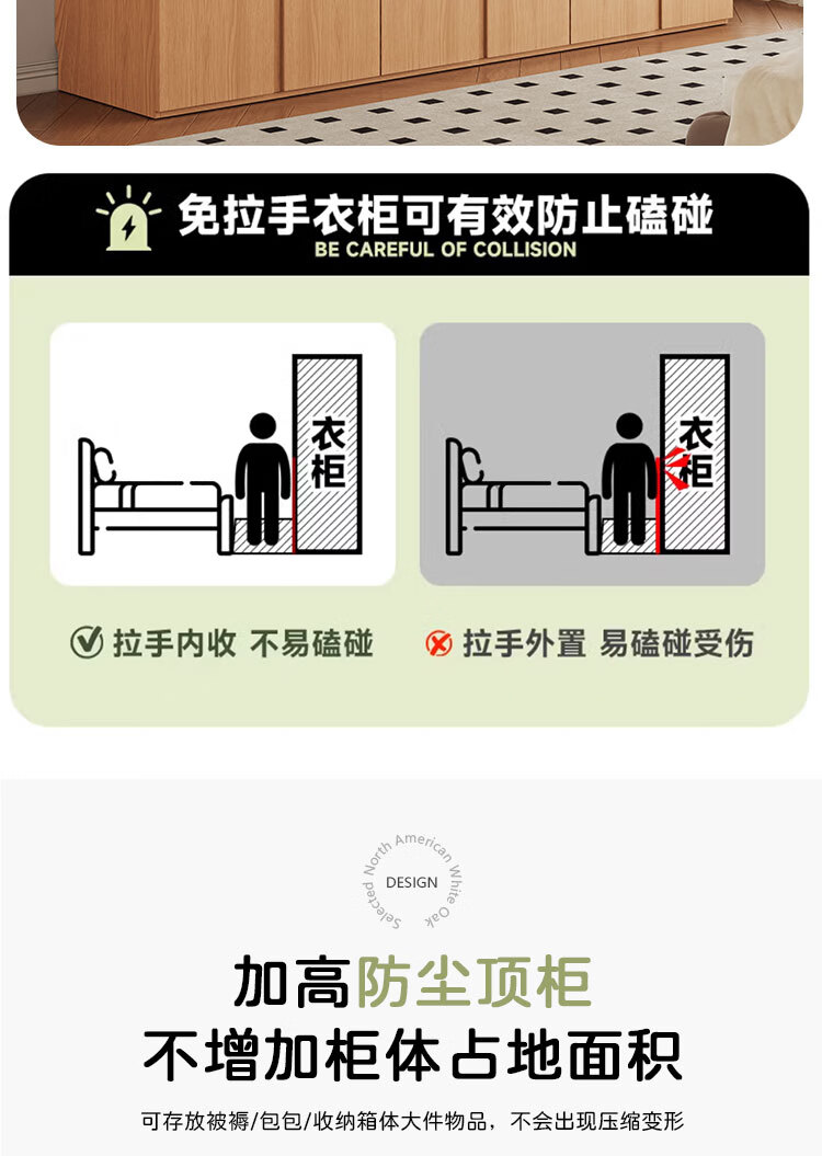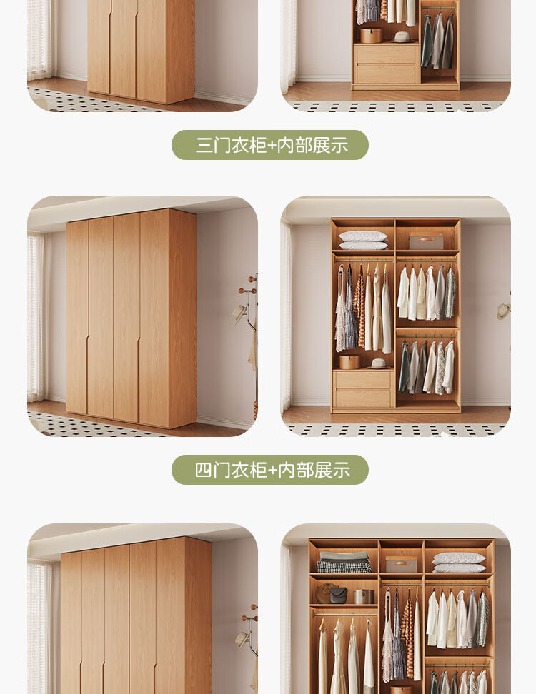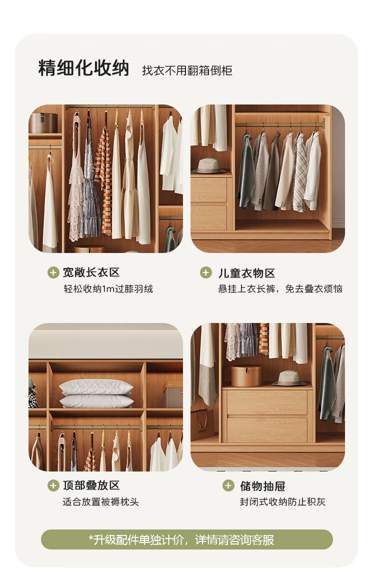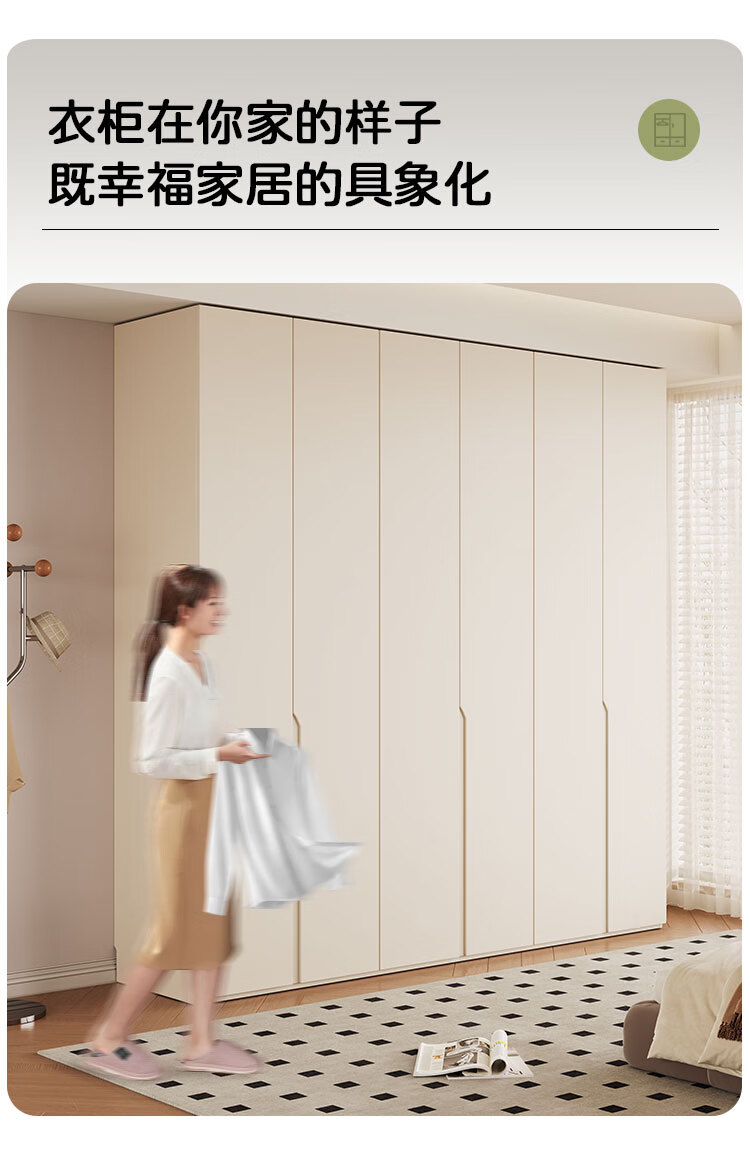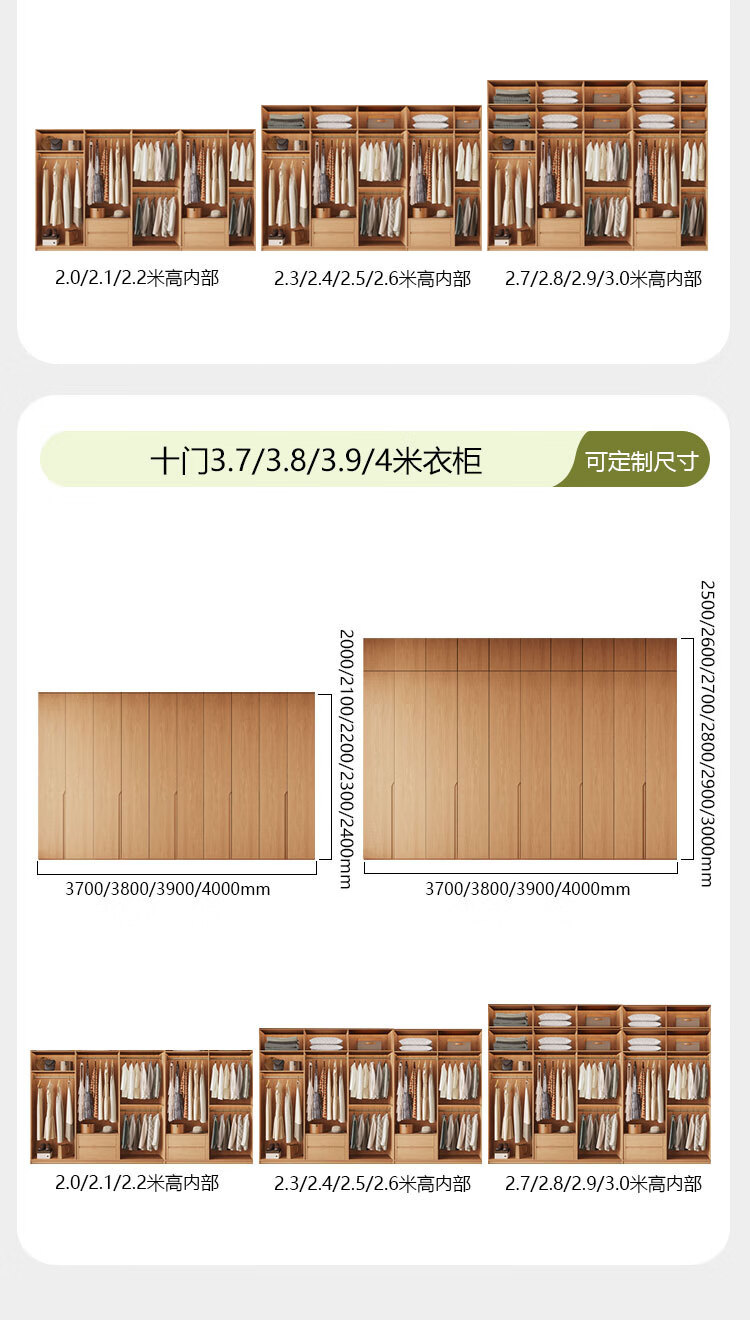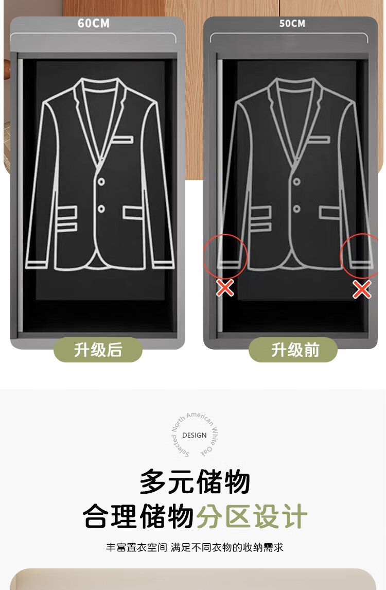Jian Mu 0 aldehyde wardrobe customized 100% pure solid wood one door to top oak wardrobe bedroom home master bedroom handle free wardrobe 2.2 meters six door wardrobe 2.1 meters high one cabinet to top
