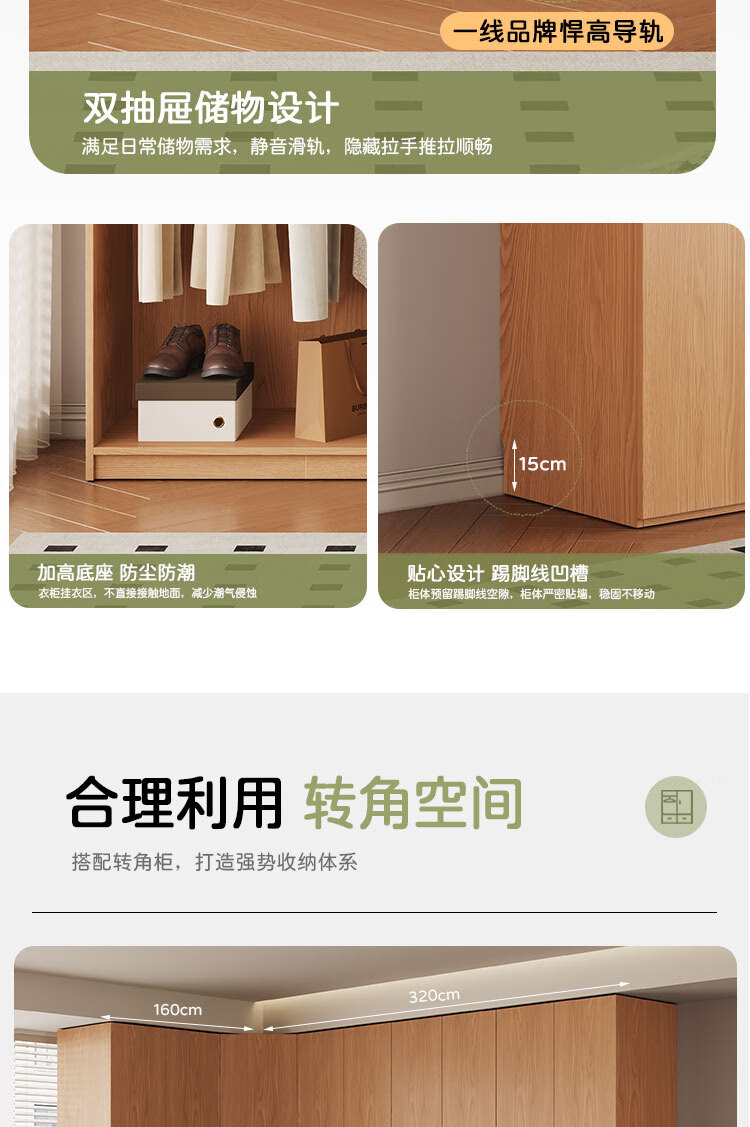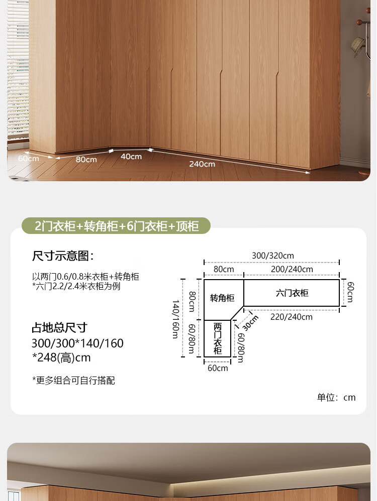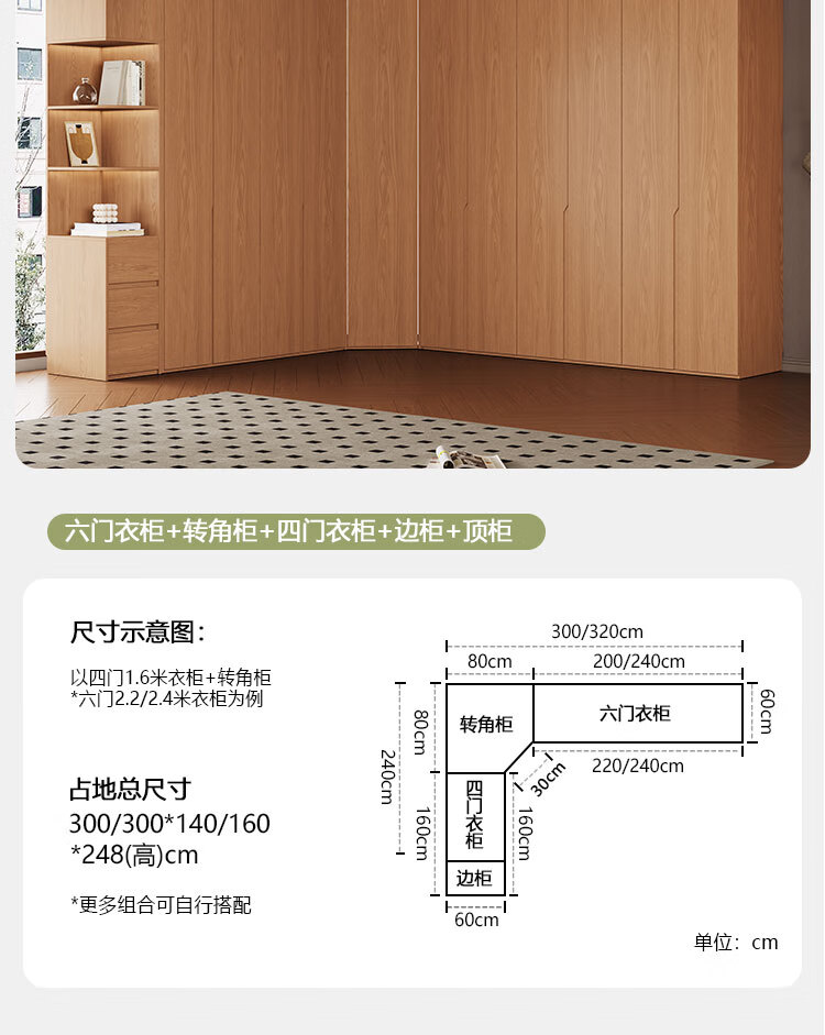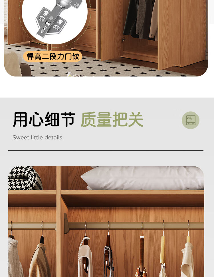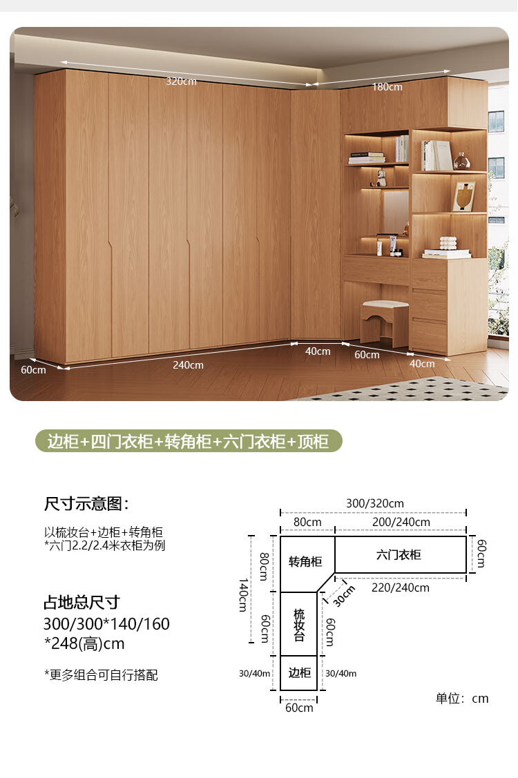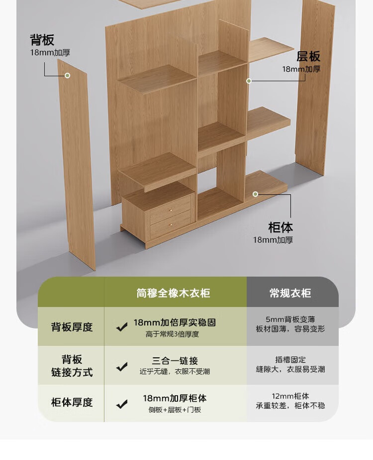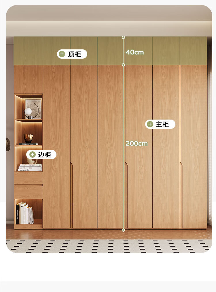 Jian Mu 0 aldehyde wardrobe customized 100% pure solid wood one door to top oak wardrobe bedroom home master bedroom handle free wardrobe 2.2 meters six door wardrobe 2.1 meters high one cabinet to top