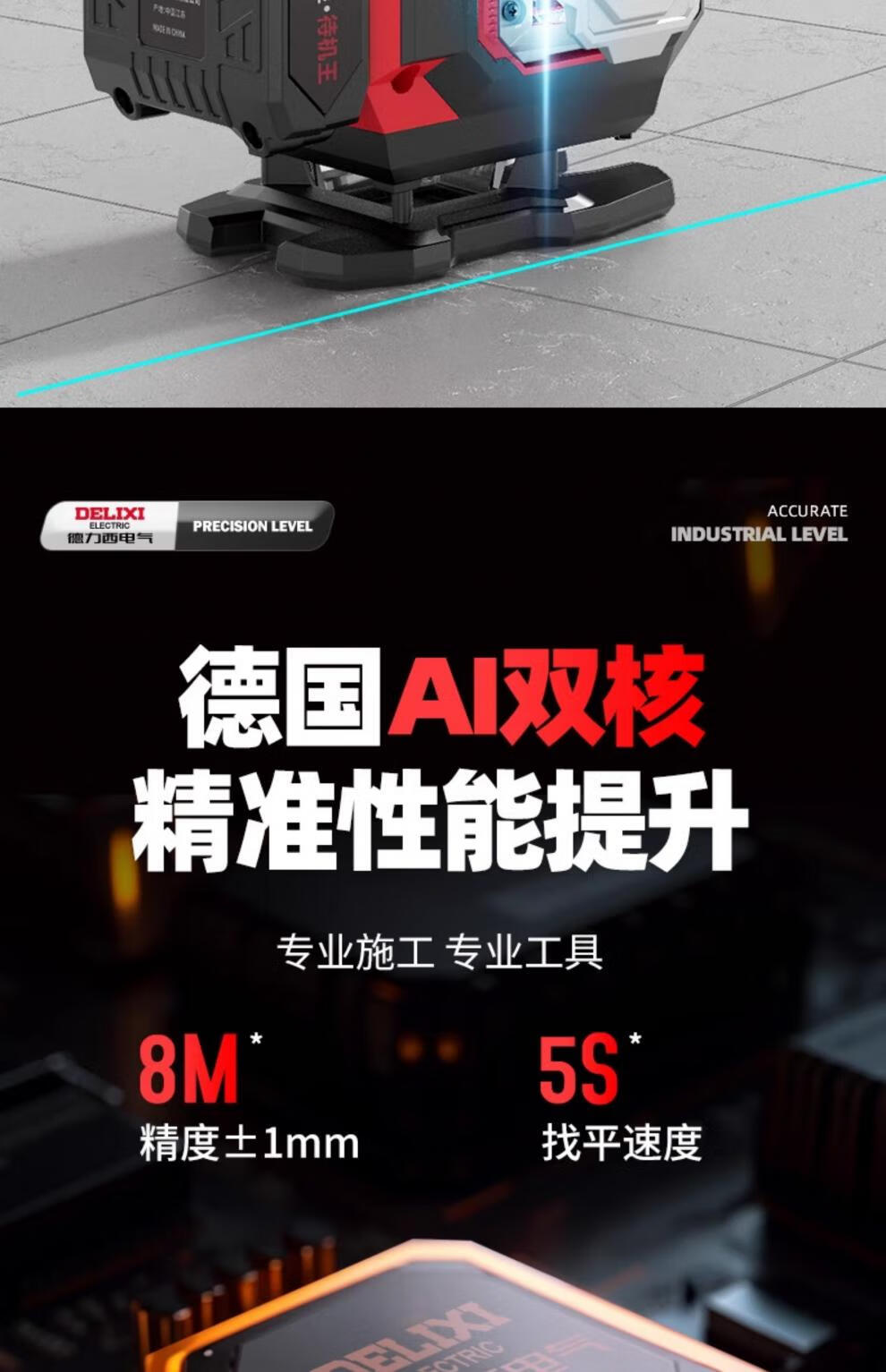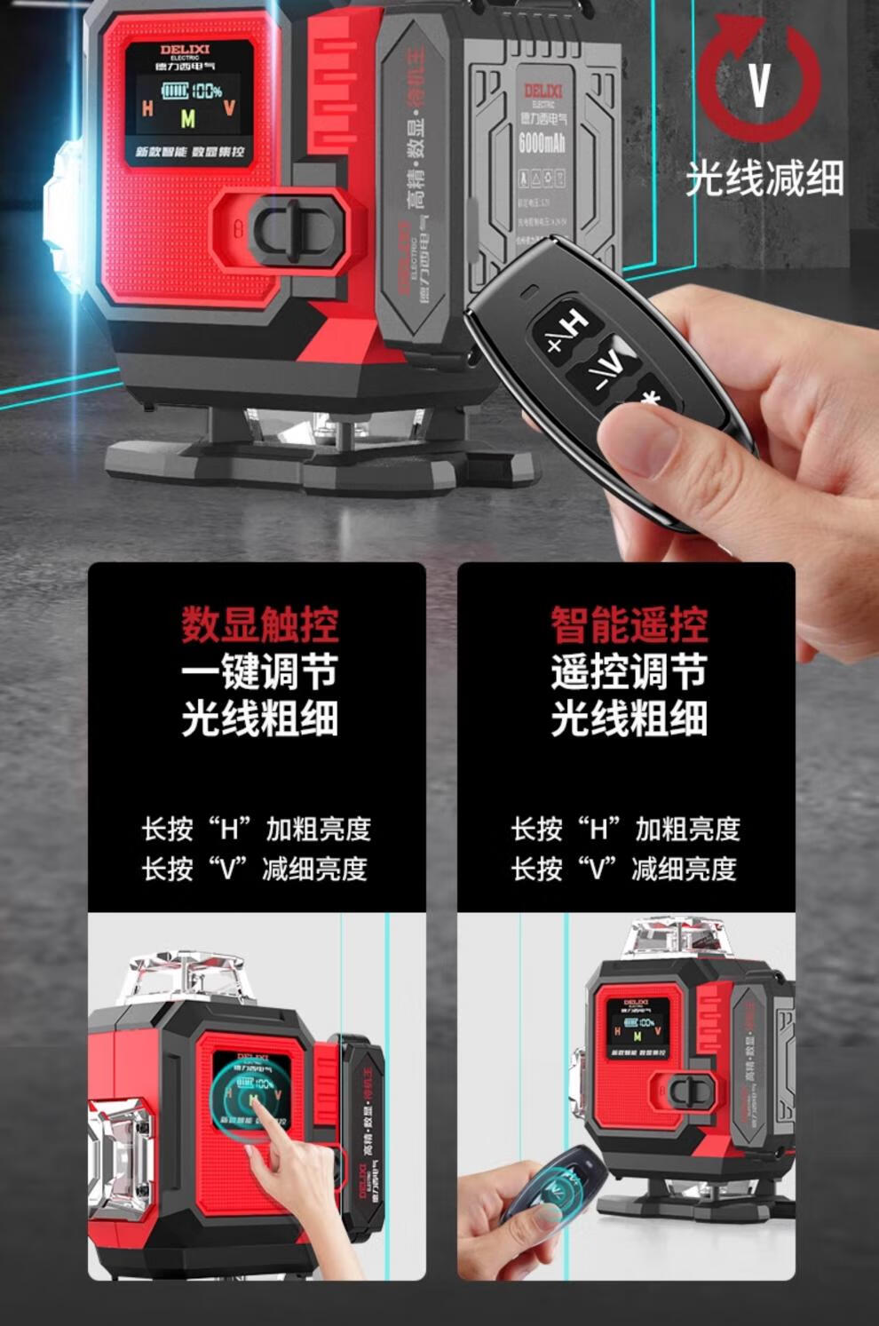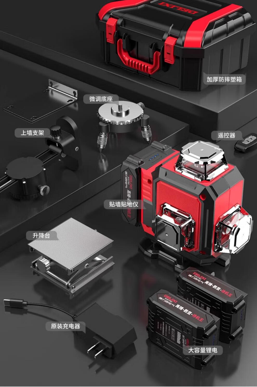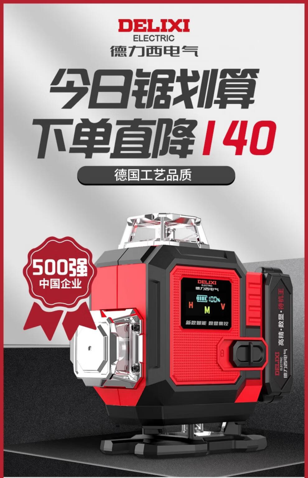 Delixi level meter high-precision strong light thin line outdoor green light 12-line laser automatic leveling meter with metal window smart digital display blue light 12B