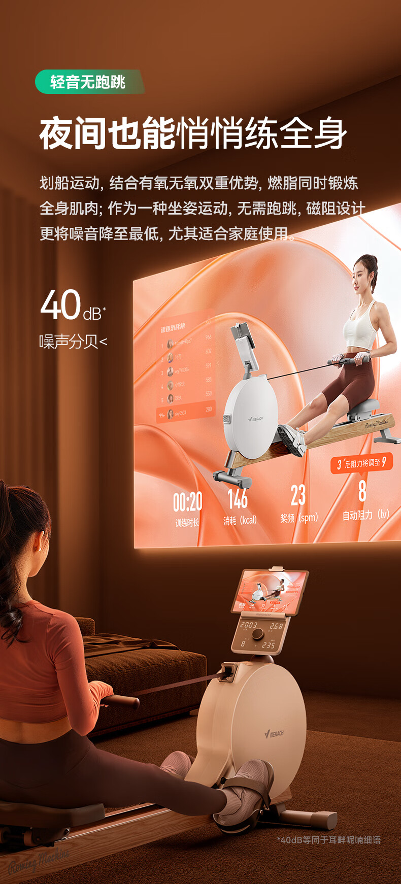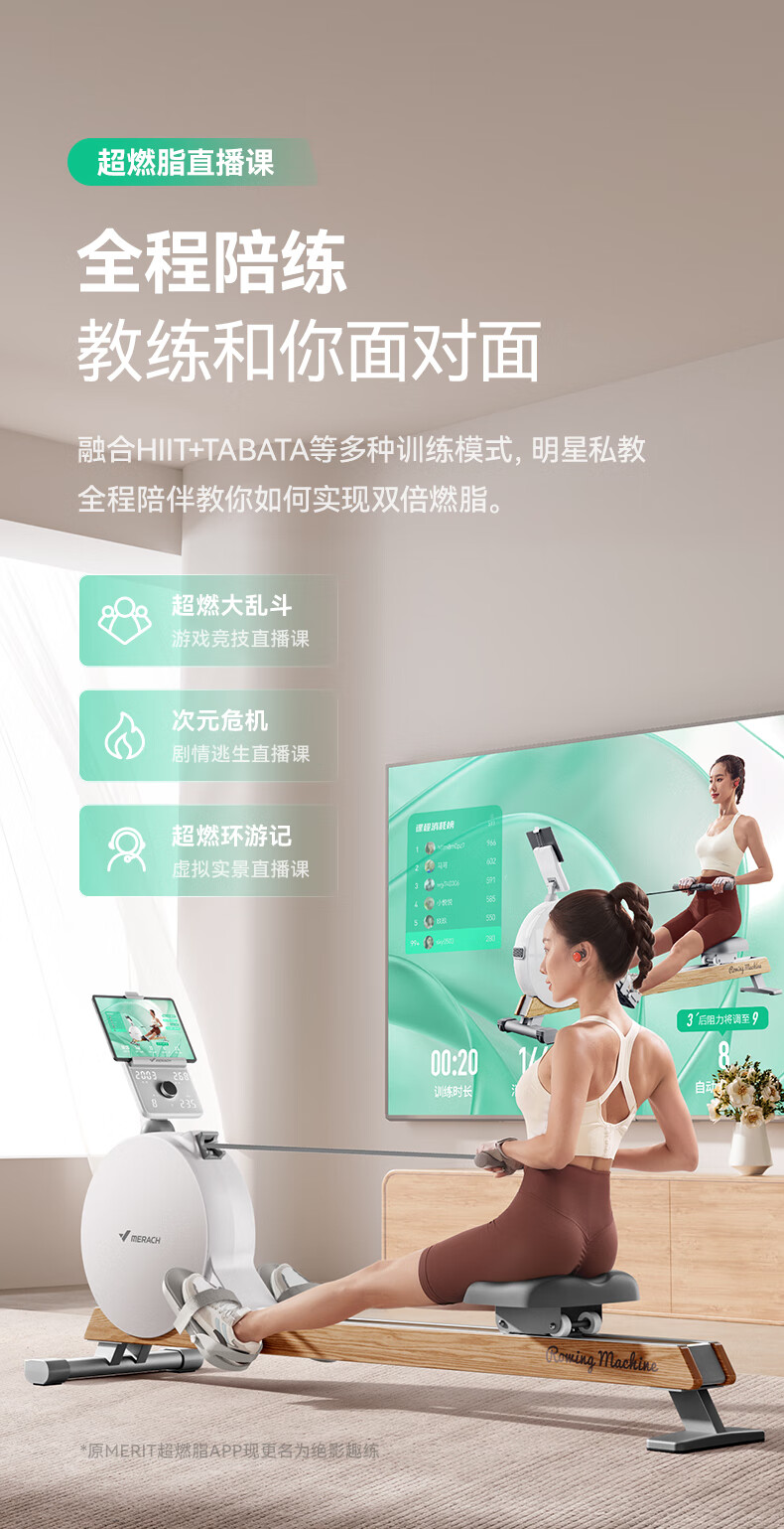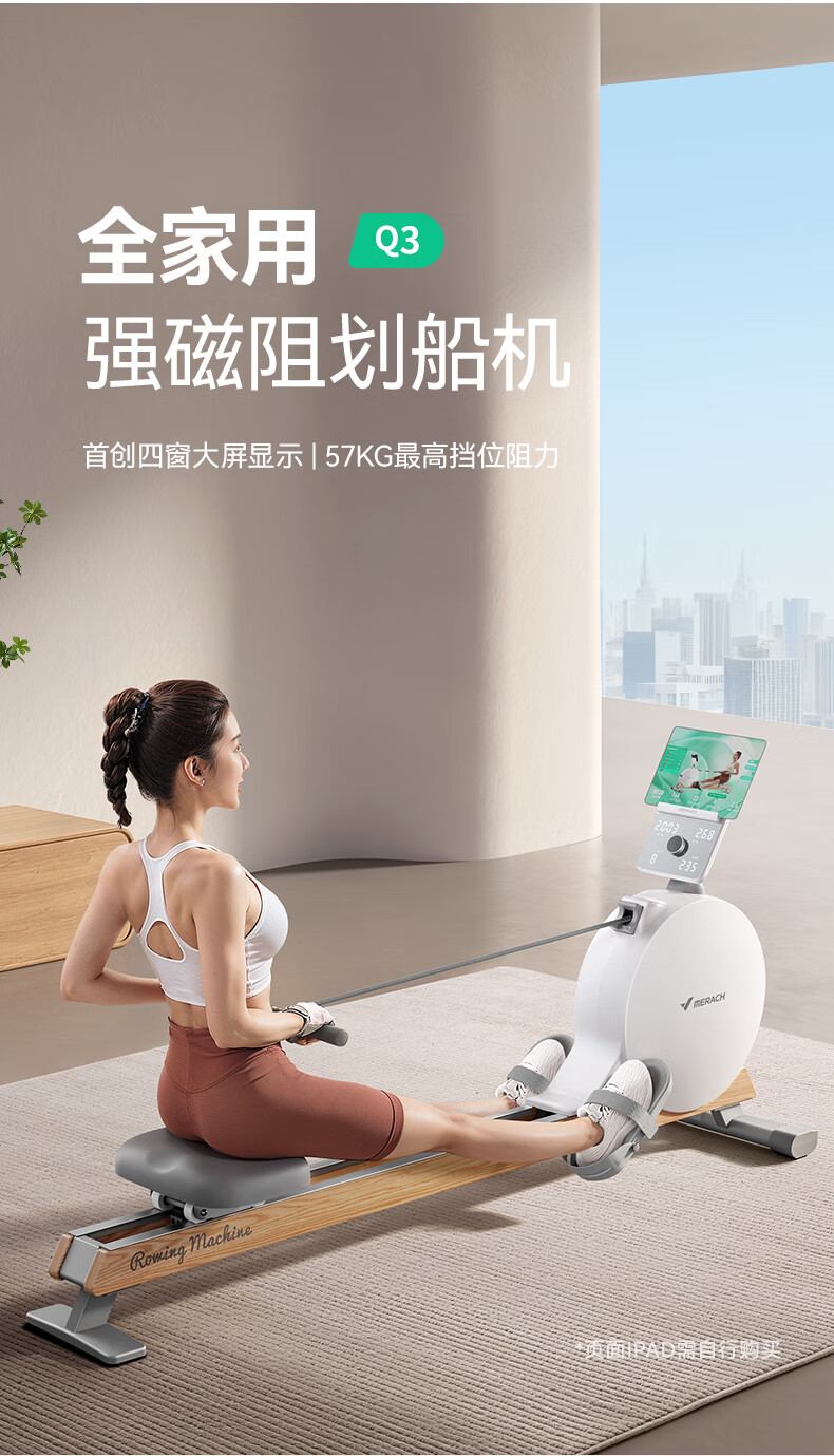 MERACH rowing machine household magnetic resistance silent super fat-burning fitness equipment comprehensive trainer small boat slide machine Q3 newly upgraded solid wood self-generated model Q3 solid wood