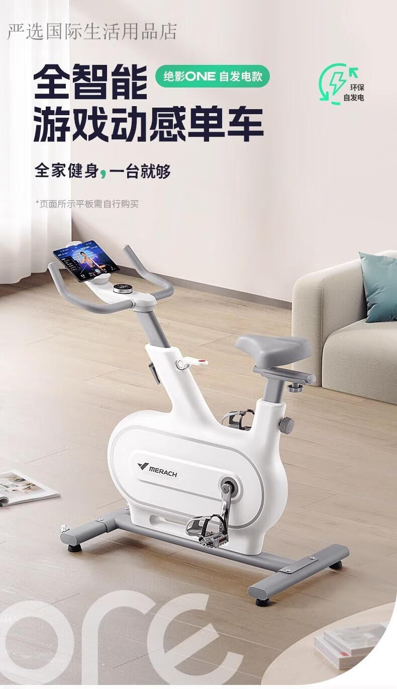 Merrick spinning bicycle self-generating home indoor ultra-quiet fitness equipment Jueying one self-generating version white丨New online competition