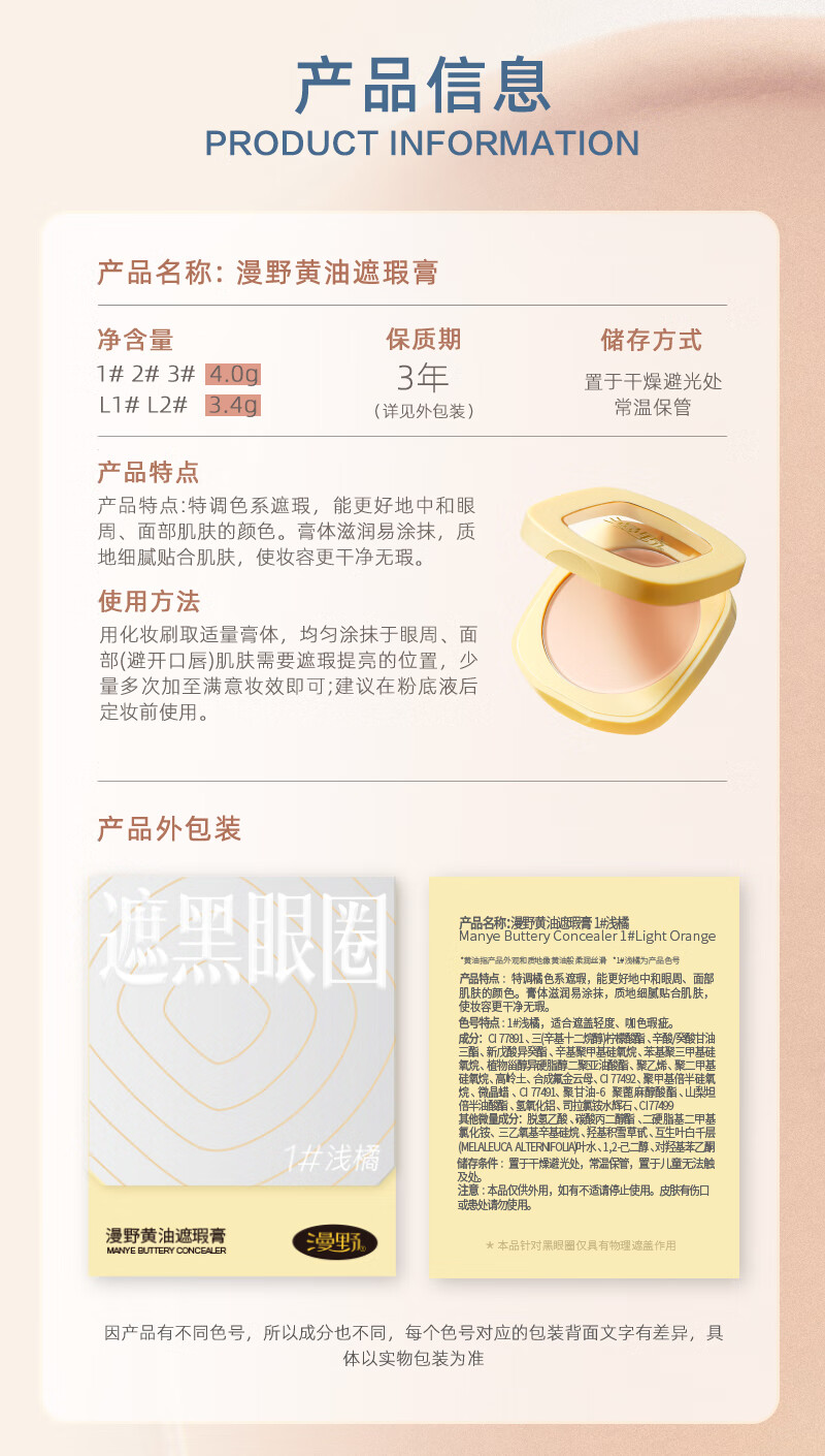 Manye large-capacity version launched Manye Butter Concealer for severe dark circles, salmon tangerine color, tear trough, capacity upgrade 3# tangerine-4g