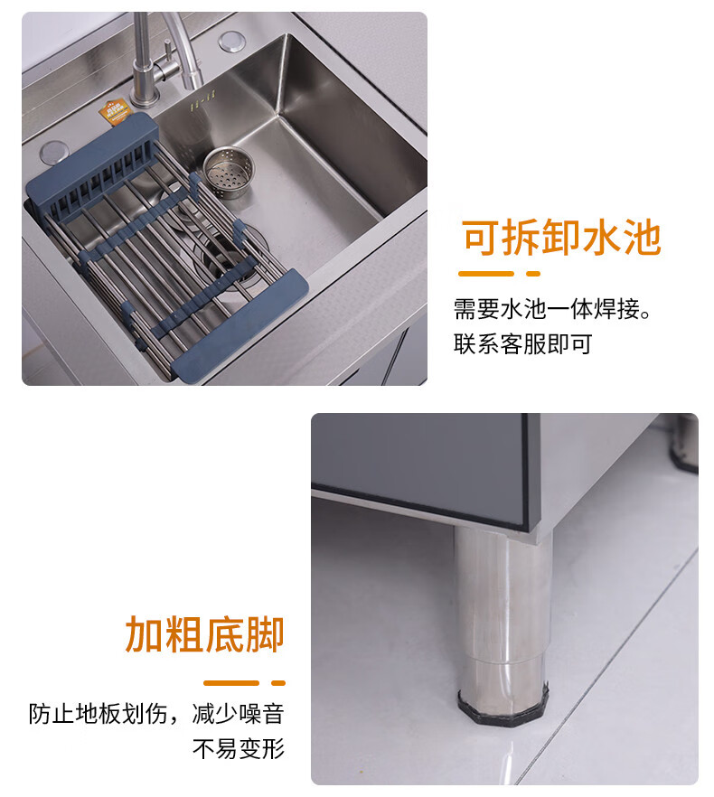 Wen Yijia kitchen stainless steel cabinet 304 countertop sink sink vegetable basin integrated storage stove cabinet operation table 120 single pool single stove