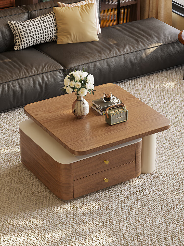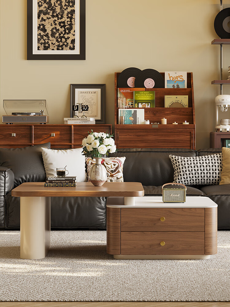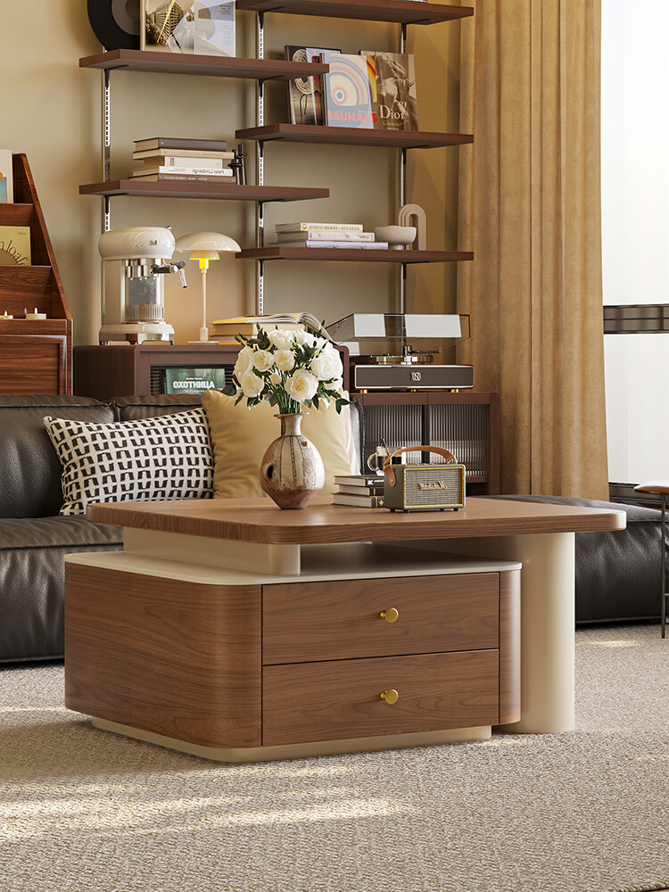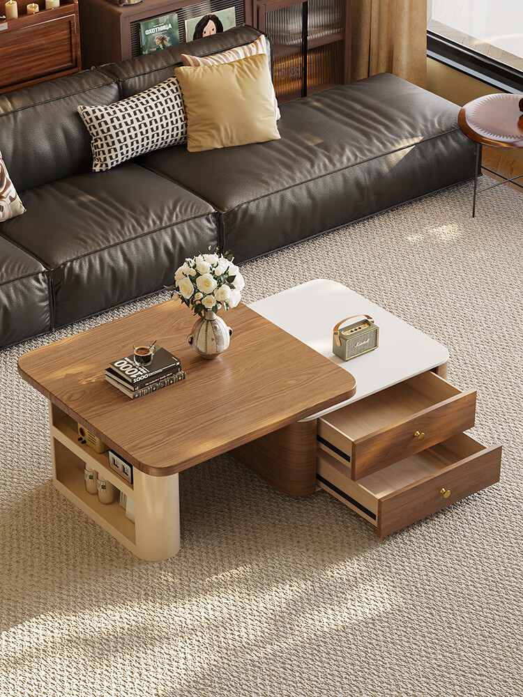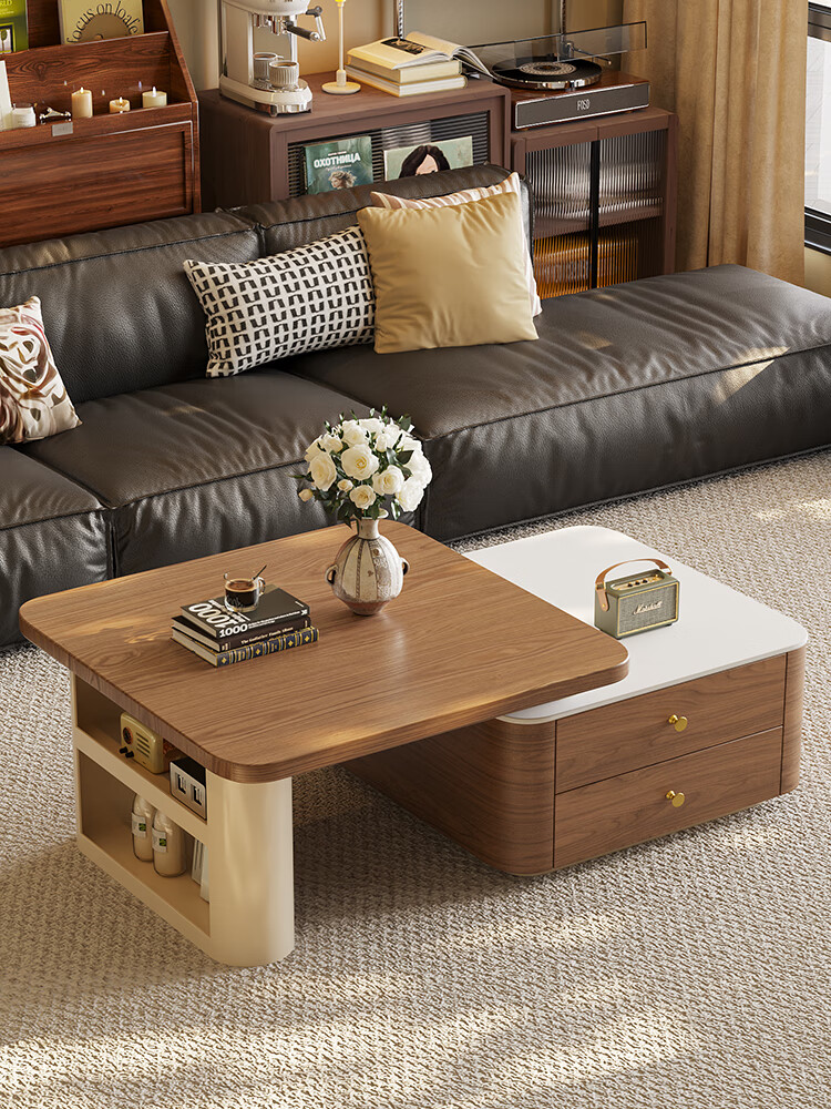Zuo Kezuo's ancient style coffee table combination living room household small apartment 2025 new simple high-end storage floor-standing telescopic tea table telescopic double-layer square cabinet solid wood coffee table combination