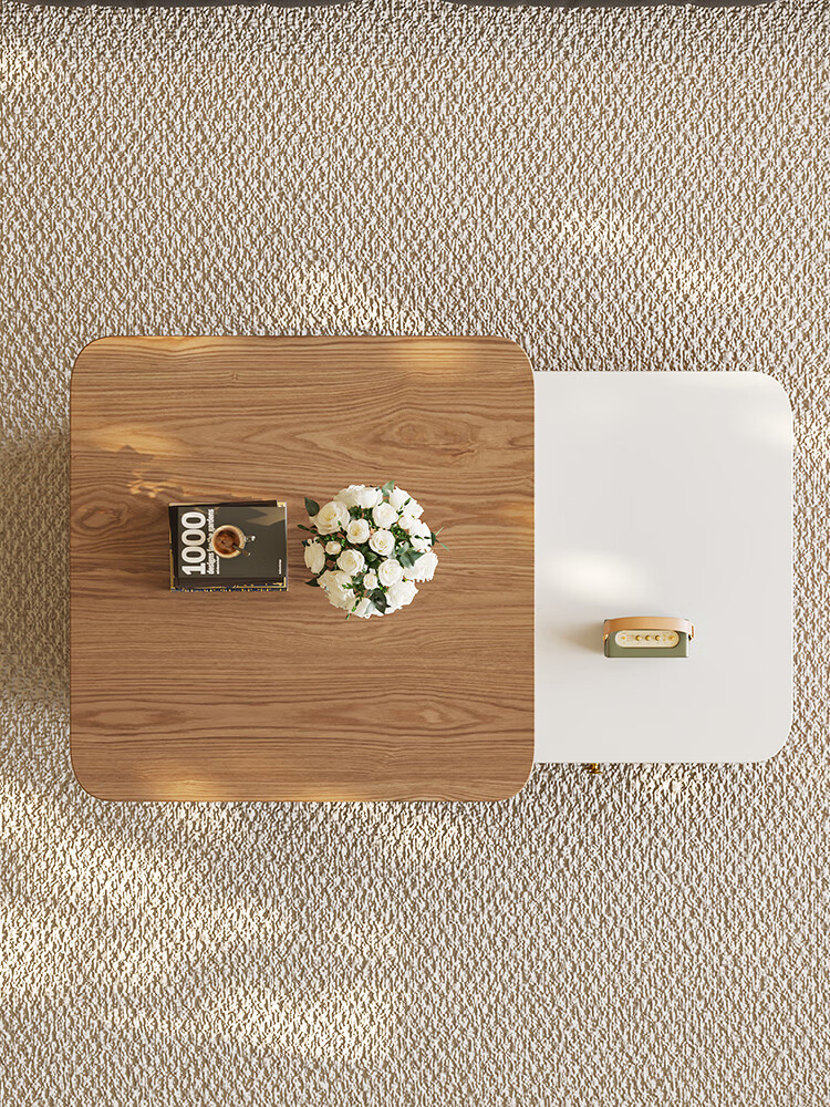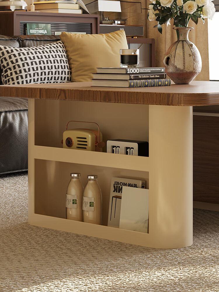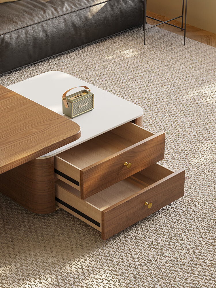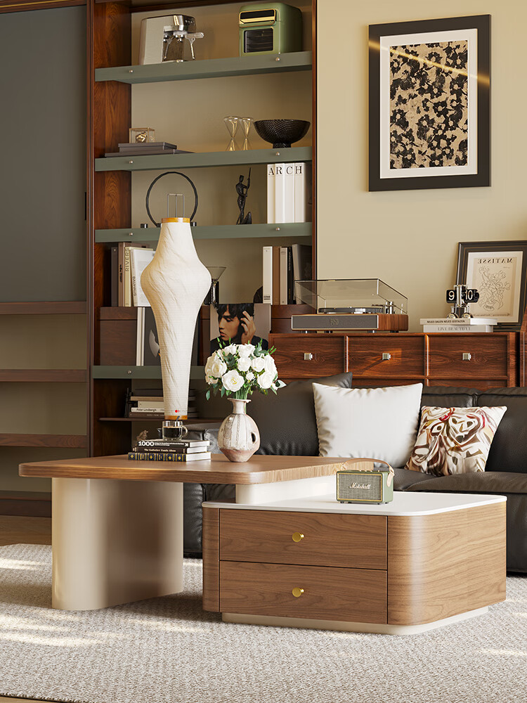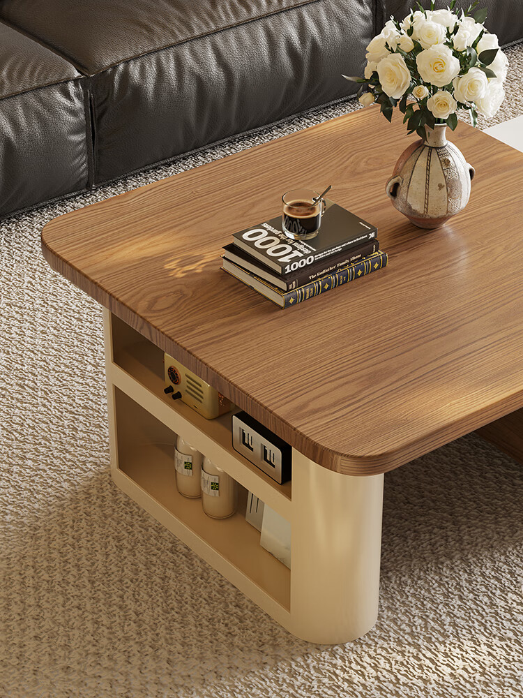Zuo Kezuo's ancient style coffee table combination living room household small apartment 2025 new simple high-end storage floor-standing telescopic tea table telescopic double-layer square cabinet solid wood coffee table combination