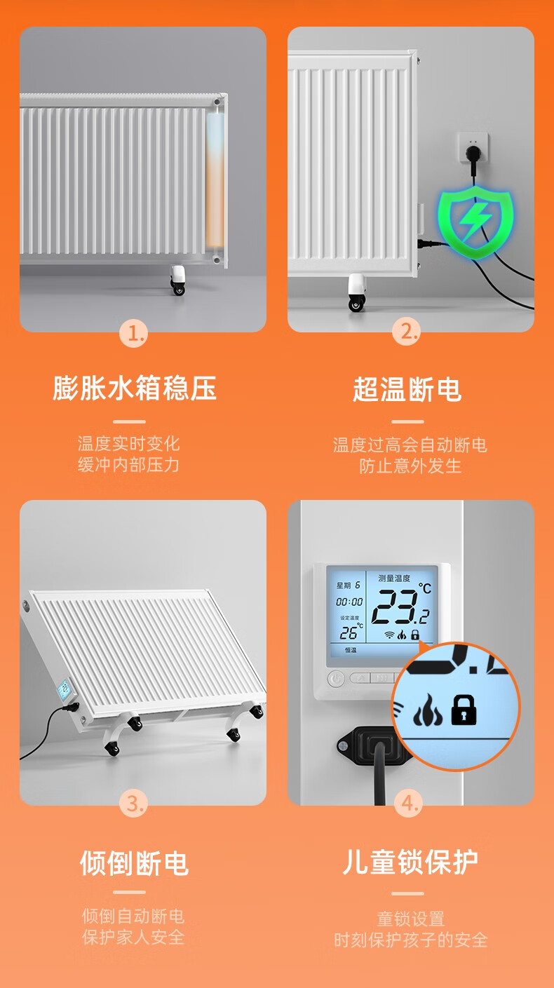 Gold Flagship Steel Plate Electric Radiator Home Water Injection Energy Saving Energy Saving Add Water Electric Heater Electric Water Heating Heater Water Injection Remote Control Model 2000W 600mm*0 Column 0.6m