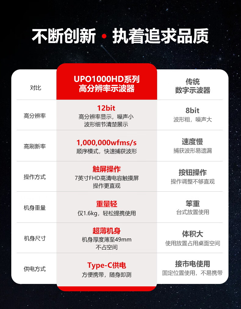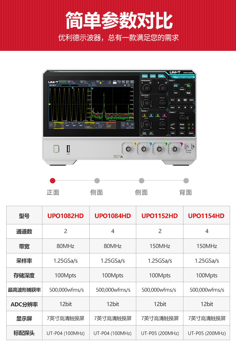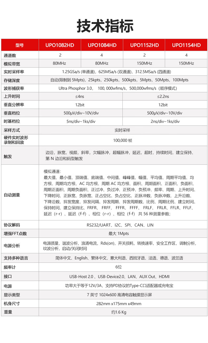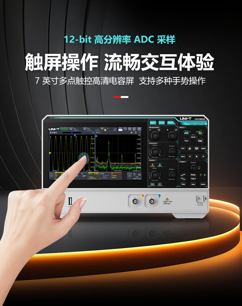 UNI-T UPO1082HD high-precision digital oscilloscope 12-bit high-resolution dual-channel touch screen oscilloscope portable UPO1082HD (dual-channel 80M bandwidth)