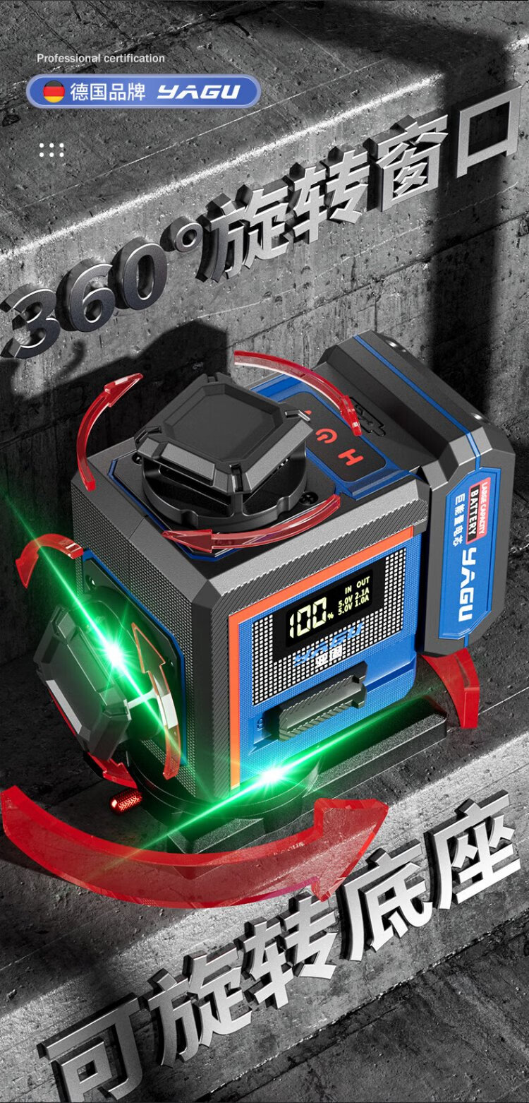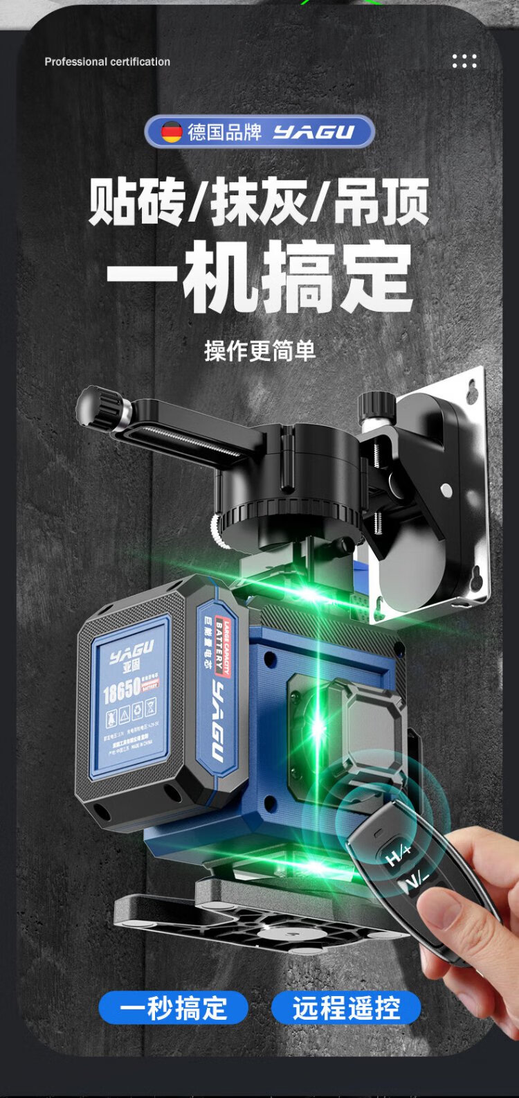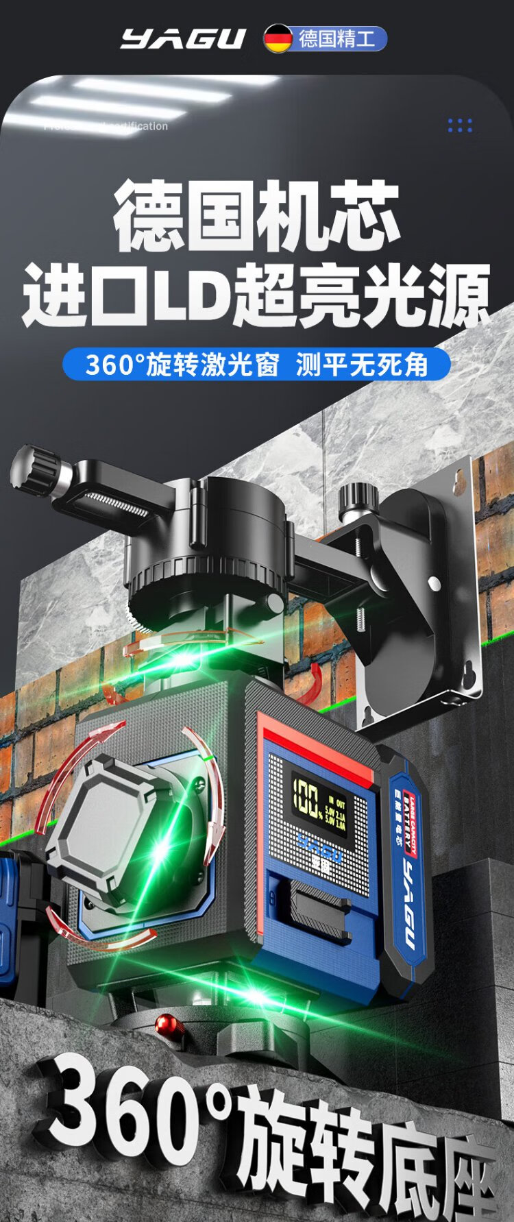 Yagu level meter 8 lines 12 lines 16 lines green light laser high precision strong light thin line indoor and outdoor leveling meter green light 8 lines super bright special package