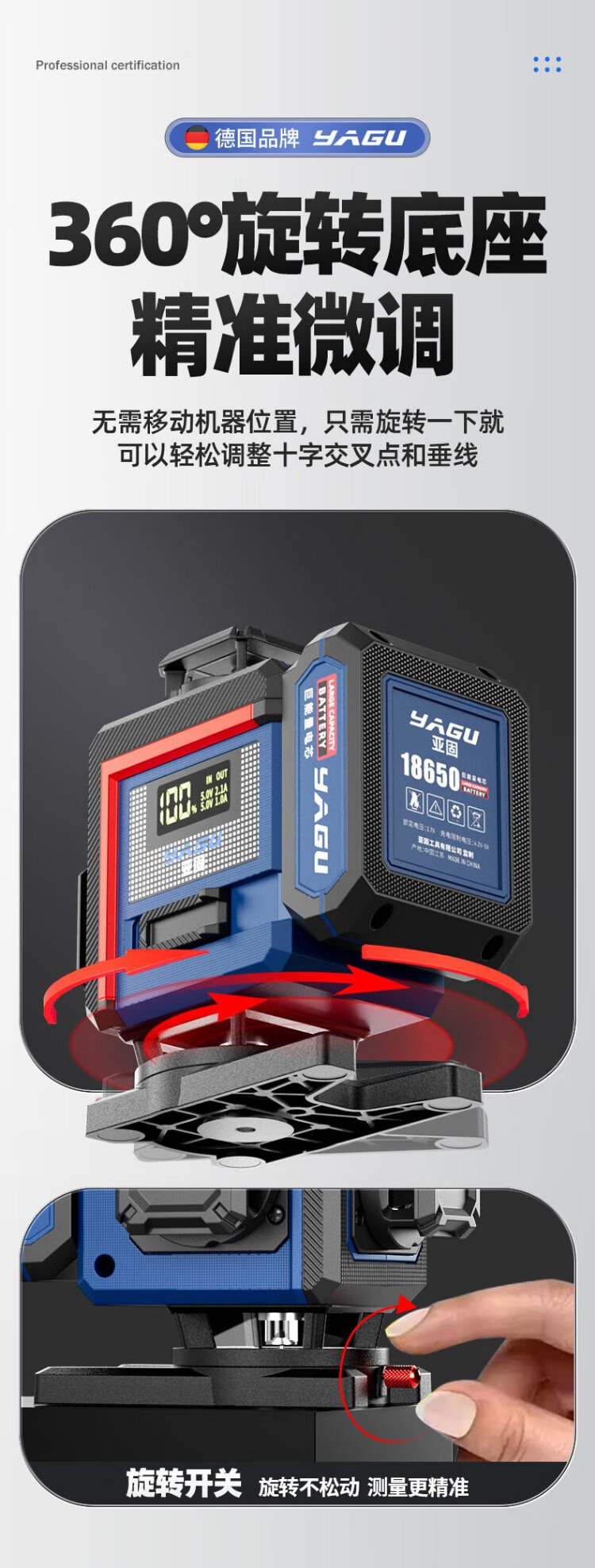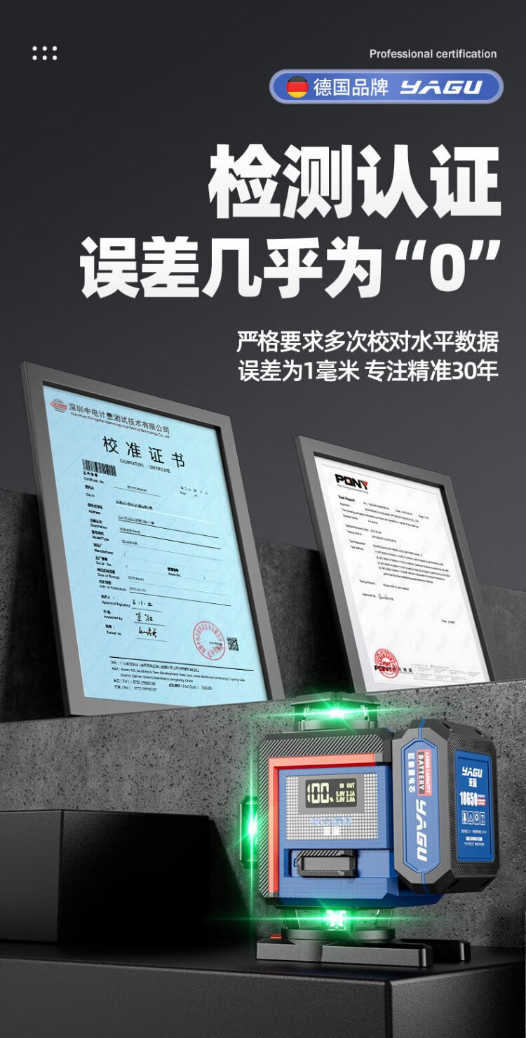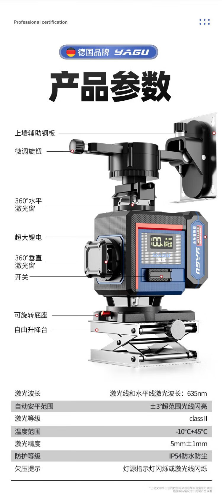 Yagu level meter 8 lines 12 lines 16 lines green light laser high precision strong light thin line indoor and outdoor leveling meter green light 8 lines super bright special package