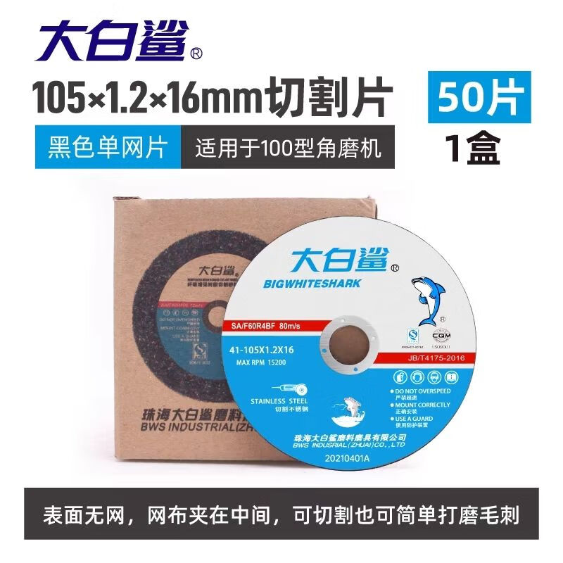 Wen Yijia double mesh Great White Shark 105 ultra-thin hand grinding wheel stainless steel cutting blade 4-inch slice 100 type angle grinder genuine Great White Shark 105*1.2*16 double mesh green丨4