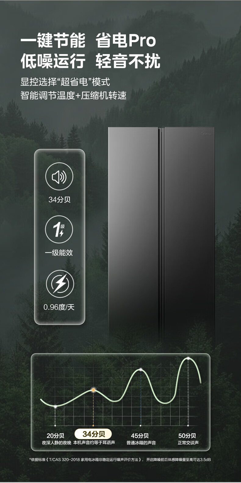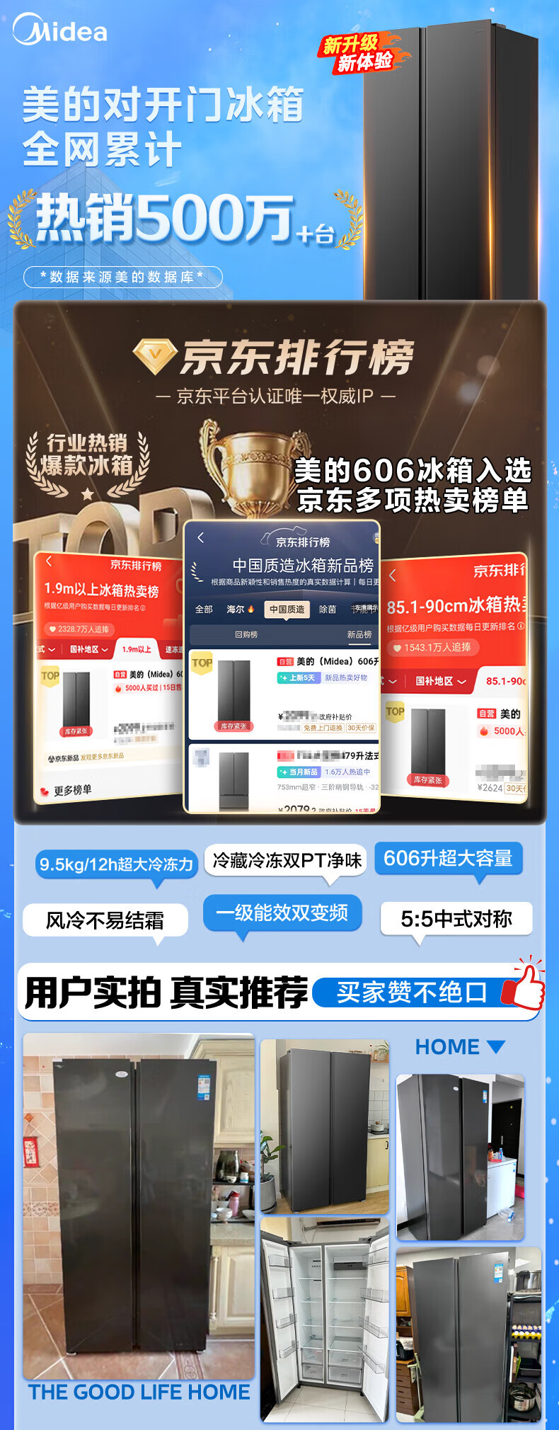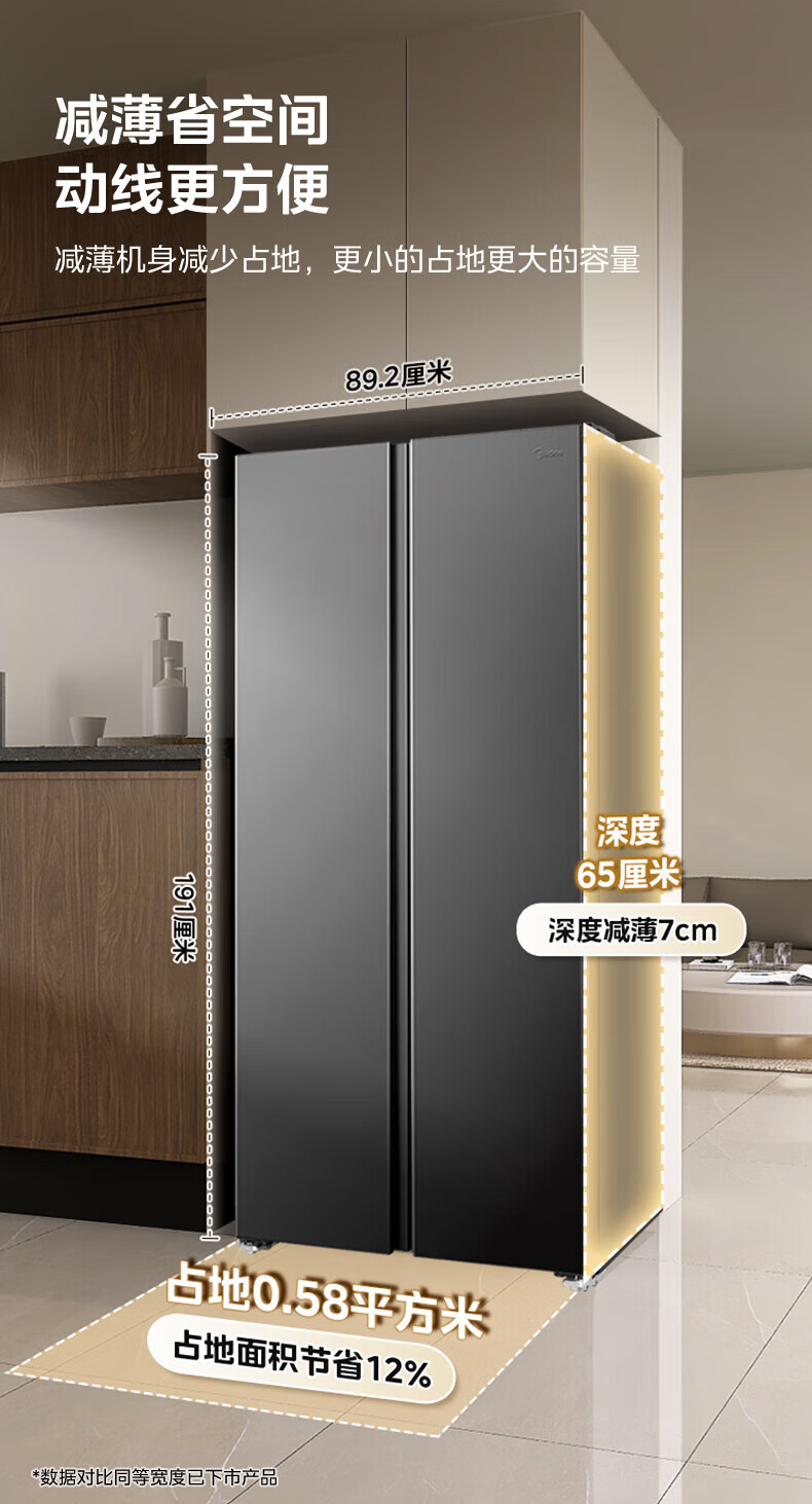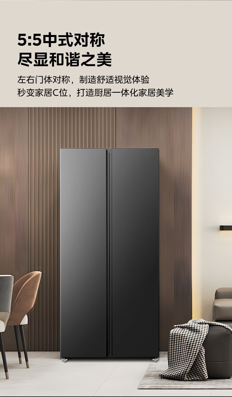 Midea Refrigerator 606 double-door side-by-side large freezer large capacity first-class energy efficiency energy-saving dual-frequency air-cooled frost-free household refrigerator 606 side-by-side door first-class dual-frequency refrigerator