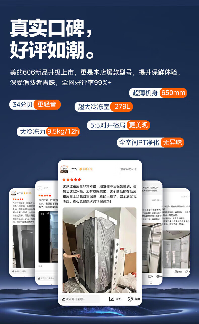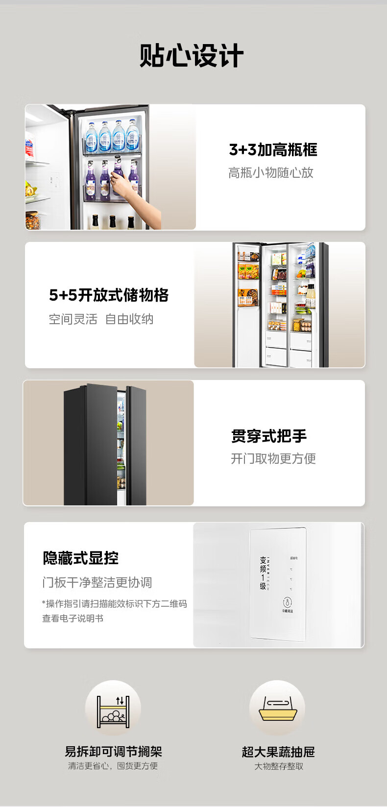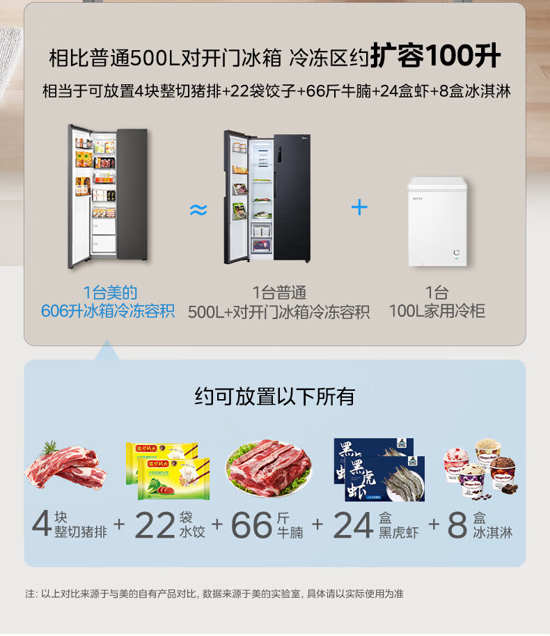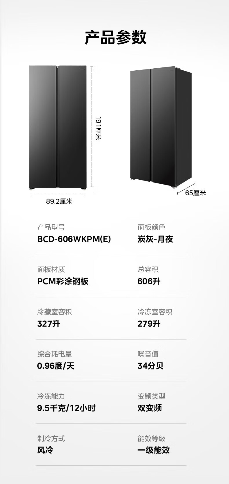 Midea Refrigerator 606 double-door side-by-side large freezer large capacity first-class energy efficiency energy-saving dual-frequency air-cooled frost-free household refrigerator 606 side-by-side door first-class dual-frequency refrigerator