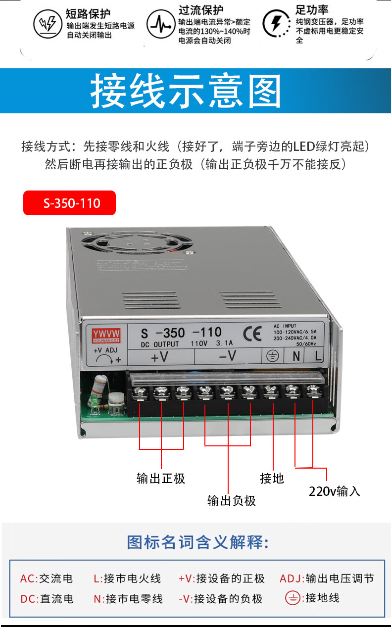 MEAN WELL 110V switching power supply AC AC220V to DC110V10A220v high power adjustable DC power supply S S-1200-220
