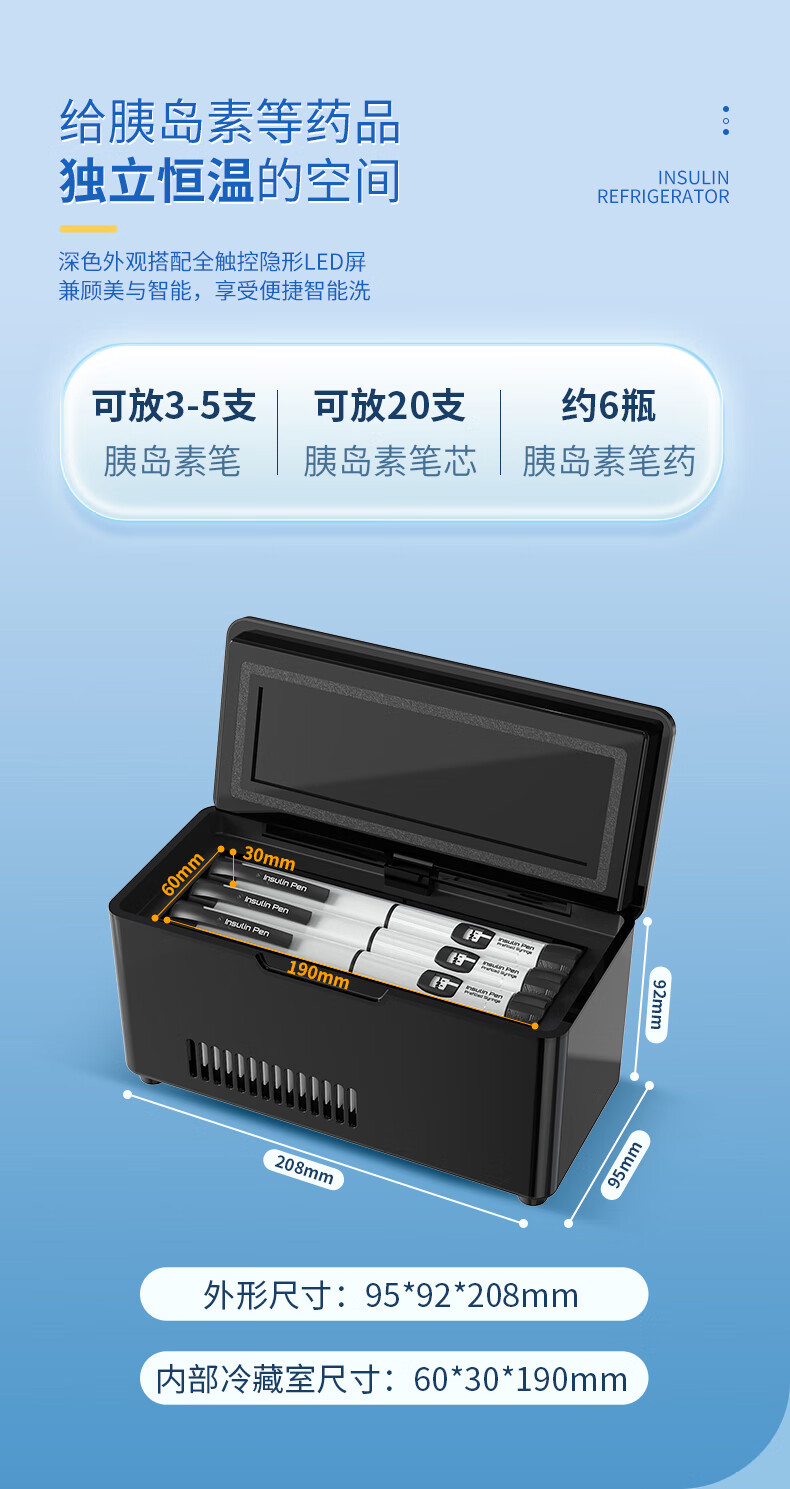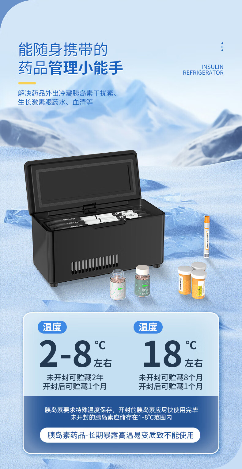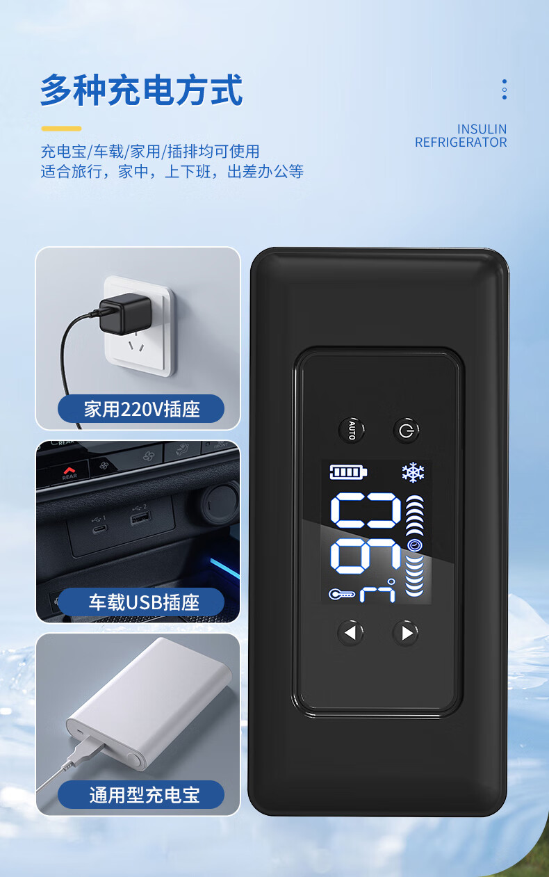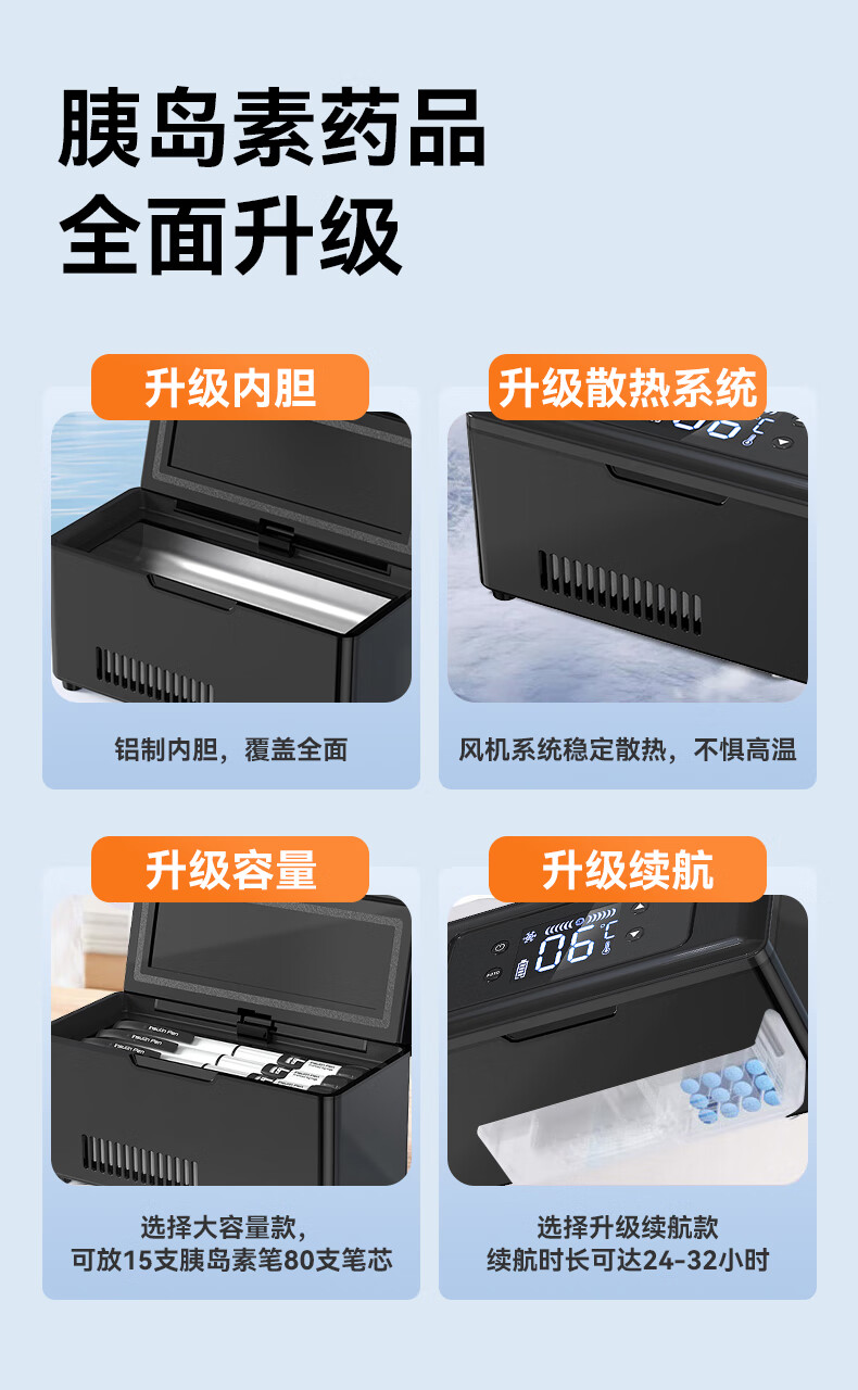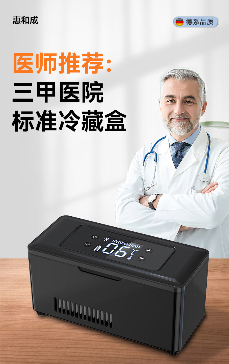 Huihecheng Insulin Refrigerator Box Portable Small Refrigerator Car-mounted Home Medical Drugs Out-of-Home Refrigerator Carry-On Charging Top Dual Battery Life Increased Capacity Storage Bag 4L Growth Hormone Interferon Special Refrigerator Cup Refrigeration Box