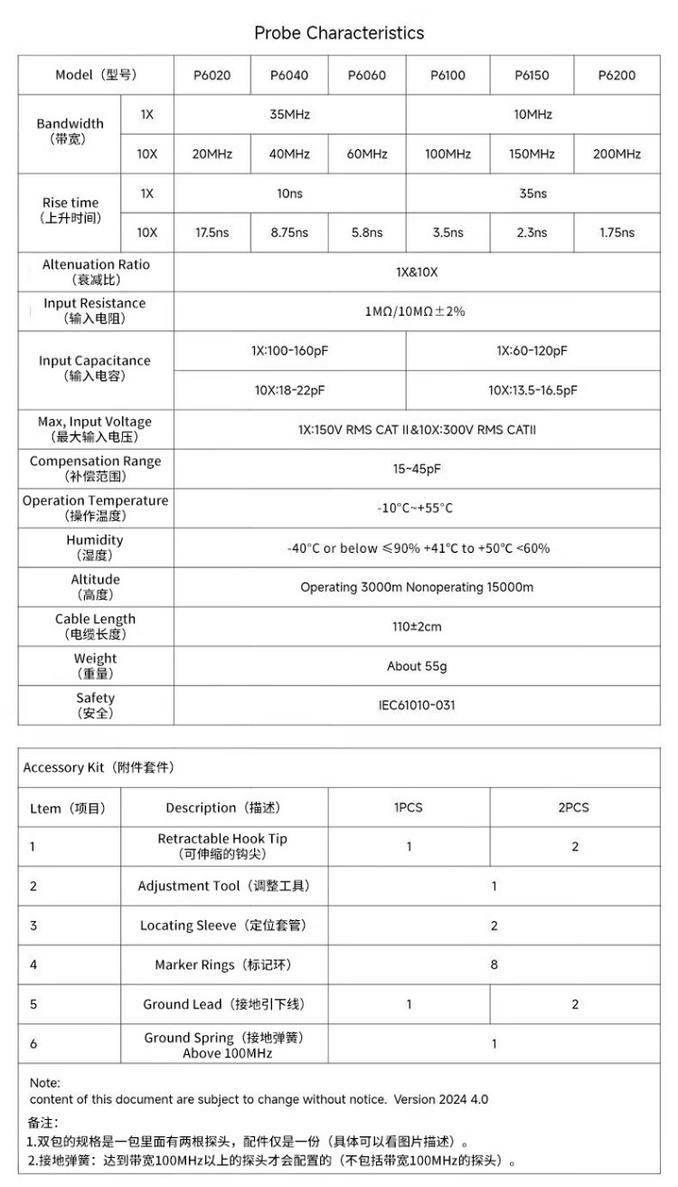 HantekHantek oscilloscope probe P6100/6020/6200 probe 100M bandwidth 10X attenuation 300V P6060 (60MHz) double package