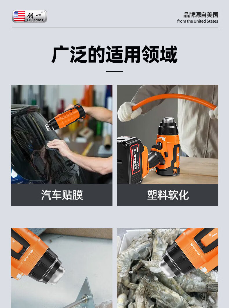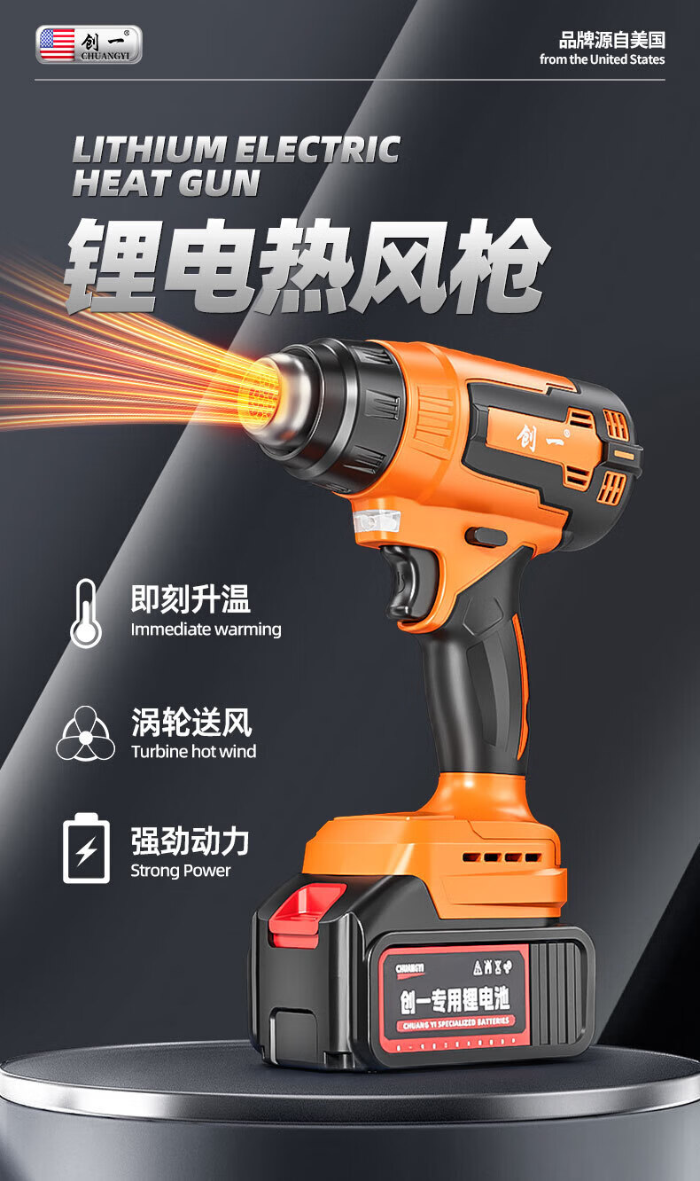 Lithium electric hot air gun hot air machine small film baking gun industrial heat shrinkable film portable drying gun 20 cells, two batteries and one charge