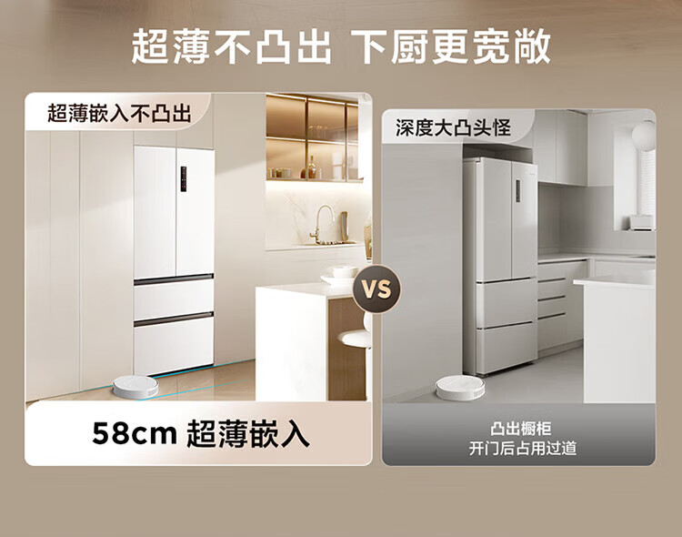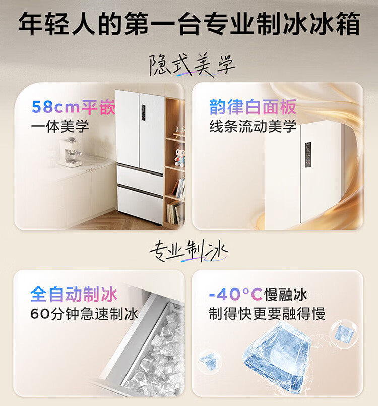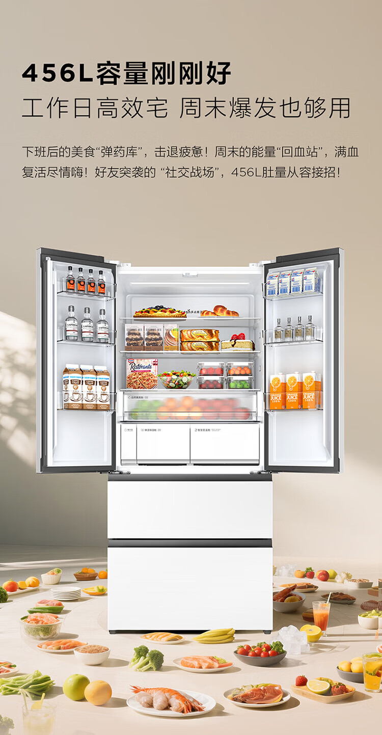 TCL cold pudding 456 liters French multi-door four-door 58cm ultra-thin zero-embedded fully automatic ice making-40 degrees slow melting ice household refrigerator trade-in R456T9-DQB national subsidy