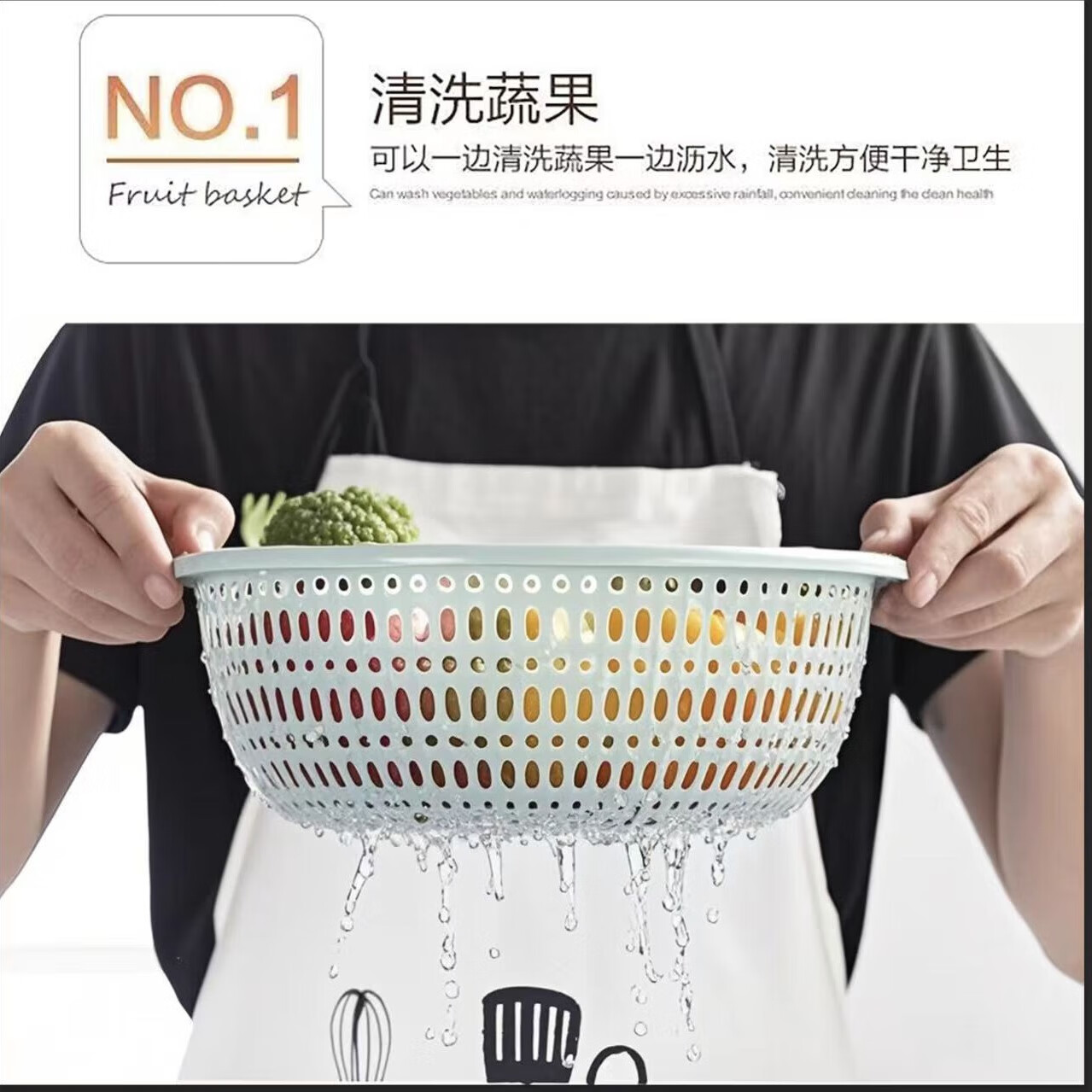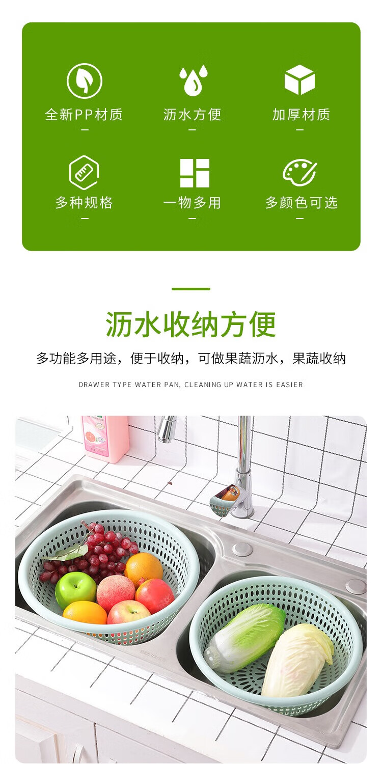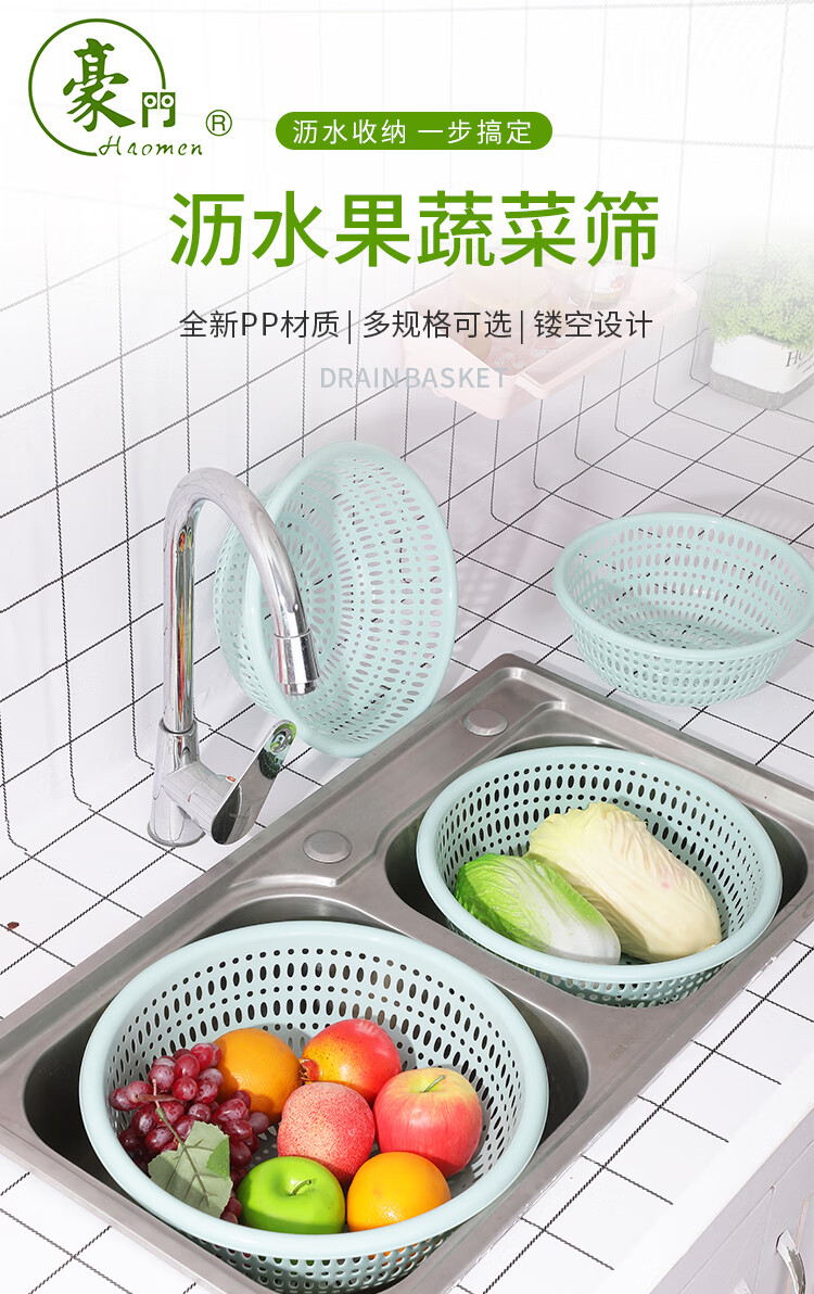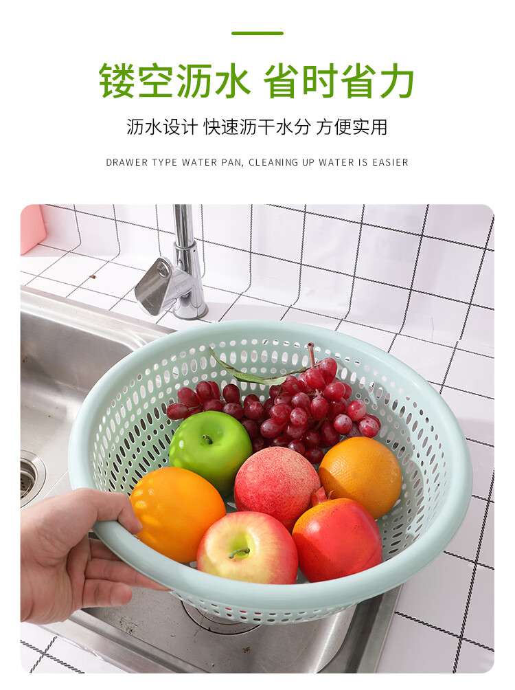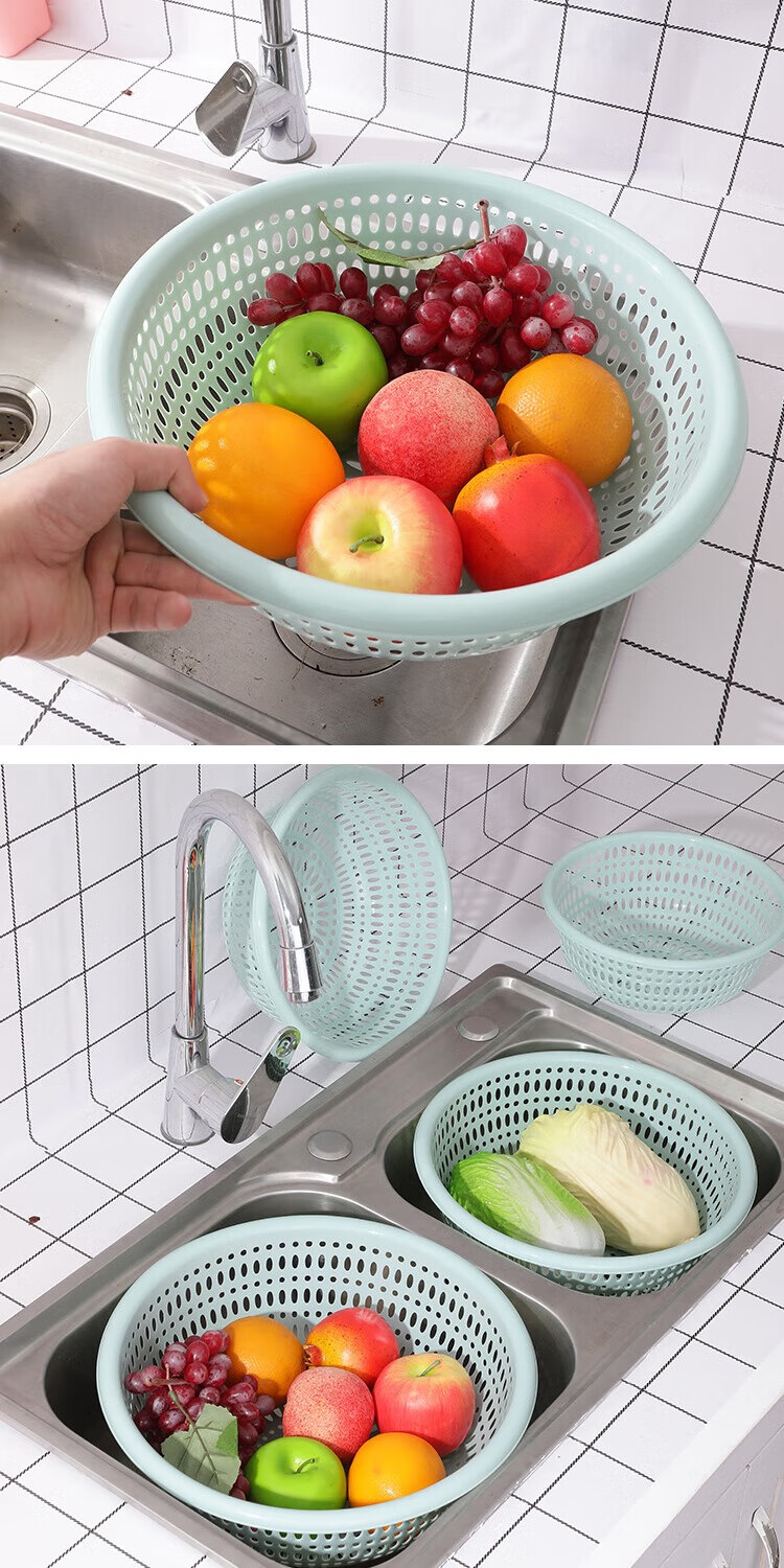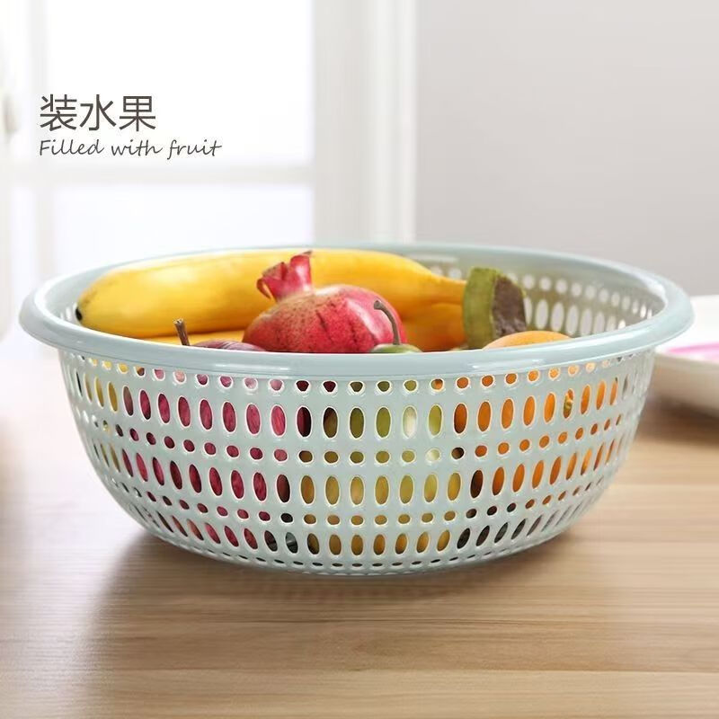 Fruit and vegetable plastic drain basket hollow kitchen durable new household vegetable basket vegetable basket fruit basket drain screen light blue small + medium + large + extra large four