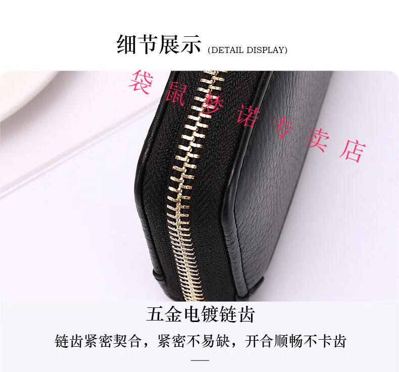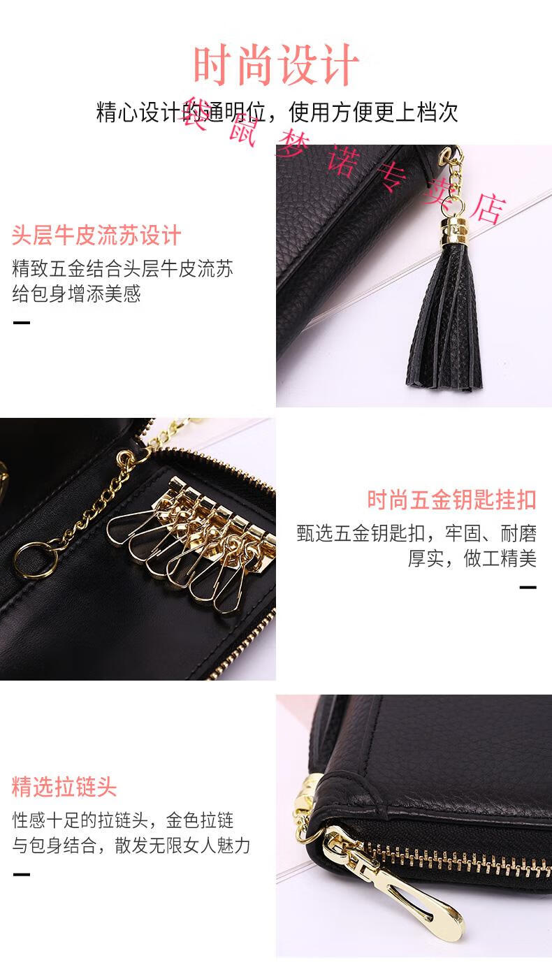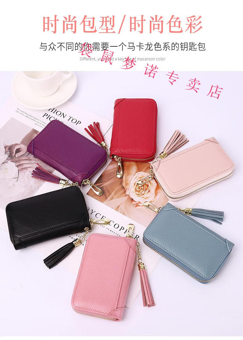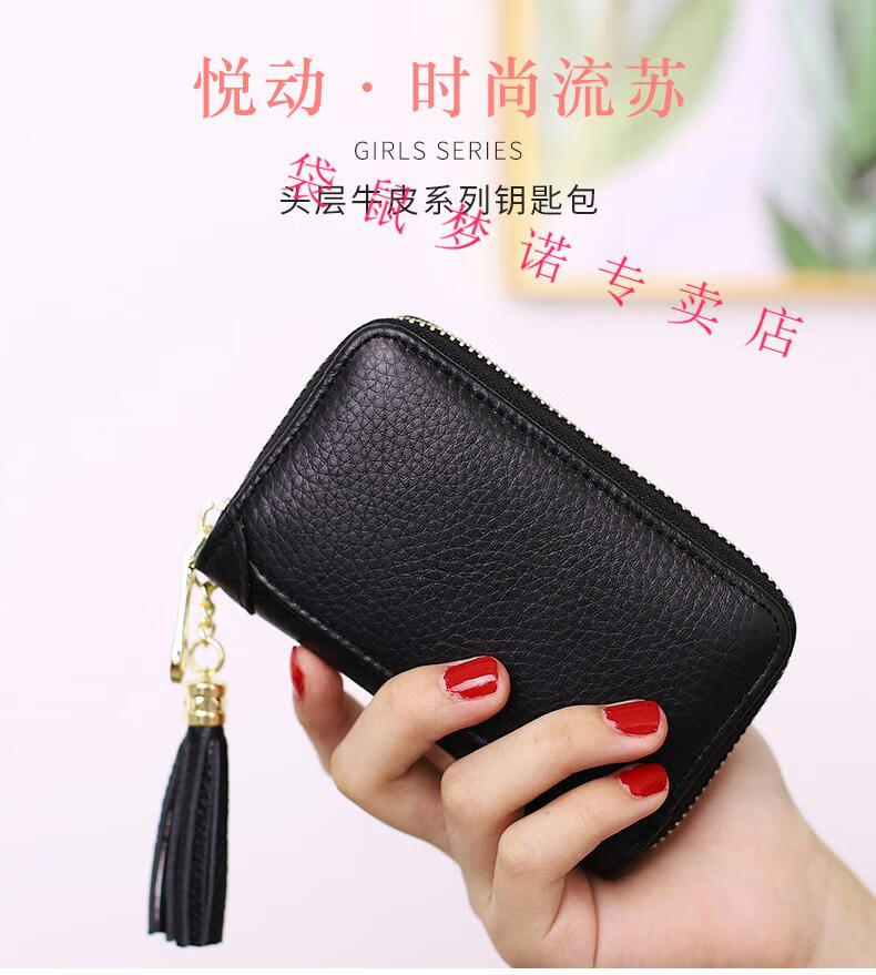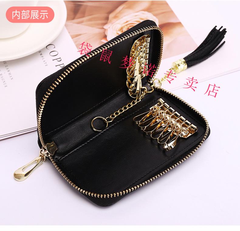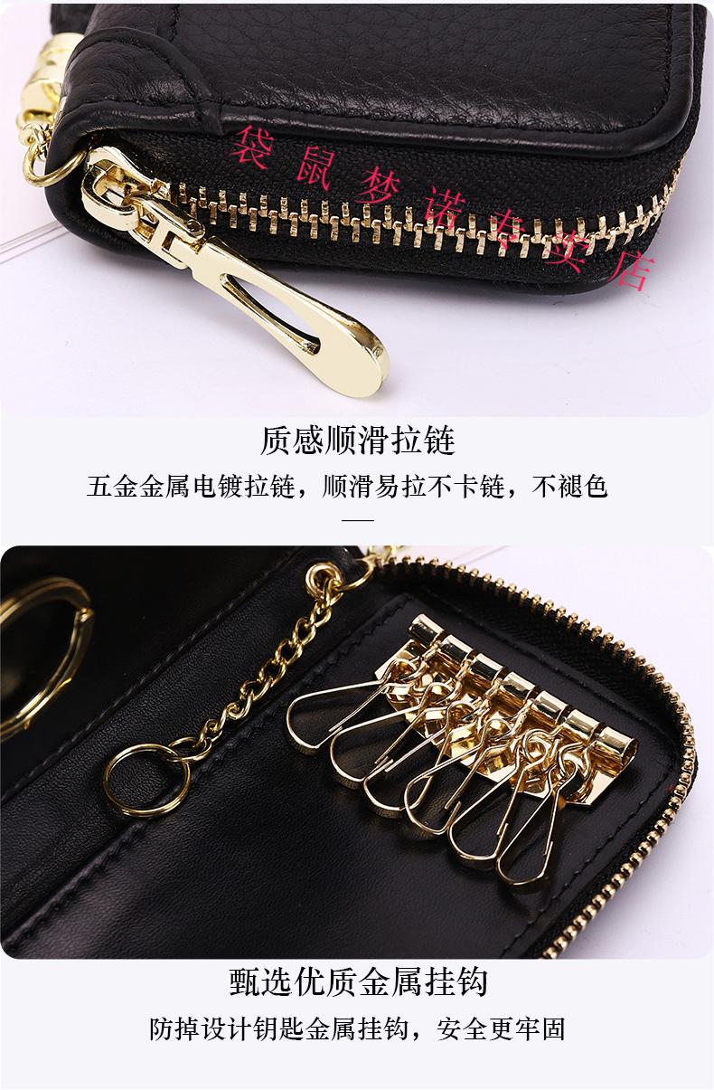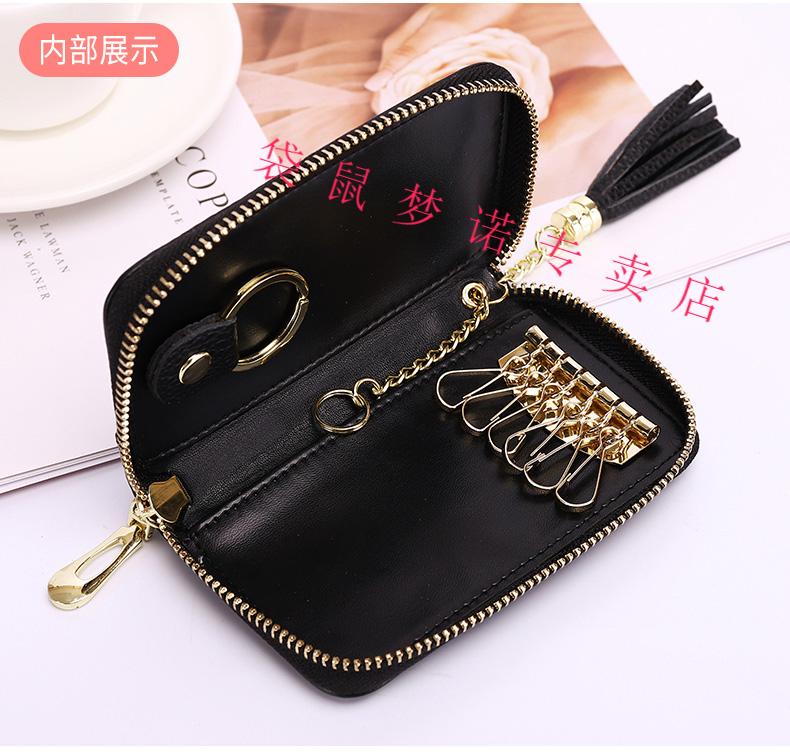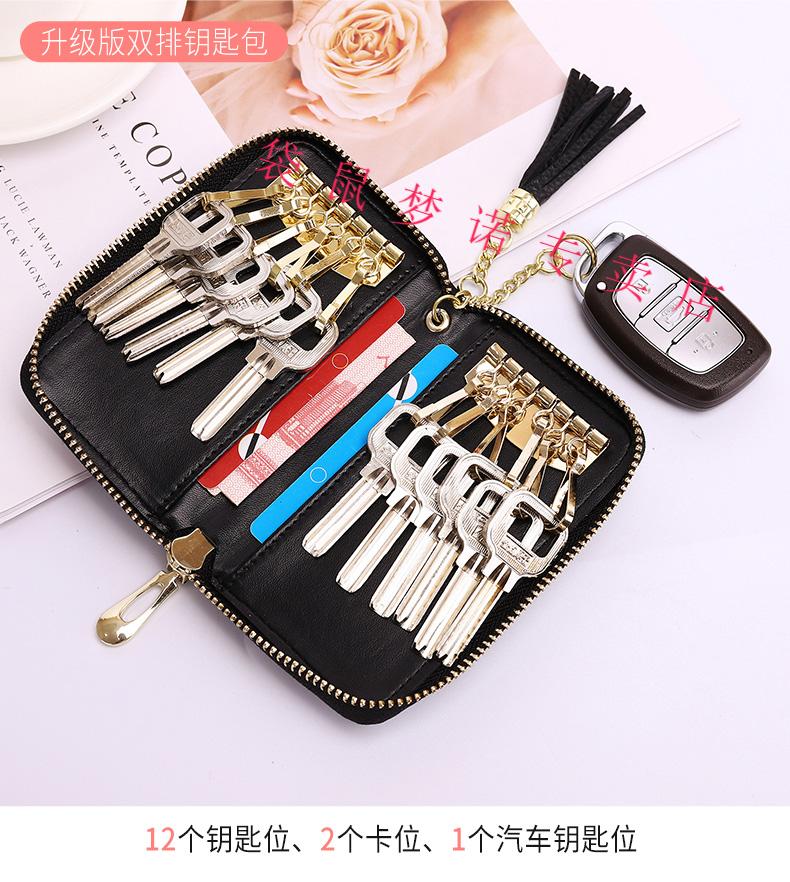 Kangaroo car key bag large capacity for women, genuine leather, compact, simple, multifunctional coin card holder, home key storage bag, black - classic single row keychain