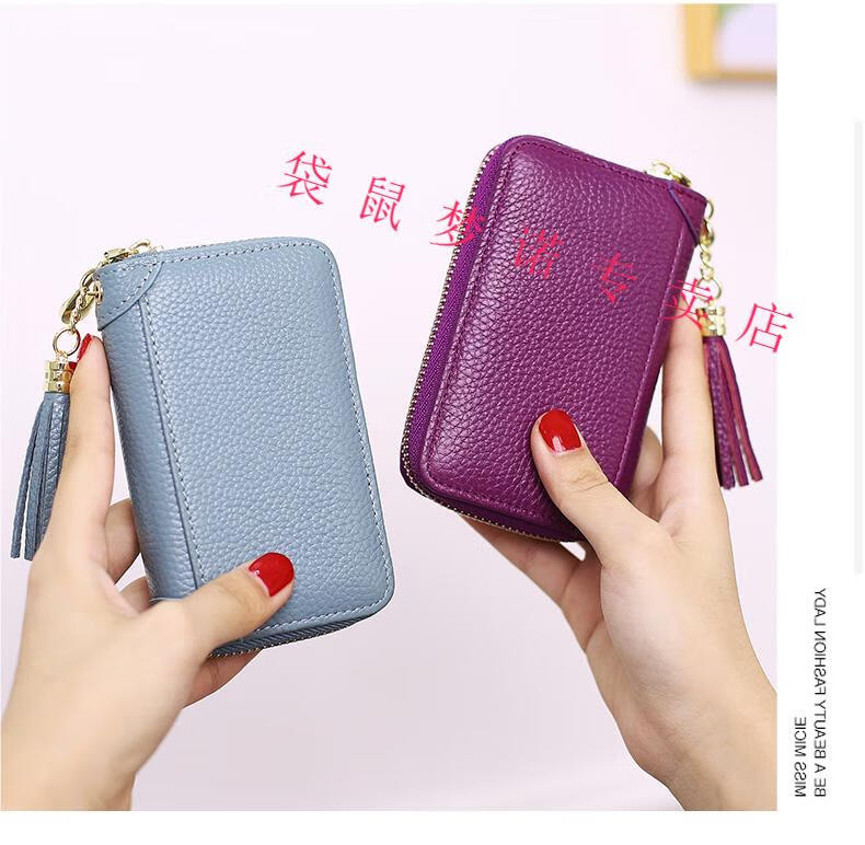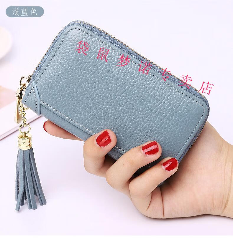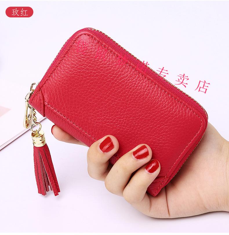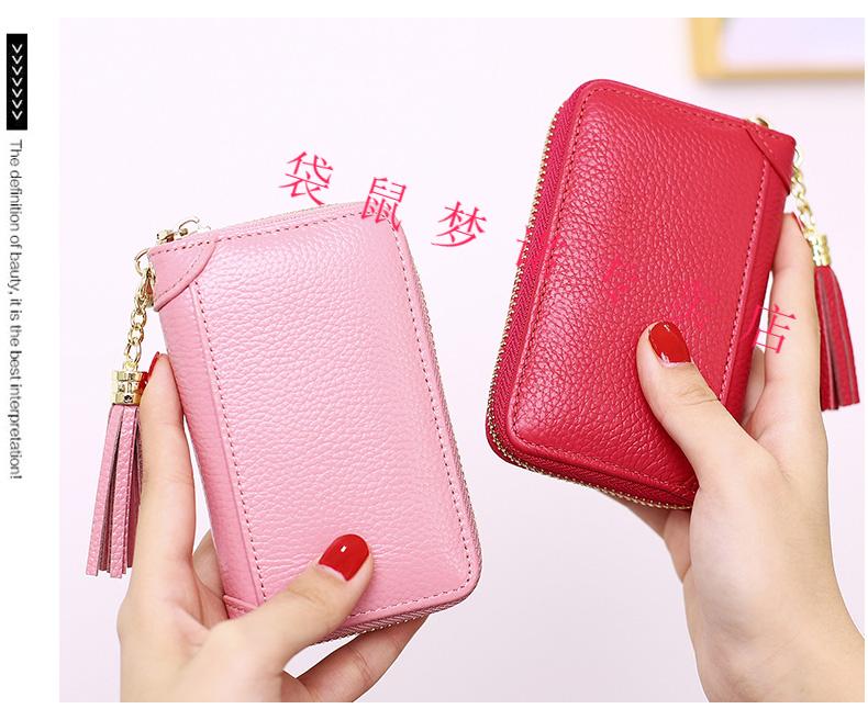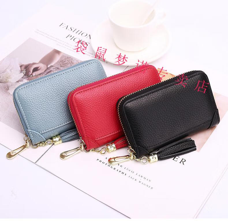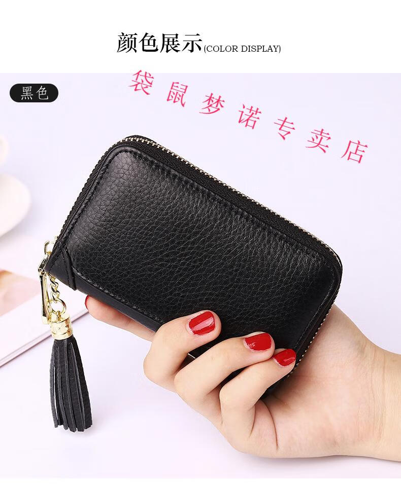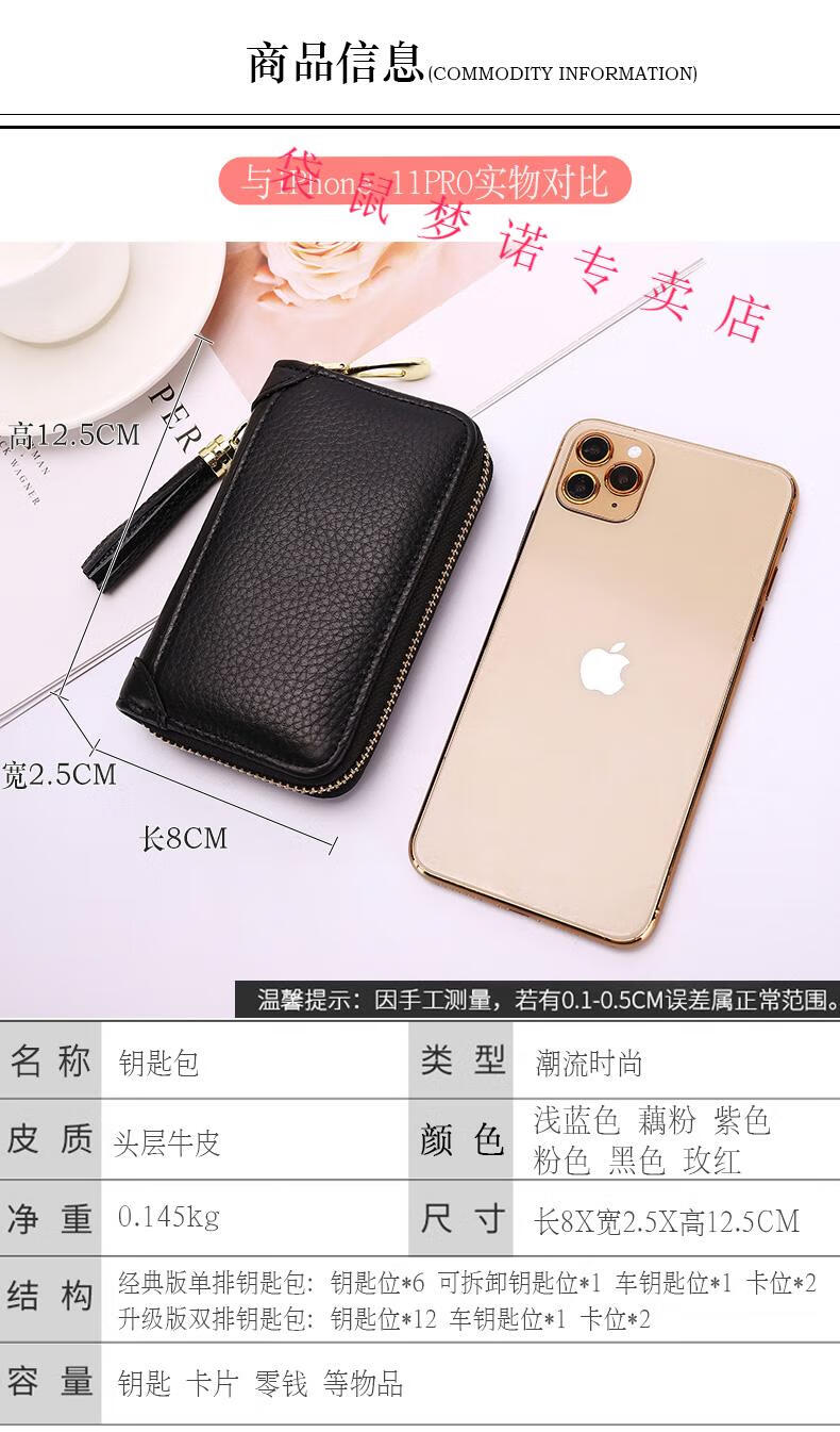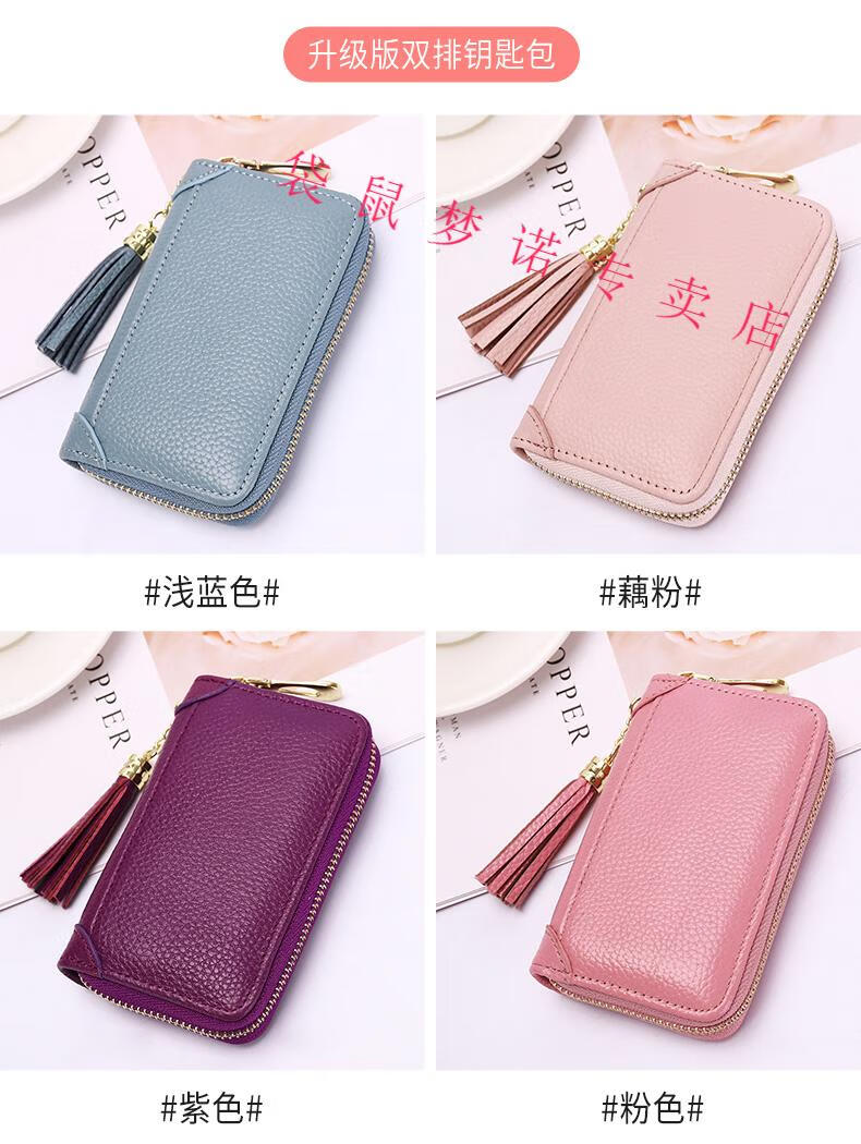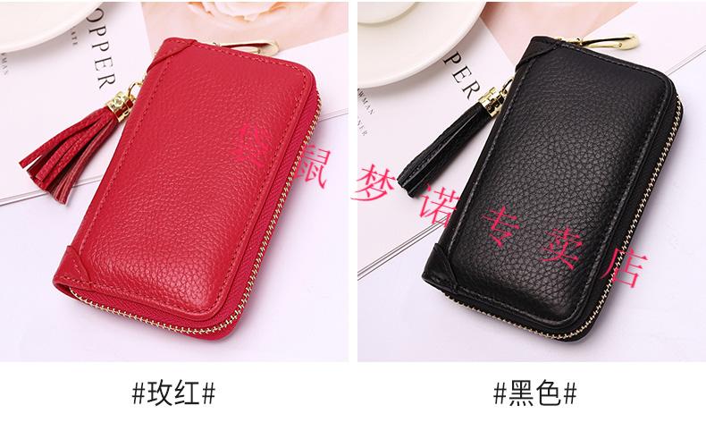 Kangaroo car key bag large capacity for women, genuine leather, compact, simple, multifunctional coin card holder, home key storage bag, black - classic single row keychain