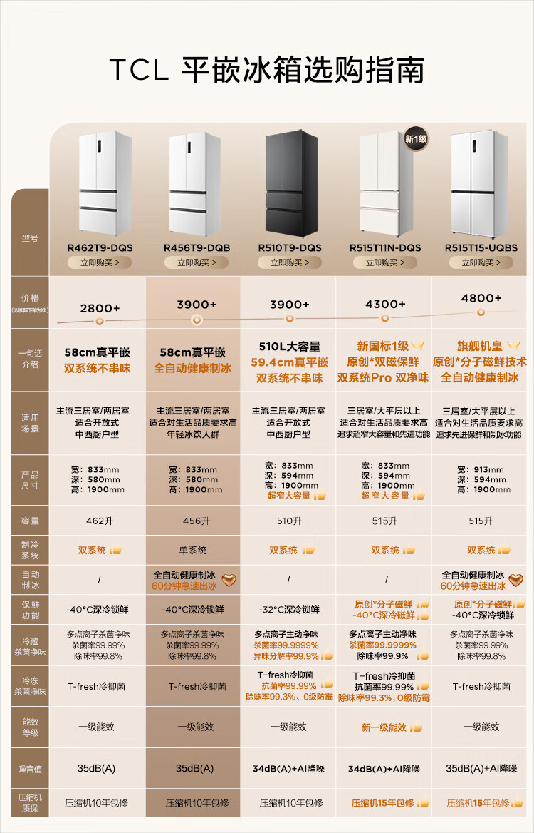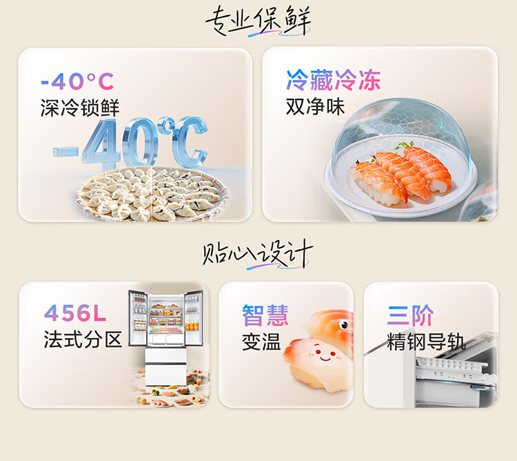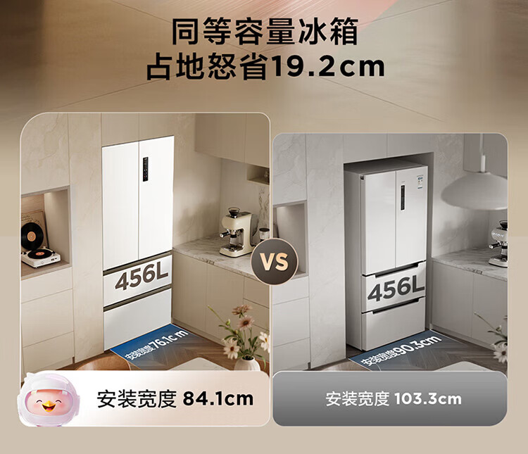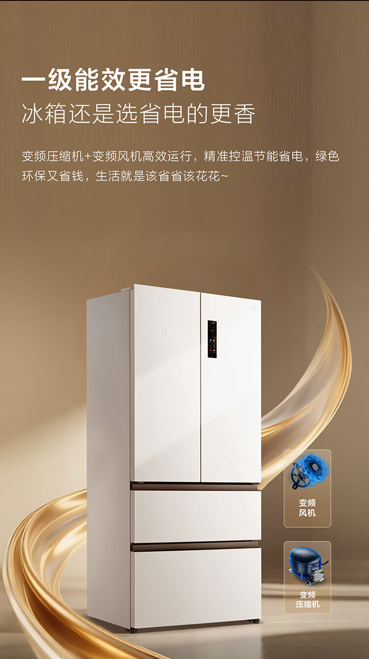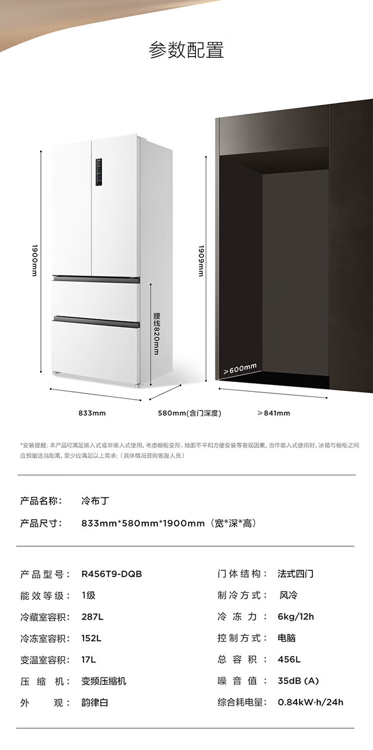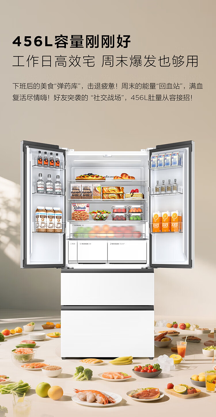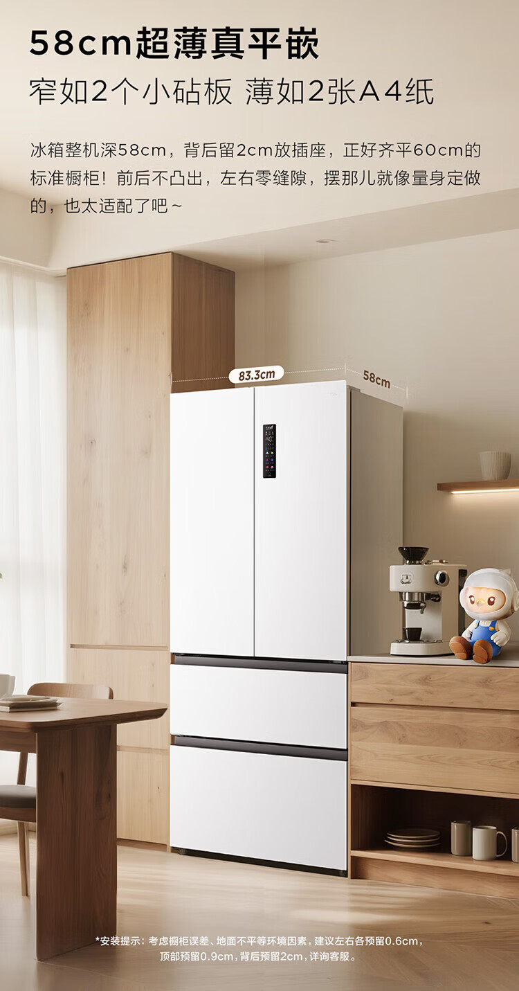TCL cold pudding 456 liter French multi-door four-door 58cm ultra-thin zero-embedded fully automatic ice making - 40 degrees slow melting ice first-class energy efficiency household refrigerator trade-in R456T9-DQB national subsidy