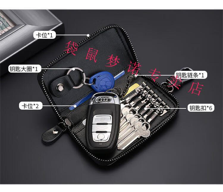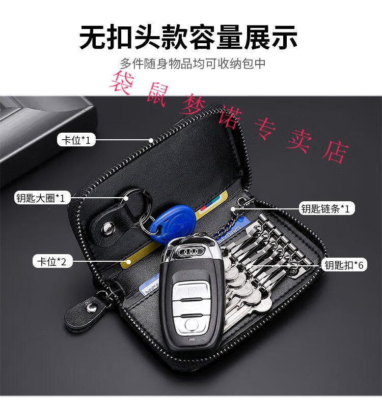 Kangaroo Business Zipper Couple Waist Key Bag Car Home Simple Large Capacity Multifunctional Universal Key Bag Black Hookless Ordinary Style