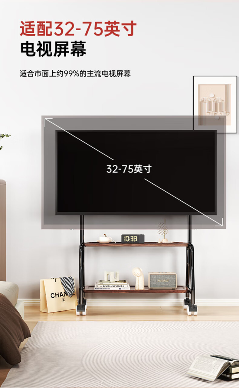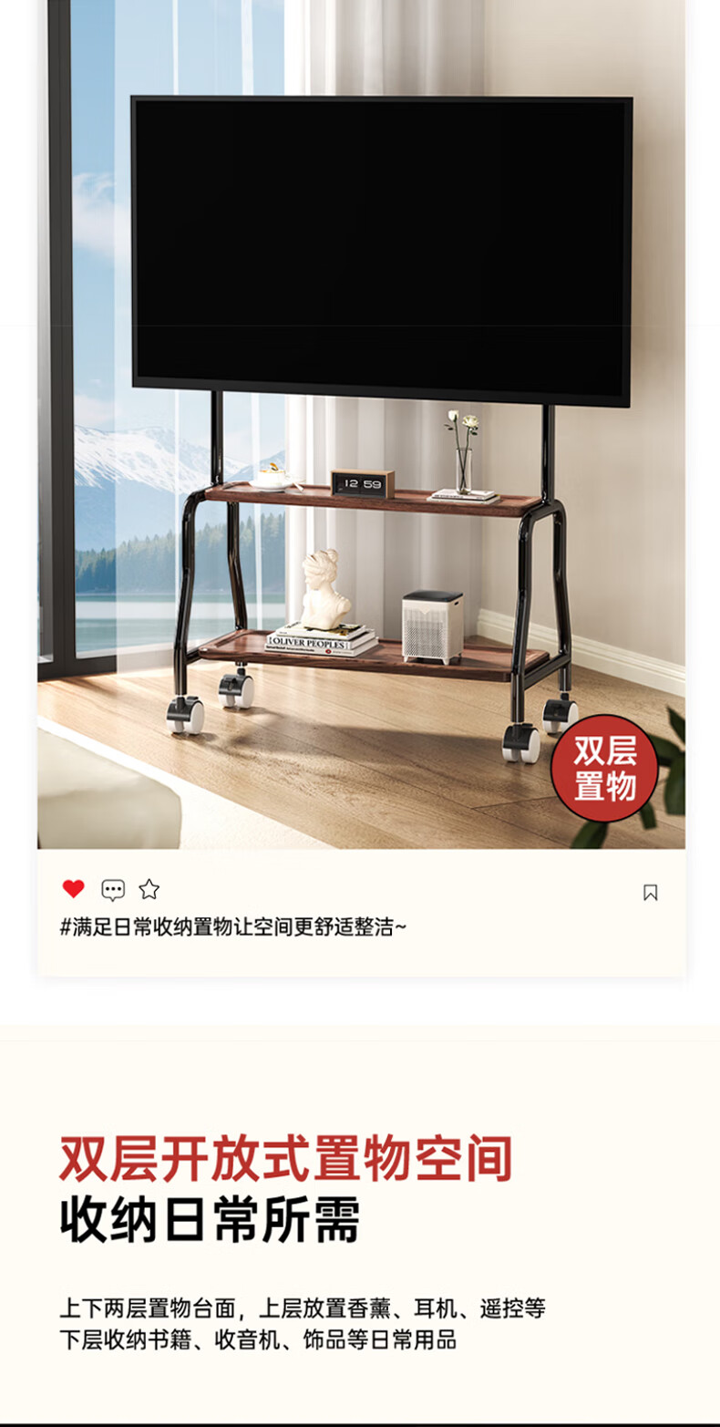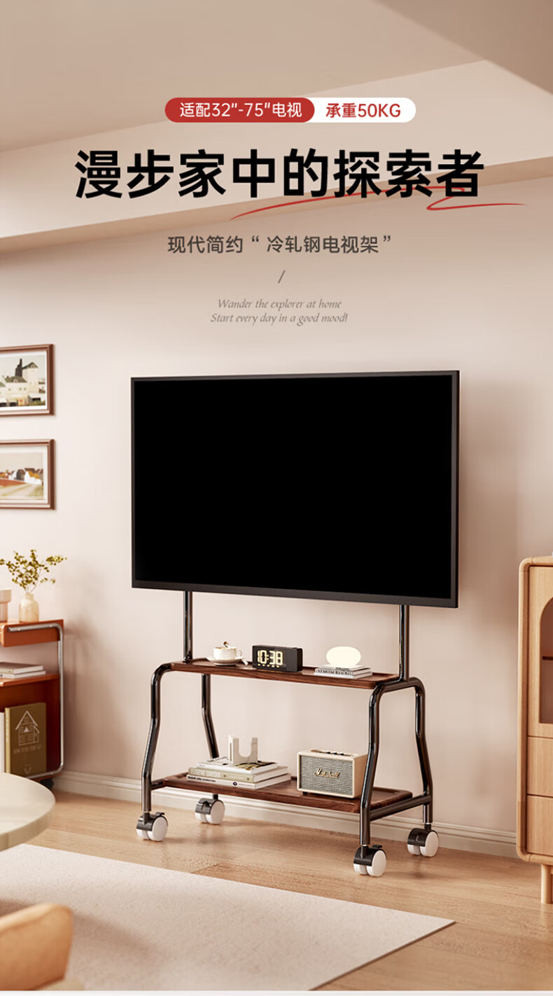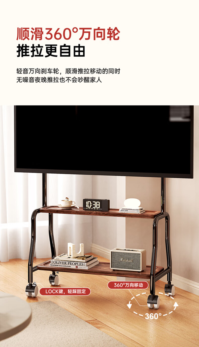 Beishi 32-75 inch universal mobile TV floor stand TV stand floor cart mobile stand suitable for Hisense Skyworth Sony Xiaomi and other TV stands Single layer 32-75 inches universal/wood grain storage tray