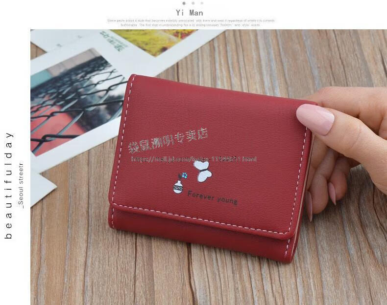 Kangaroo (KANGAROO) Official Flagship Women's Wallet Women's Short Tri-fold Cover Wallet Japanese and Korean New 2024 Multifunctional Folding Leather Big Red