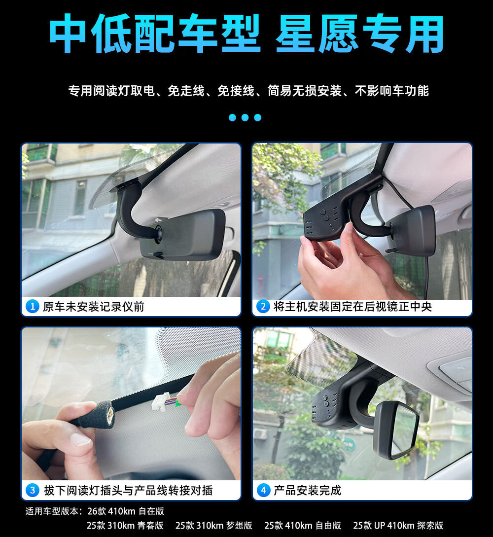 Lingzhou Geely Xingyuan special driving recorder original ultra-clear night vision cable-free 2025 new original car hidden type Xingyuan (freedom/youth/dream/freedom/exploration) special/black (dual lens) 2160P 4K +64G high-speed U3 card