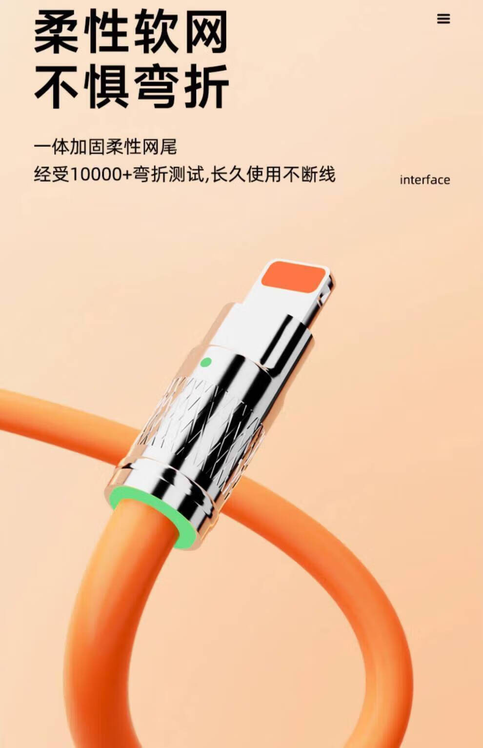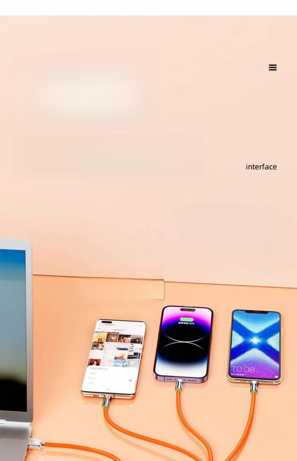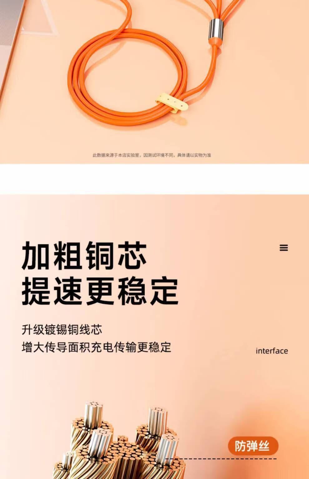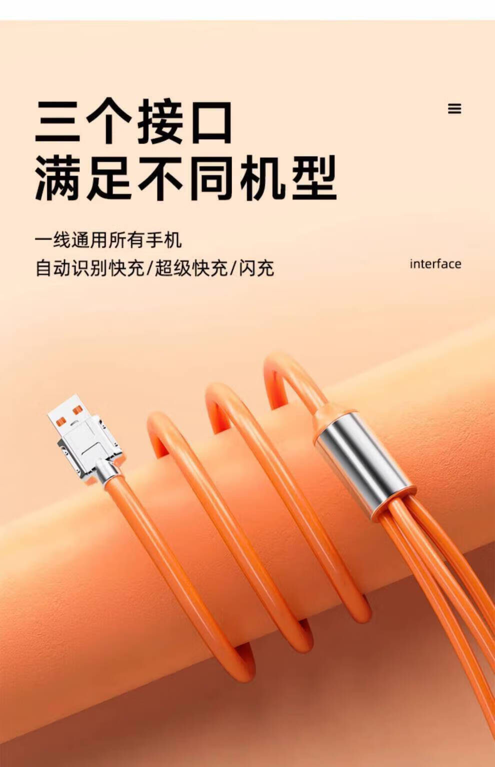 Juxun data cable three-in-one charging cable one-to-three usb fast charging car three-head suitable for Apple Huawei Honor Samsung iPhone15pro Android mobile phone multi-function 1.2 meters three-in-one interface/red orange orange