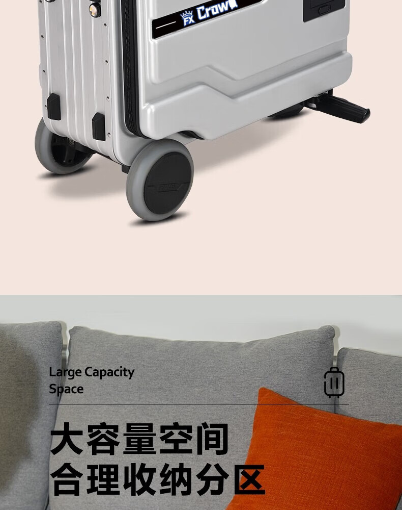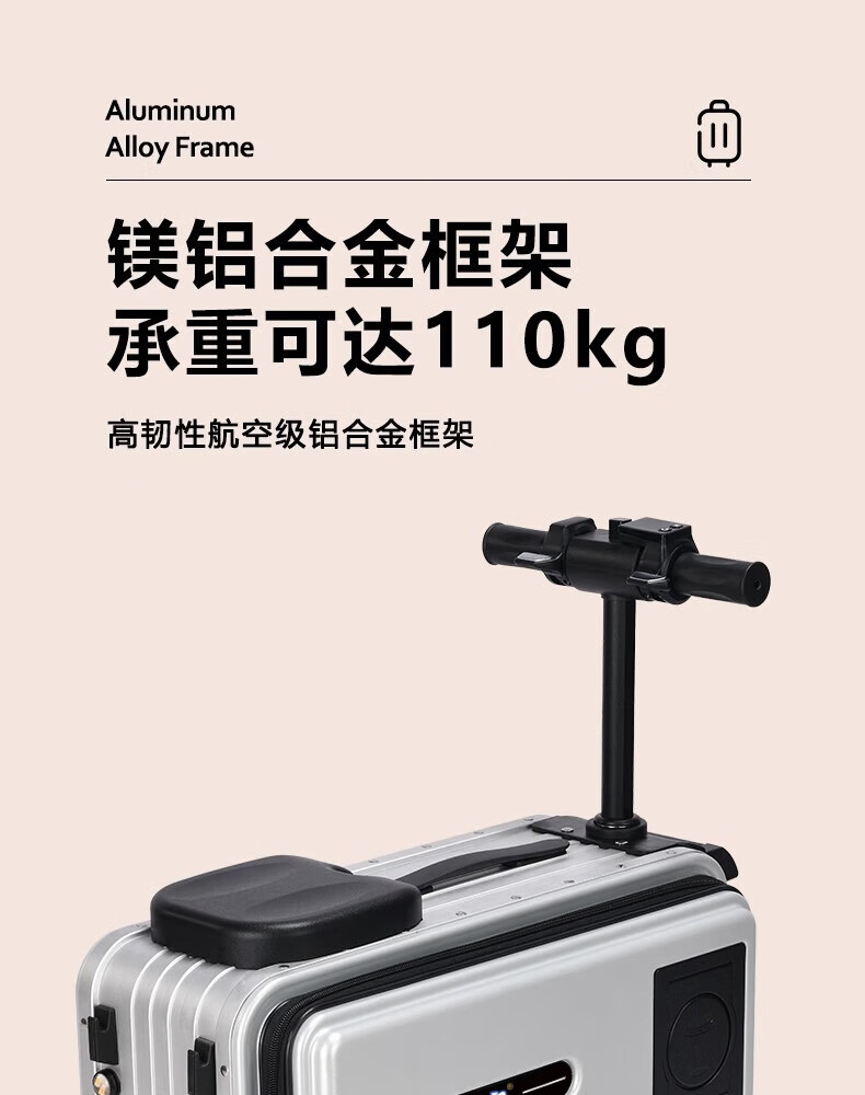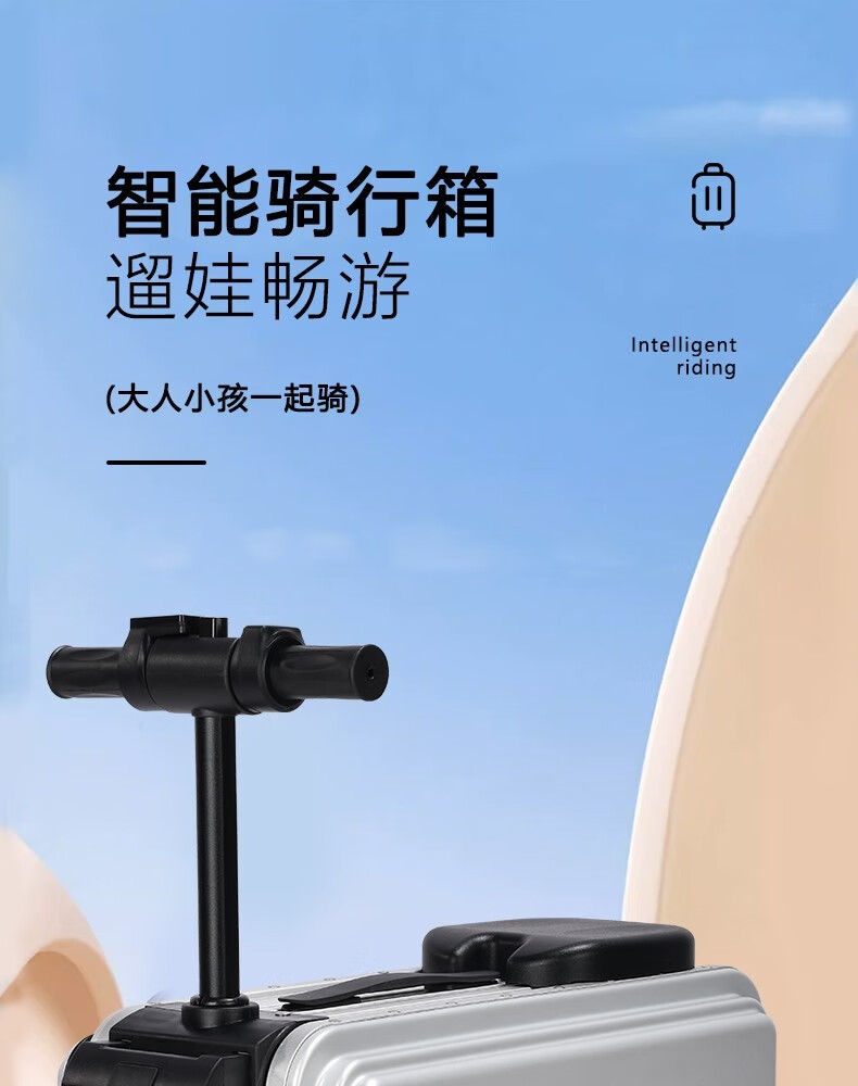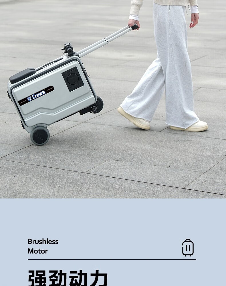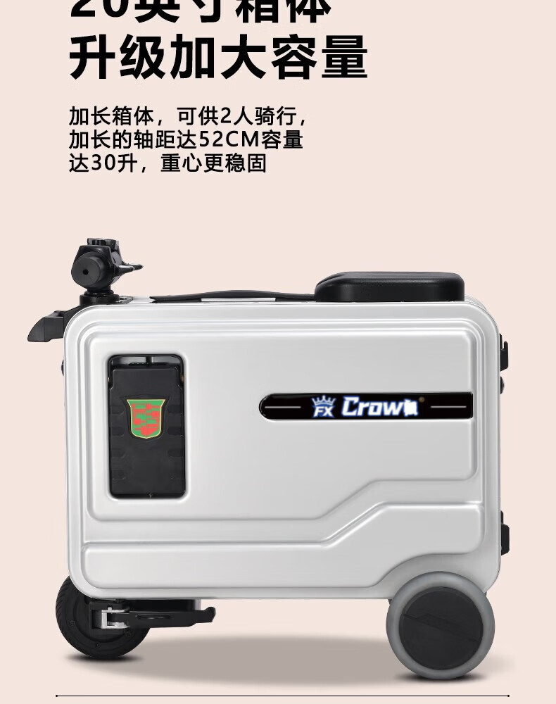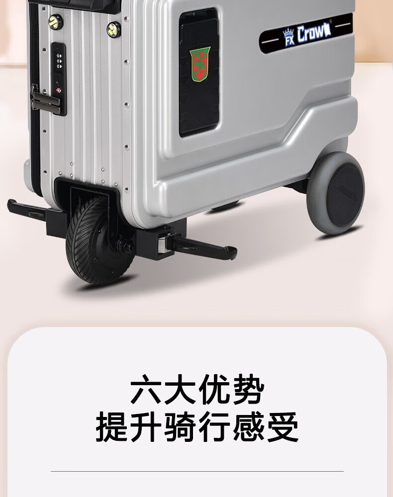 Electric cycling luggage, boarding suitcase, riding and carrying passengers, 20-inch large-capacity 3C electric luggage, high-grade silver, deluxe version, boarding/high-speed rail, one battery, 20 inches