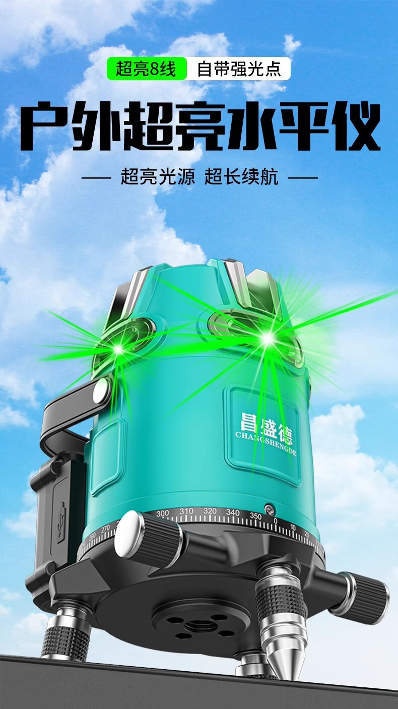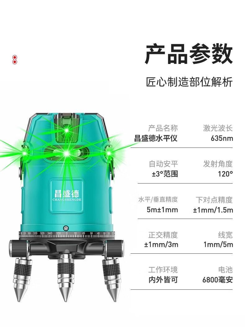 Changshengde Electronics Anping infrared level meter green light 8 lines high-precision thin line automatic line laser marking line caster electronic leveling green light 8 lines 9 points