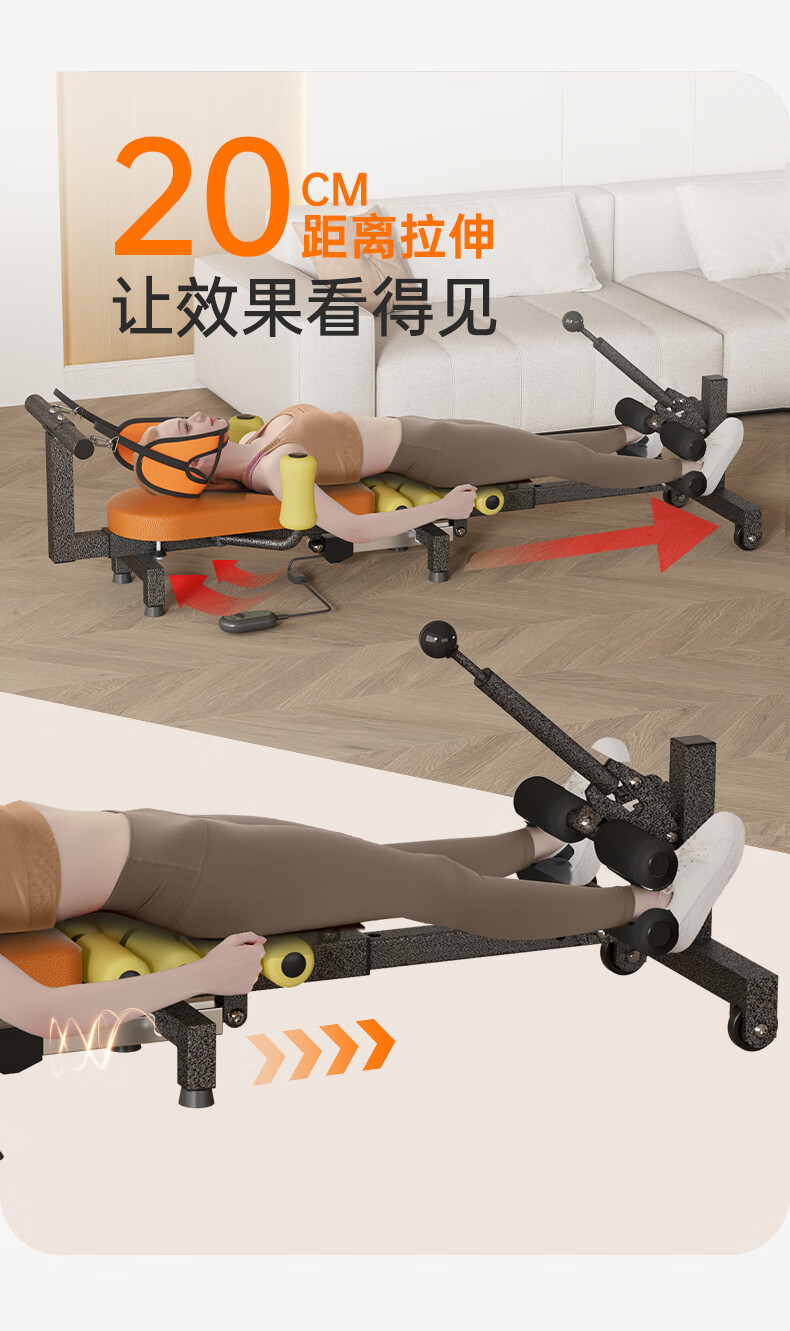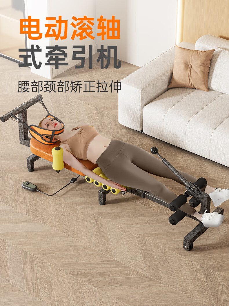 BILLNA cervical vertebra traction device electric lumbar vertebra traction device soothing device lumbar vertebra home stretching correction aid electric model stable two-wheel-quiet motor two bandages