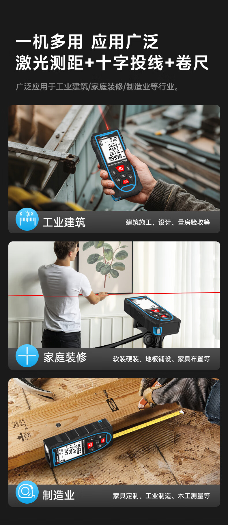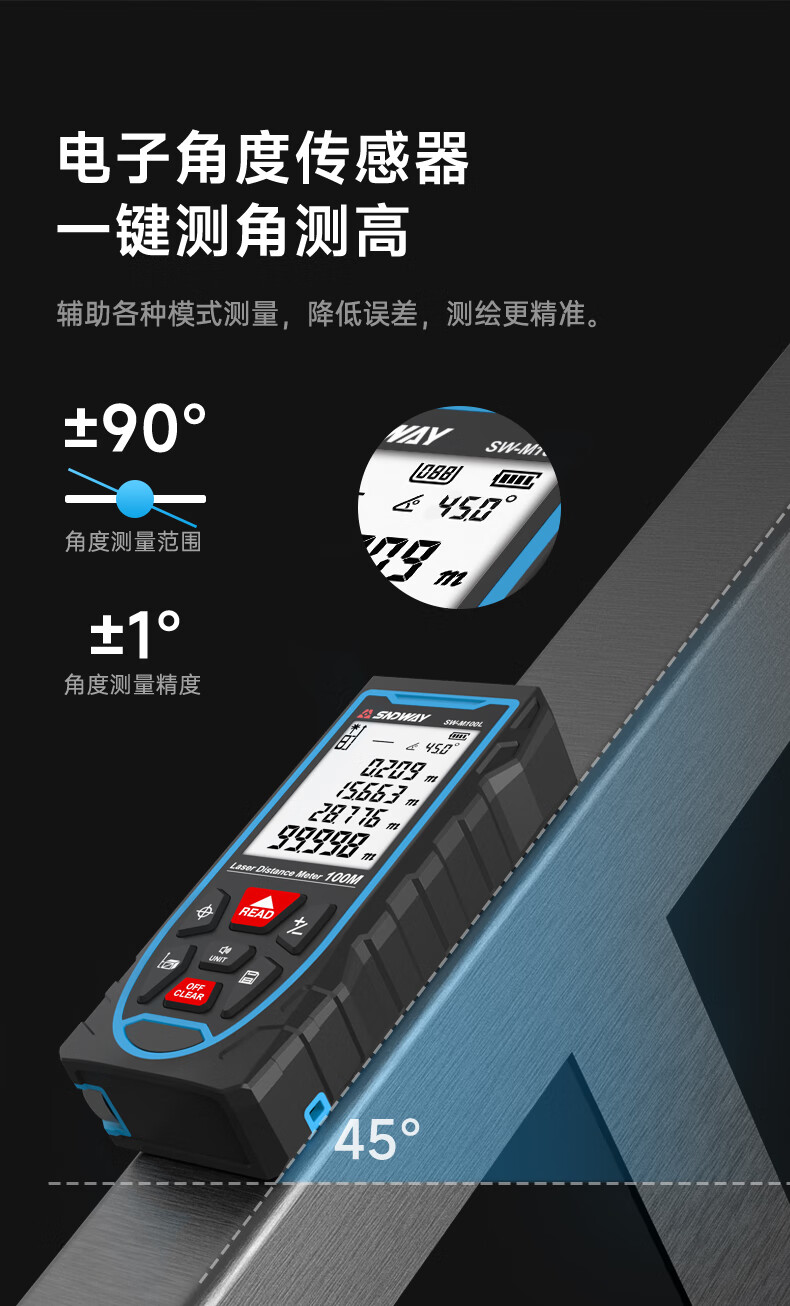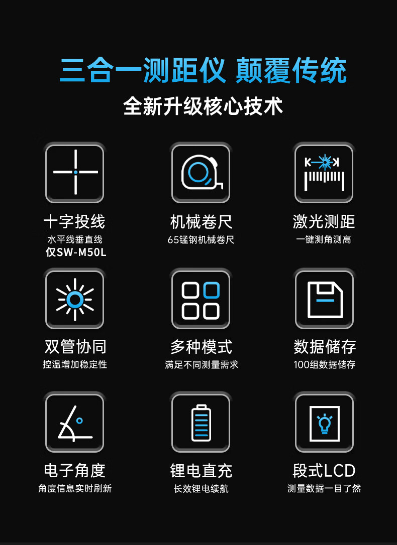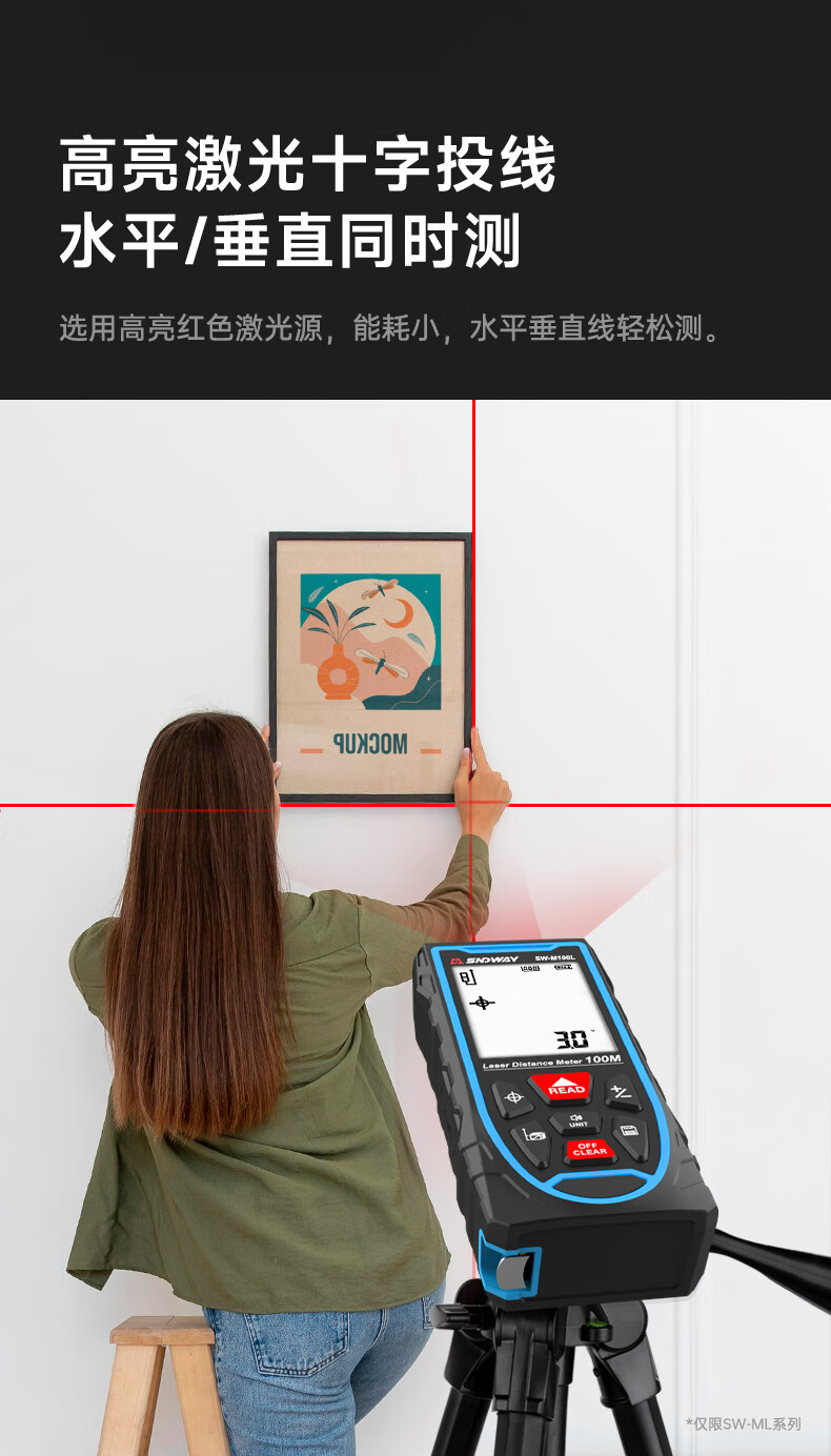 Shendawei Laser Distance Meter Cross Mark High Precision Handheld Line Casting Electronic Ruler Infrared Laser Ruler 50 Meter - Cross Mark + Level + 2 Meter Tape Measure