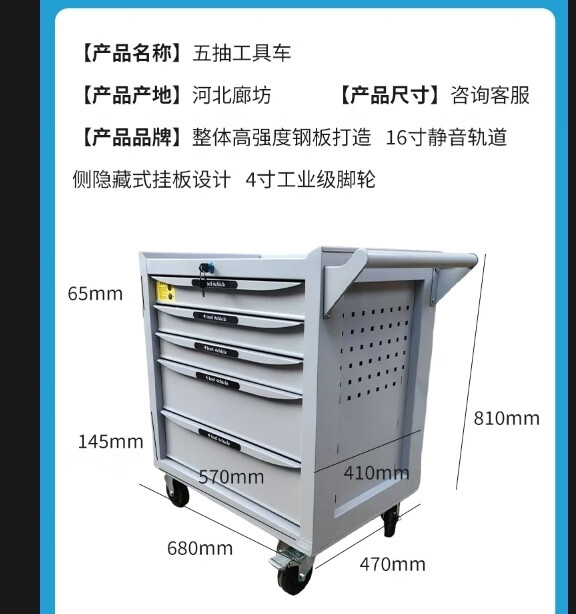 Yeyu five-layer drawer mobile heavy-duty multi-layer tool cart, a good helper for auto repair and industrial maintenance, large size, alloy gray QH-9915
