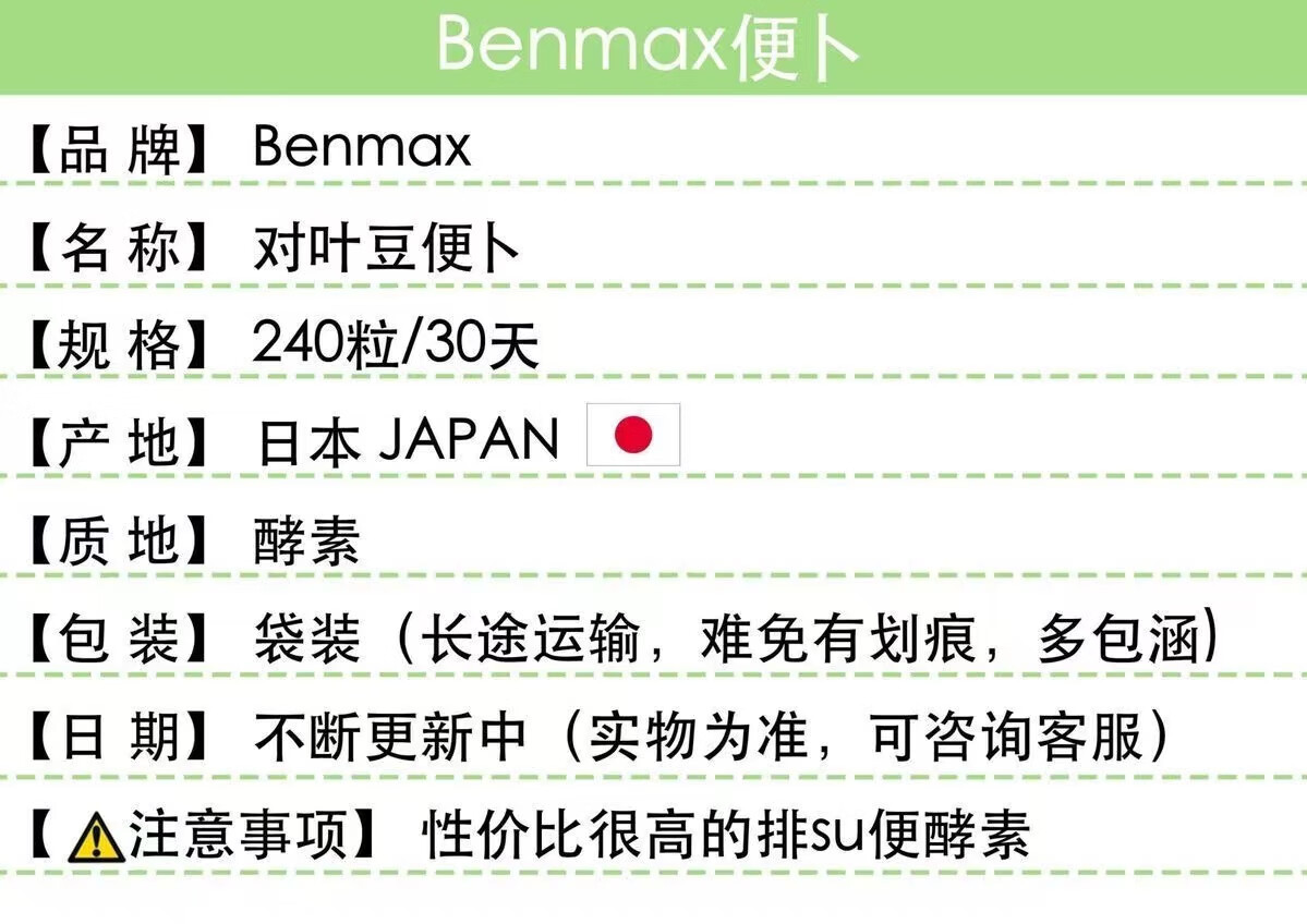 Benmax Japanese local version benmax pudding tablets on leaf bean enzyme bowel defecation dietary fiber defecation 240 capsules benmax pudding enzyme 1 bag