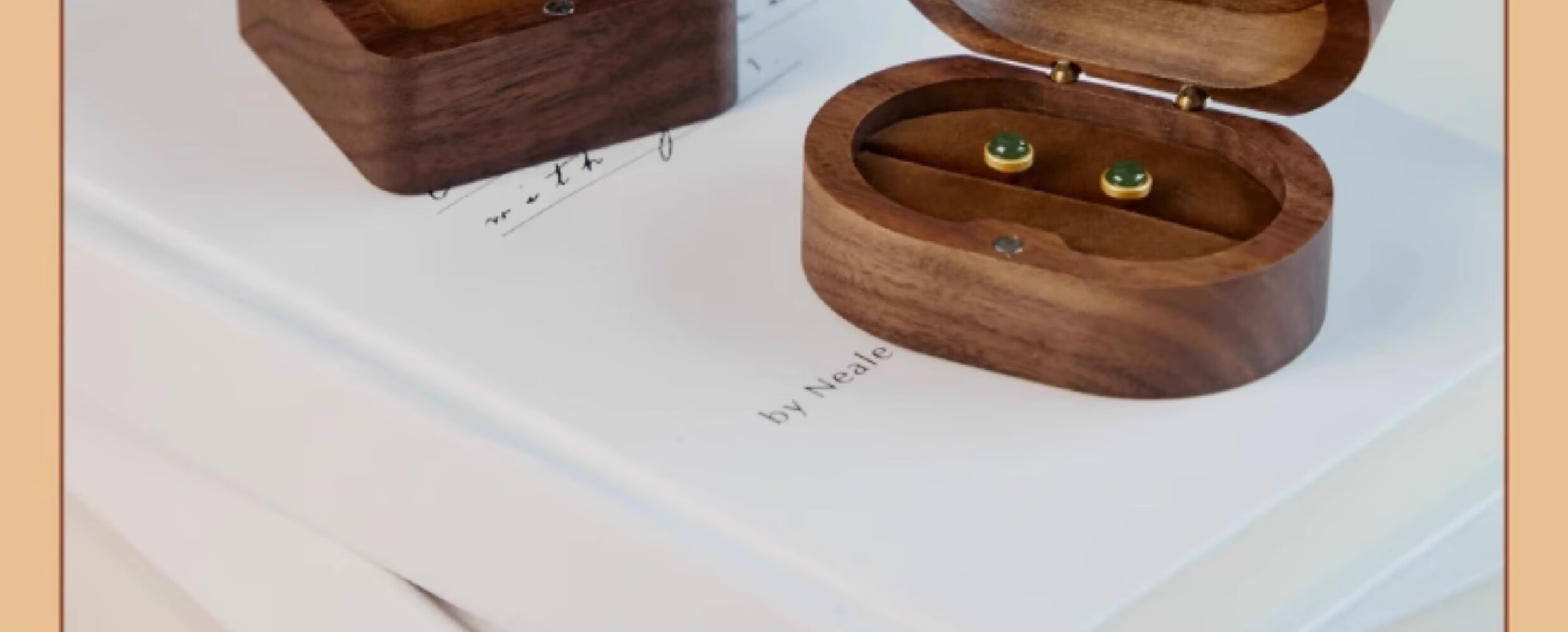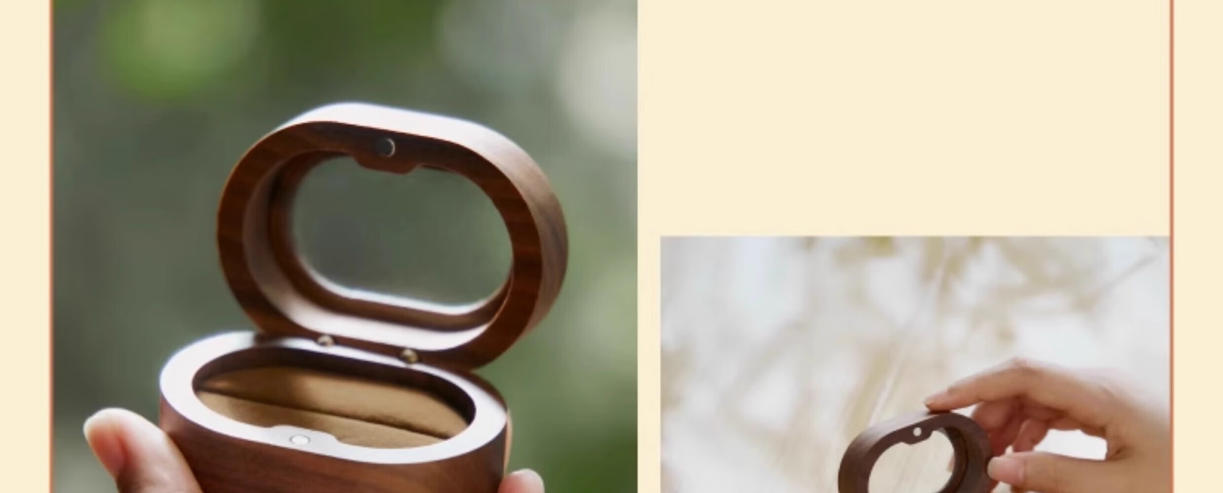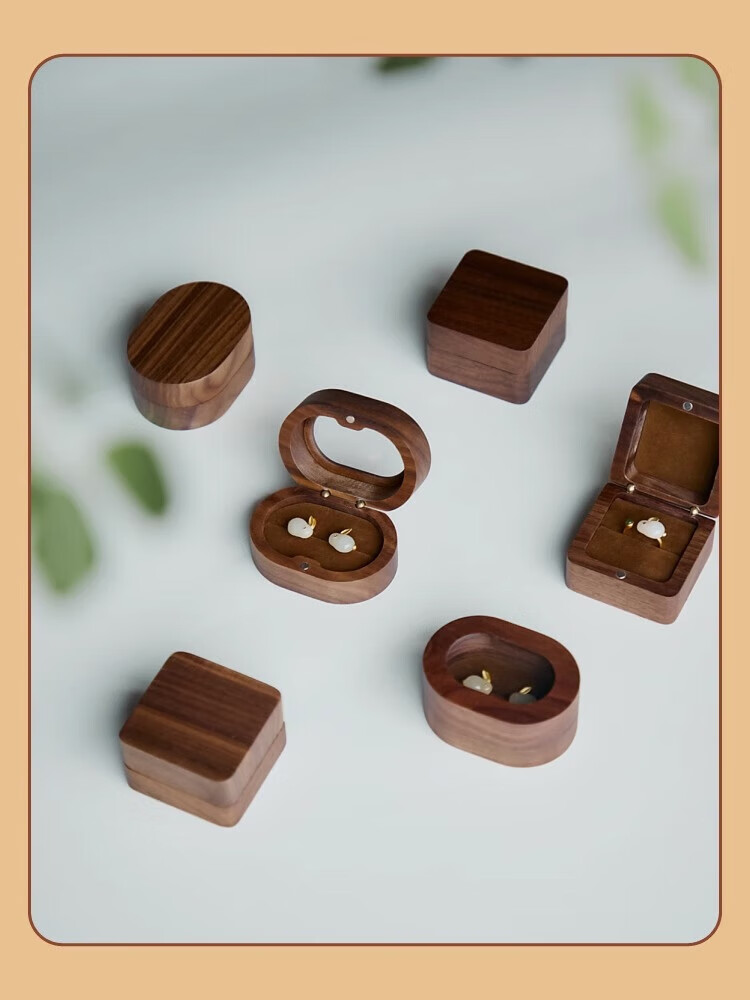 Orange Central Ring Box Premium Earrings Gift Box Birthday Proposal Wedding Ring Wooden Walnut Jewelry Storage Box Retro Square Solid Wood Cover
