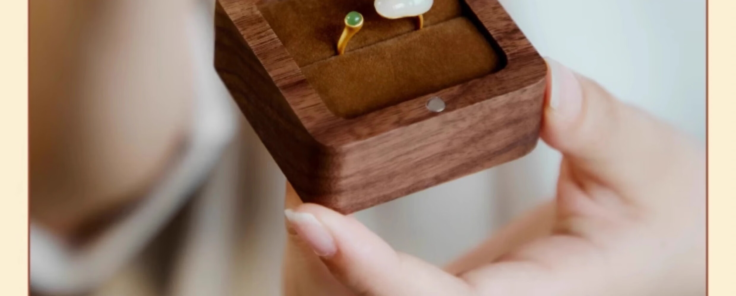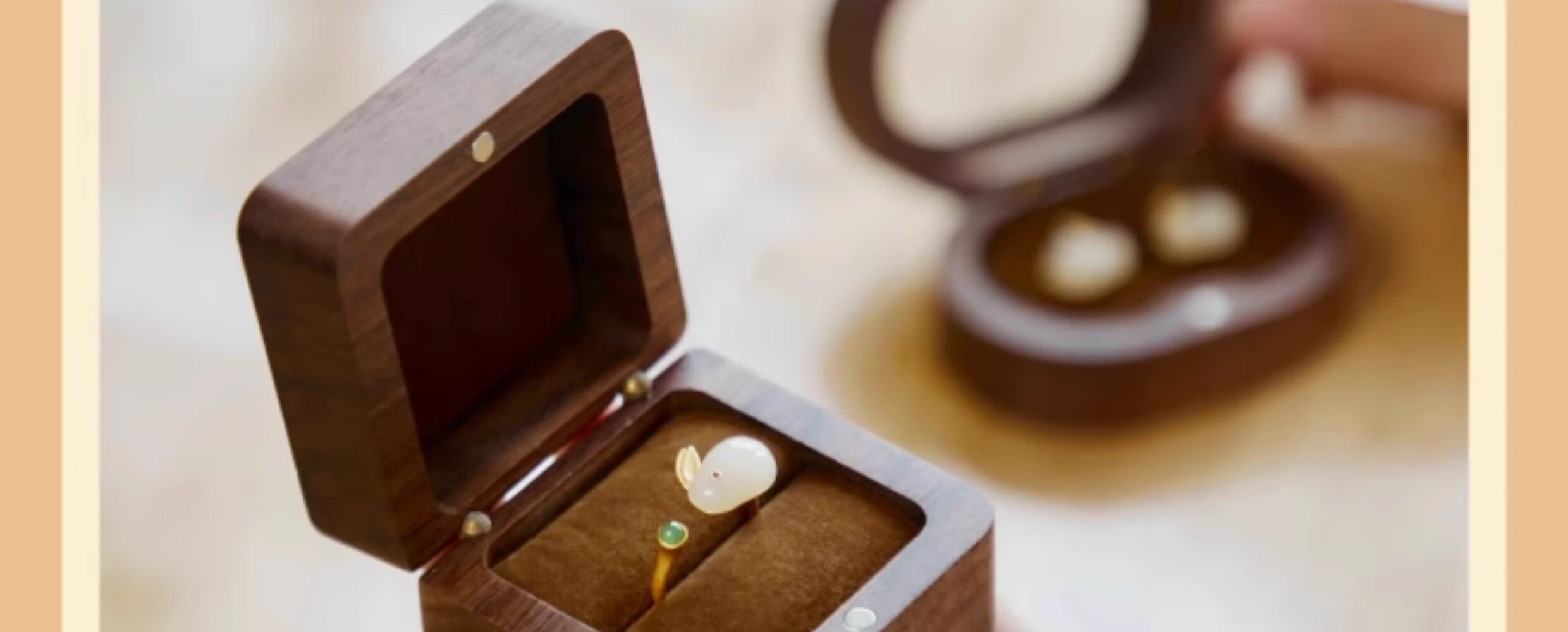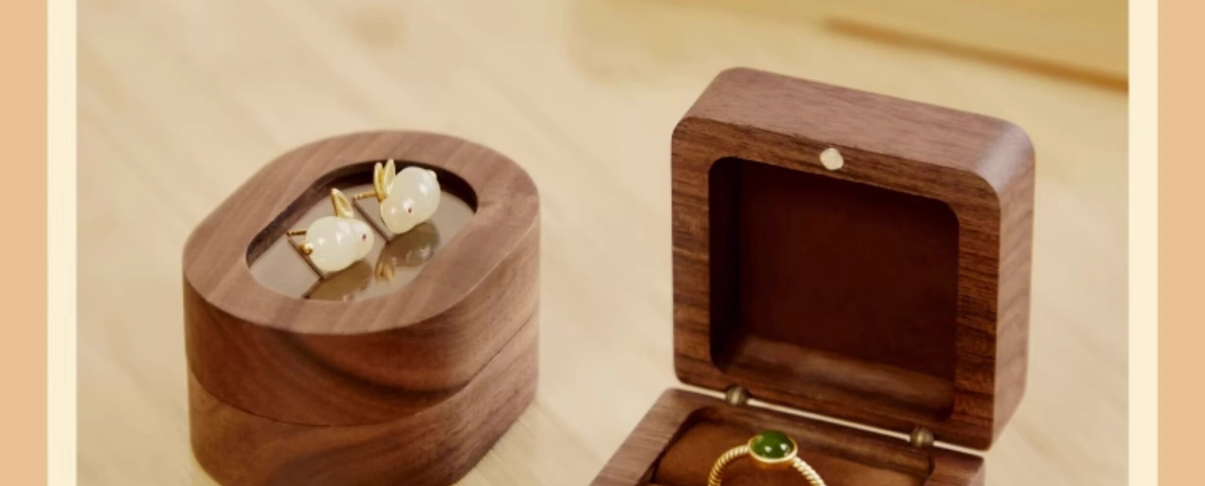 Orange Central Ring Box Premium Earrings Gift Box Birthday Proposal Wedding Ring Wooden Walnut Jewelry Storage Box Retro Square Solid Wood Cover