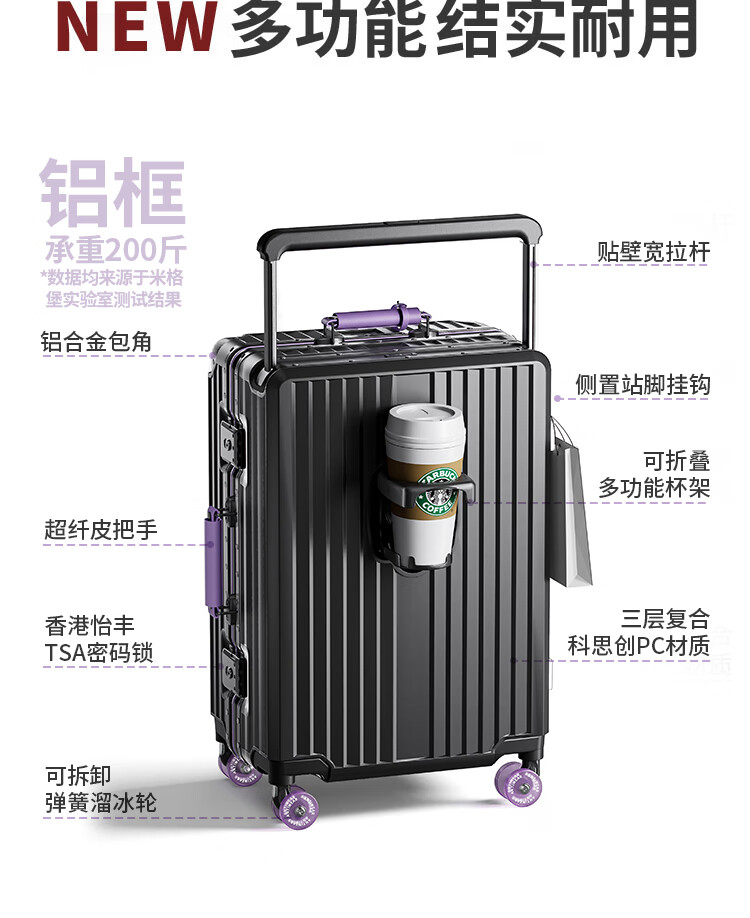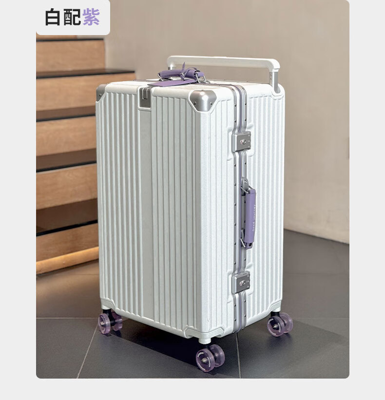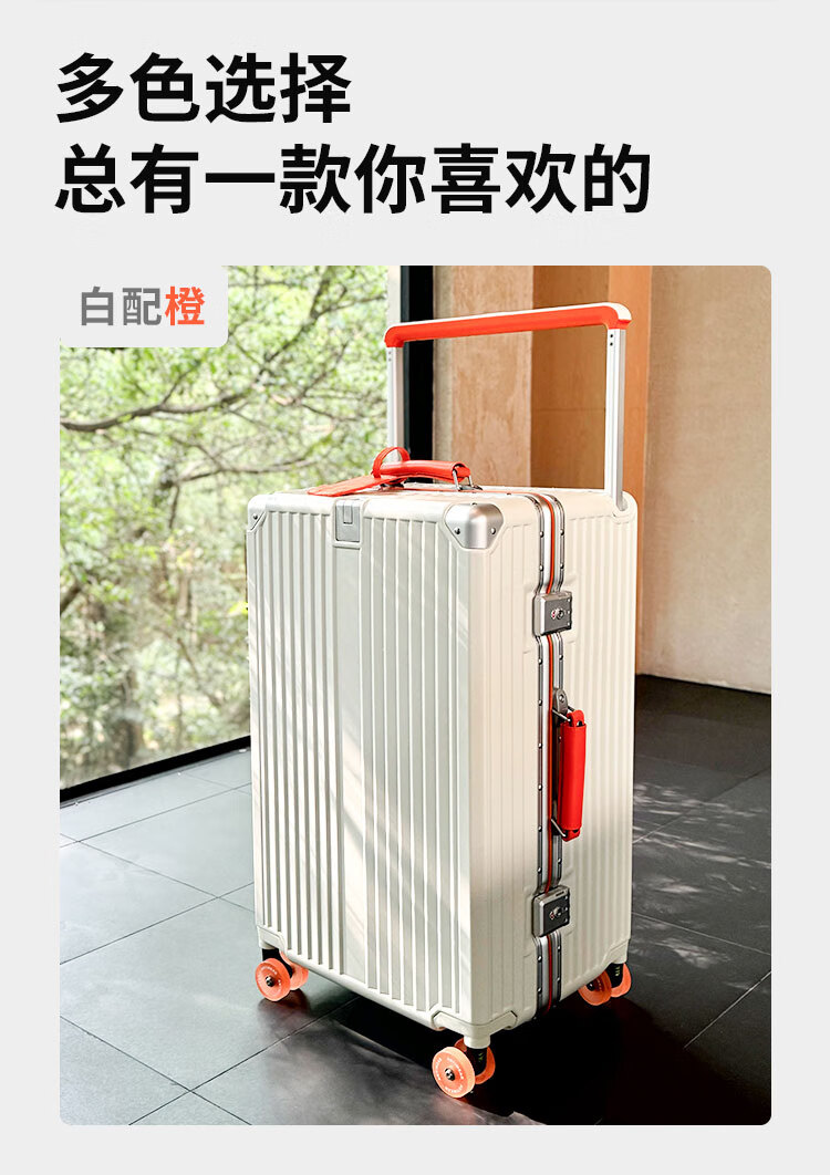 EKK Japanese imported brand 2025 high-end luggage trolley case, large capacity travel luggage, password box, strong white & yellow - lock buckle style (shock-absorbing wheels removable/spring 30 inches need to be checked - suitable for travel more than 15 days - moving