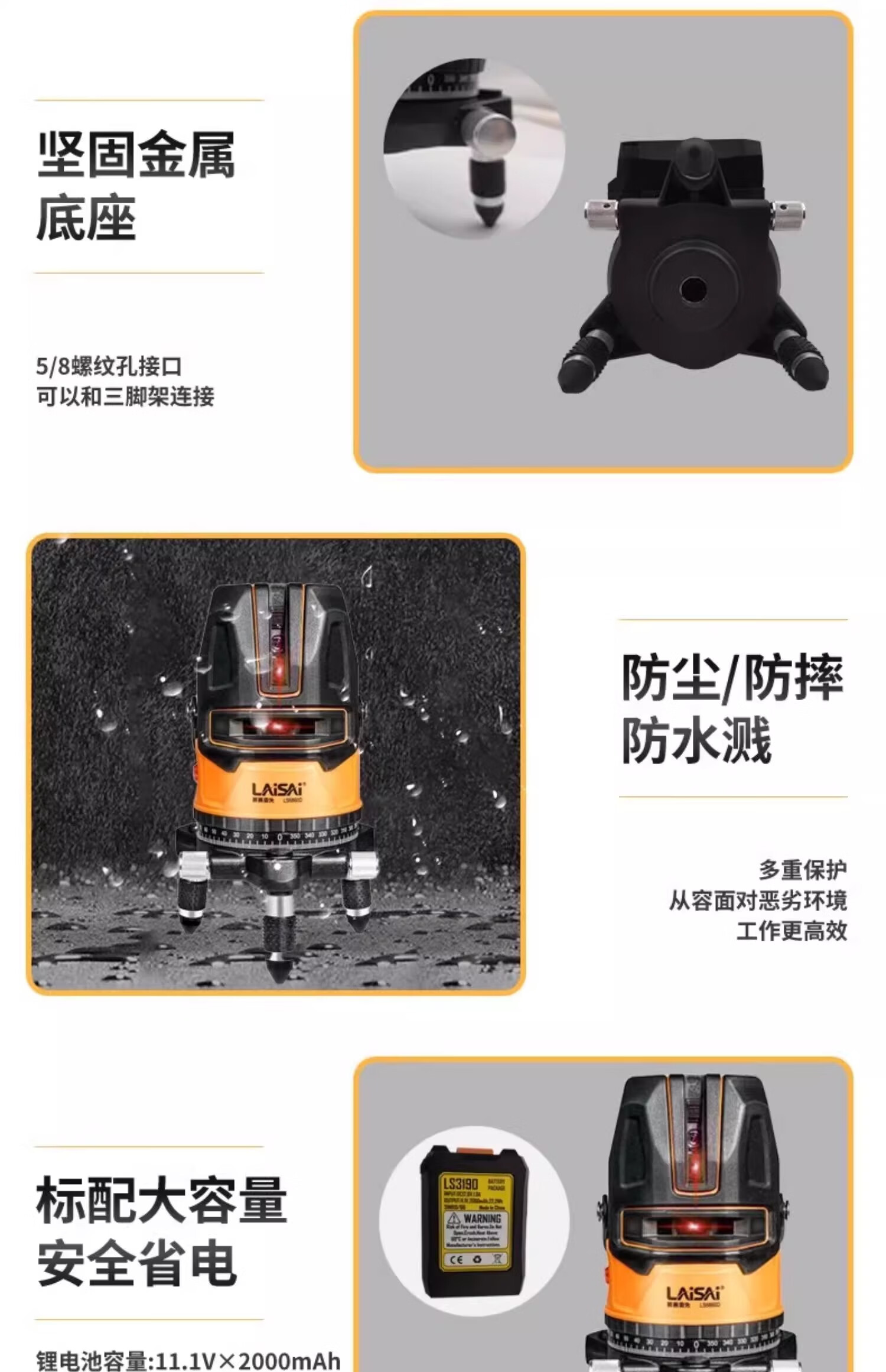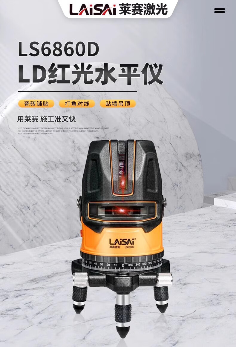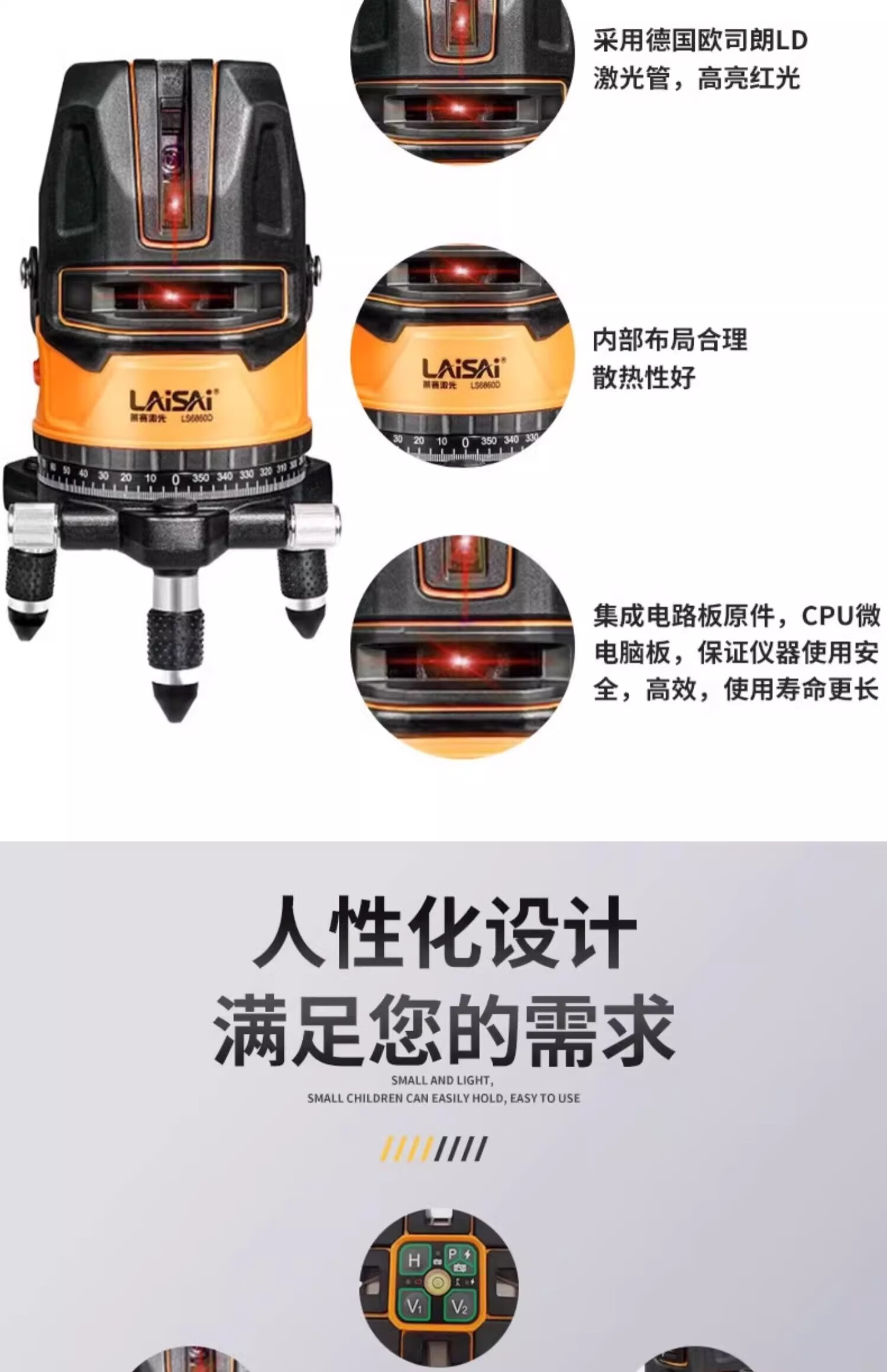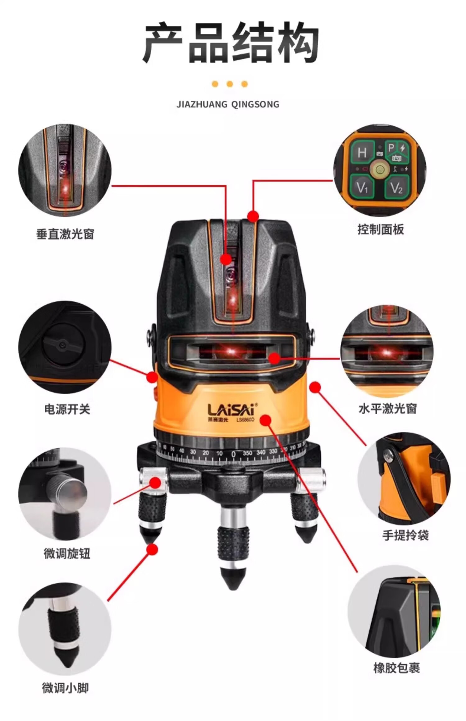 Laisai laser level LSG6860D level green light 3-line 5-line strong light mark line meter high-precision large lithium battery with strong light spot red light five-line LS6860D standard