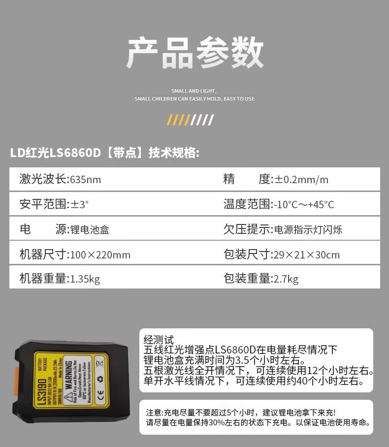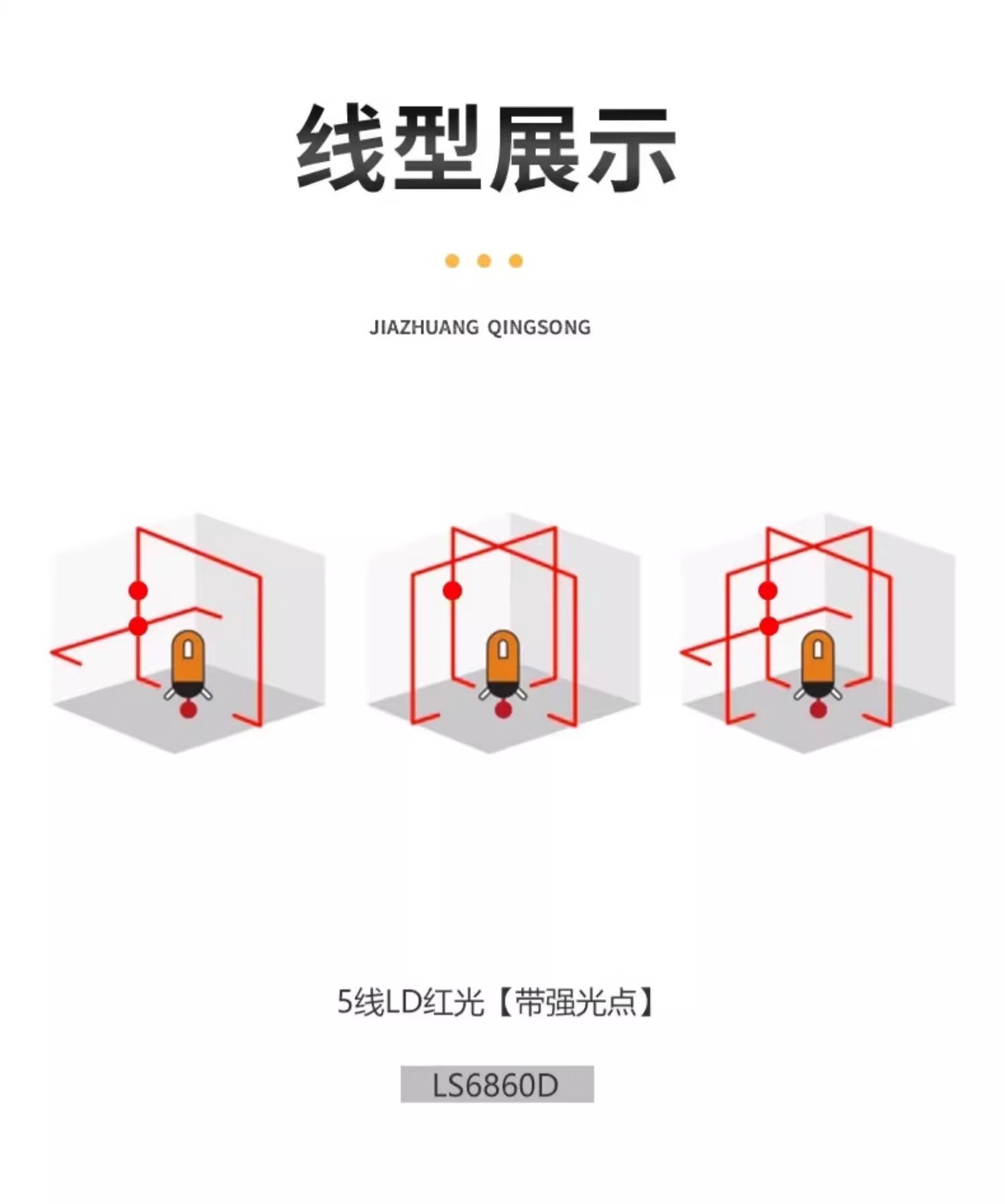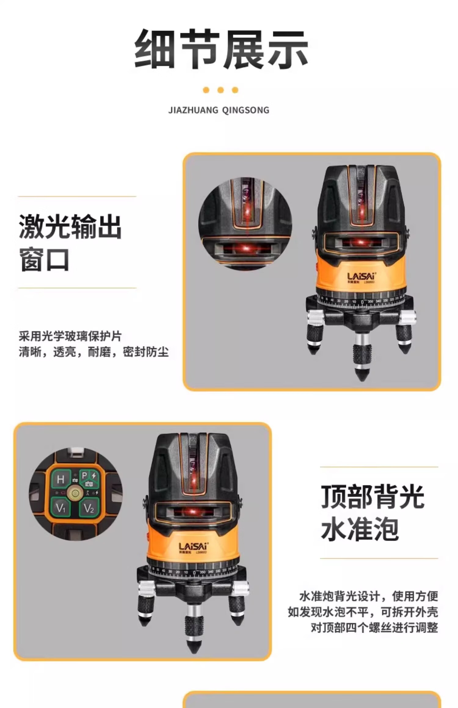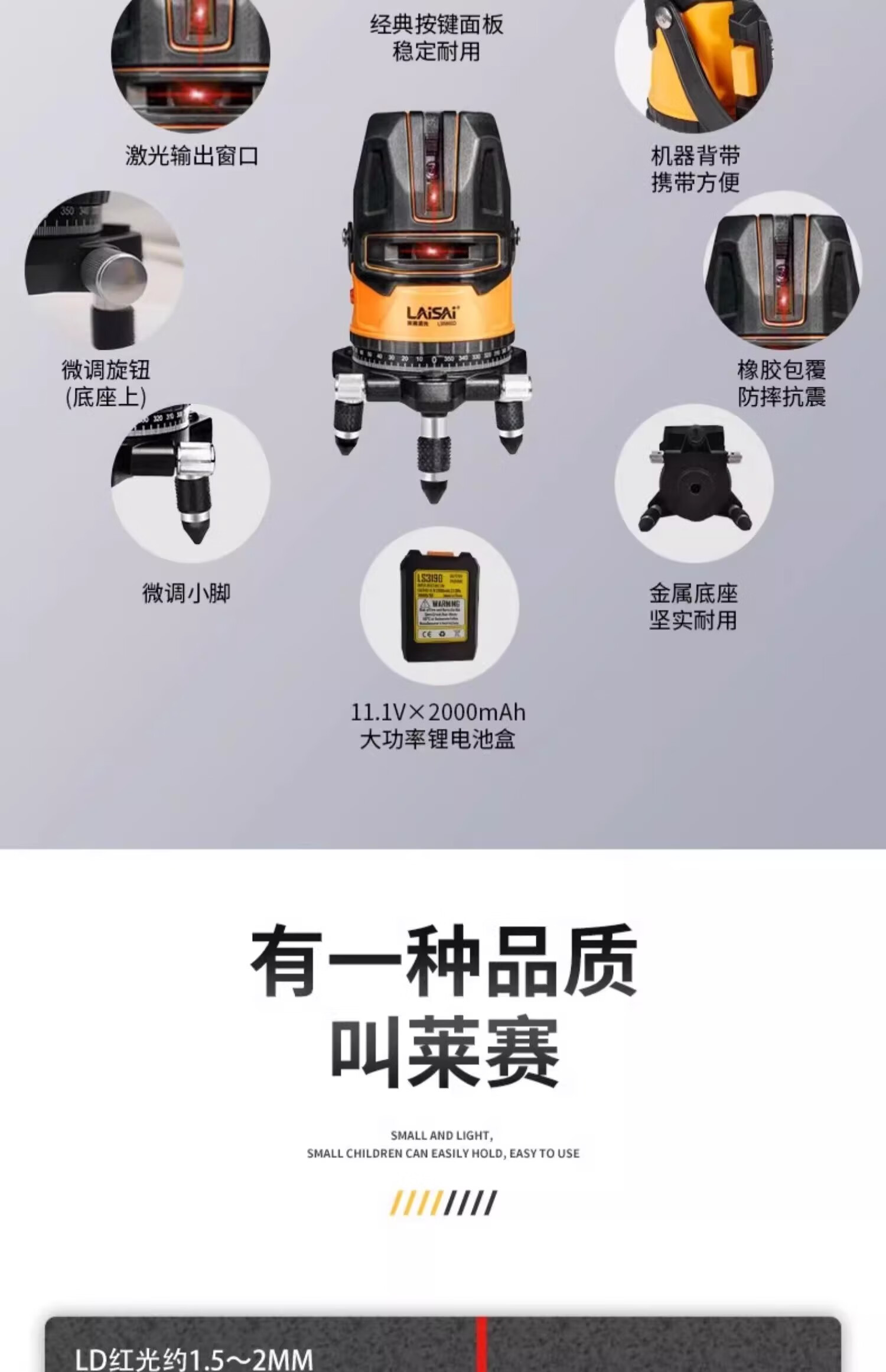Laisai laser level LSG6860D level green light 3-line 5-line strong light mark line meter high-precision large lithium battery with strong light spot red light five-line LS6860D standard