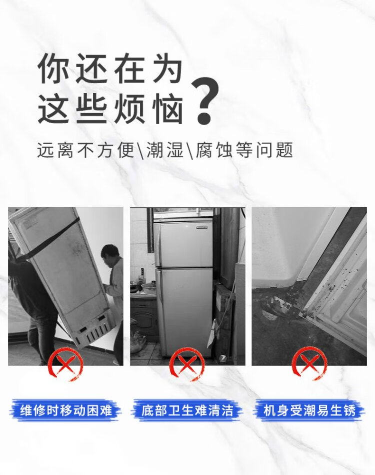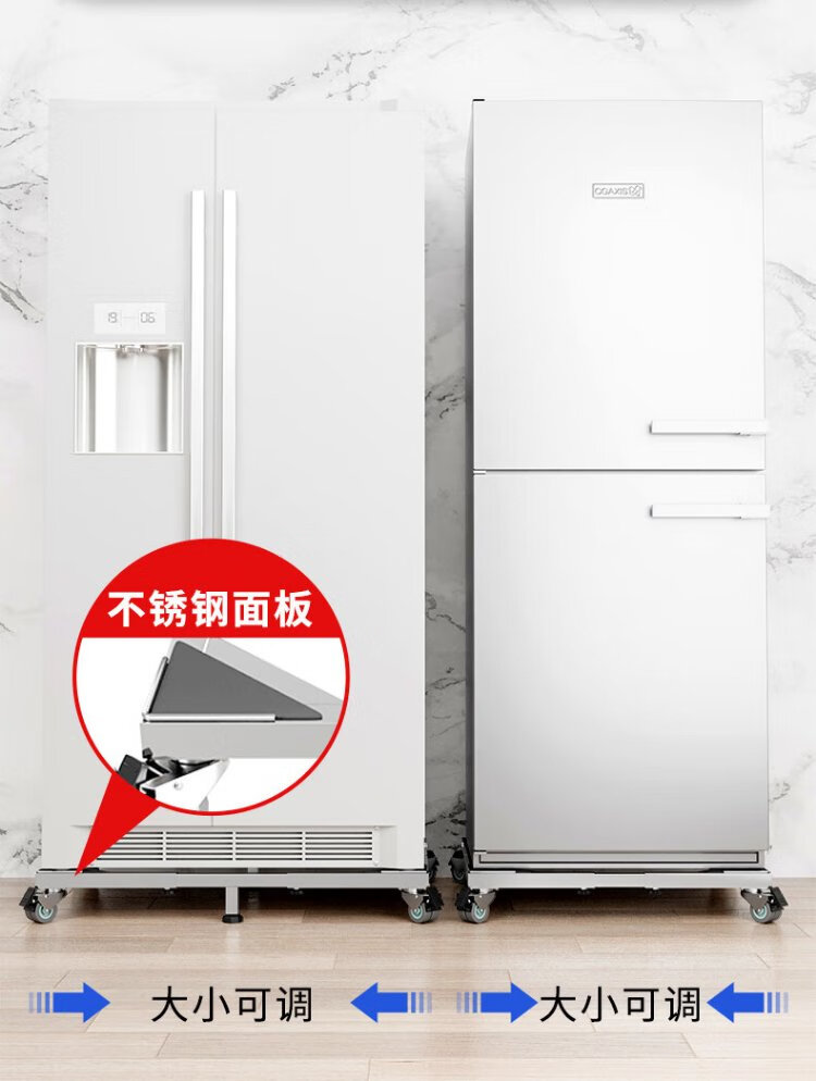 OUFENQI refrigerator base anti-slip and shock-proof foot pad rack washing machine air conditioner removable universal wheel heightening bracket pulley tray universal single door refrigerator stainless steel original color