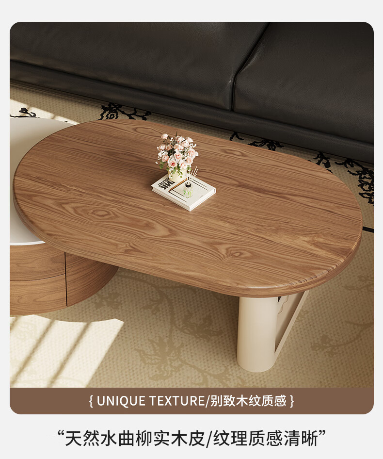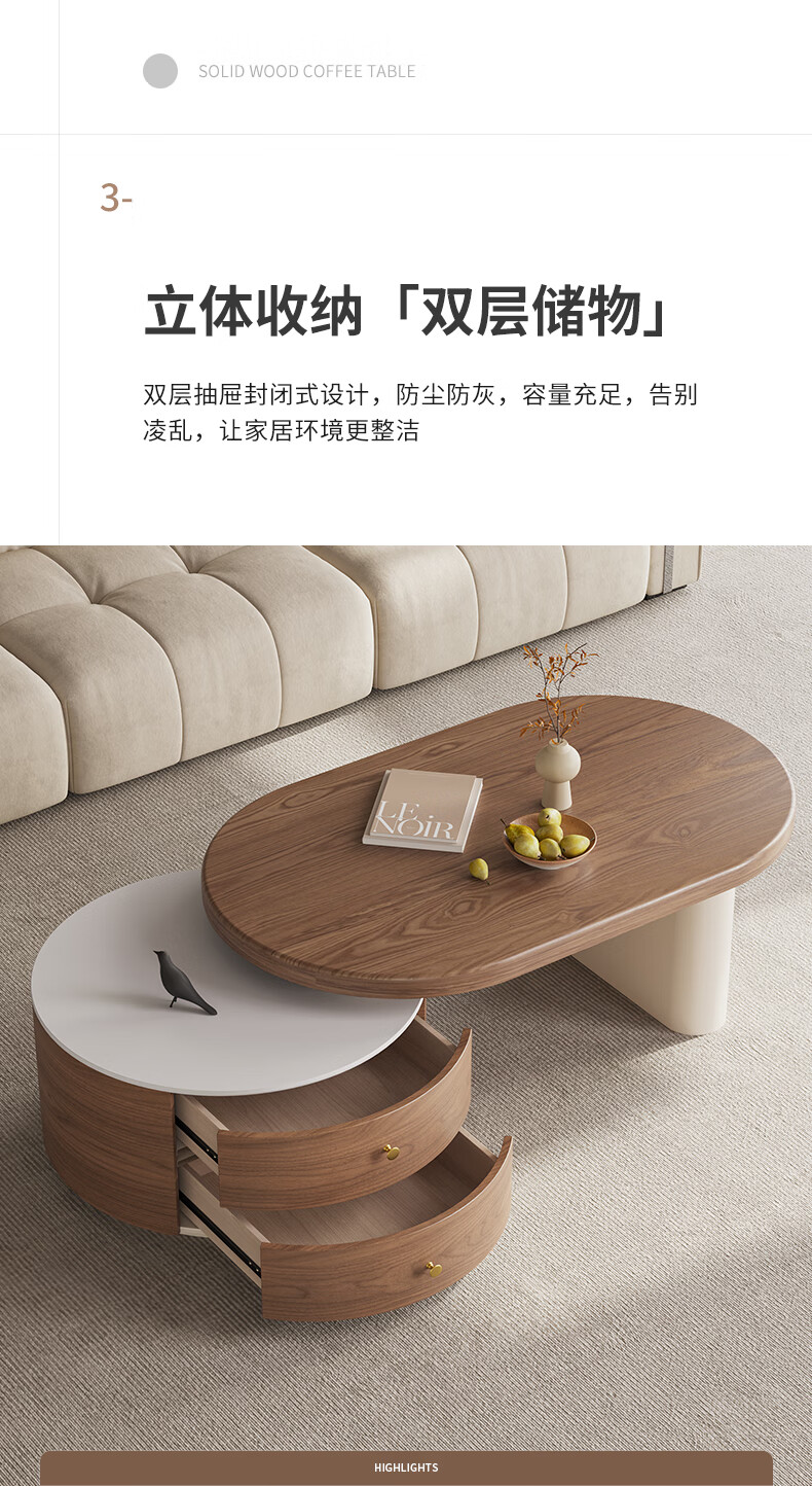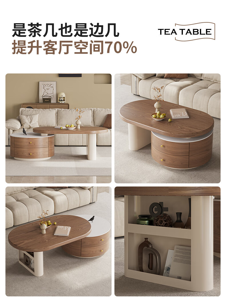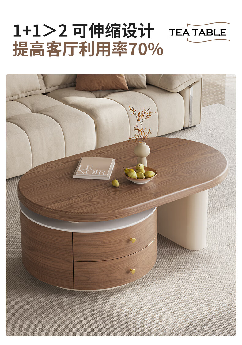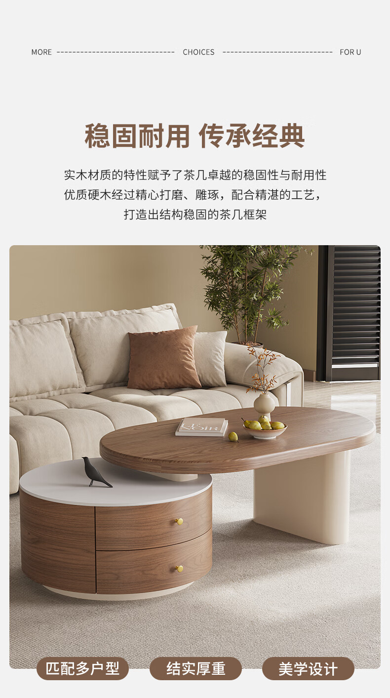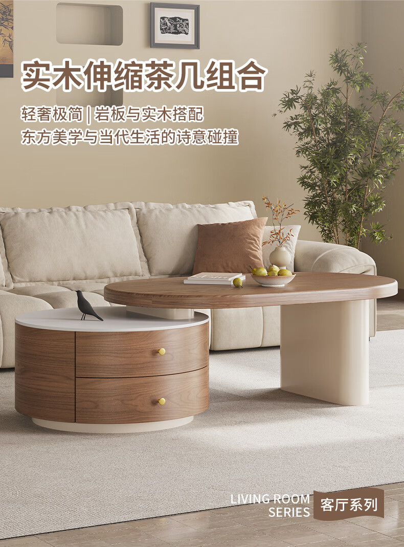 Zuo Ke Zuo's home antique solid wood retractable coffee table living room household small apartment 2025 new retro high-end light luxury tea table combination solid wood thick round retractable coffee table 120cm