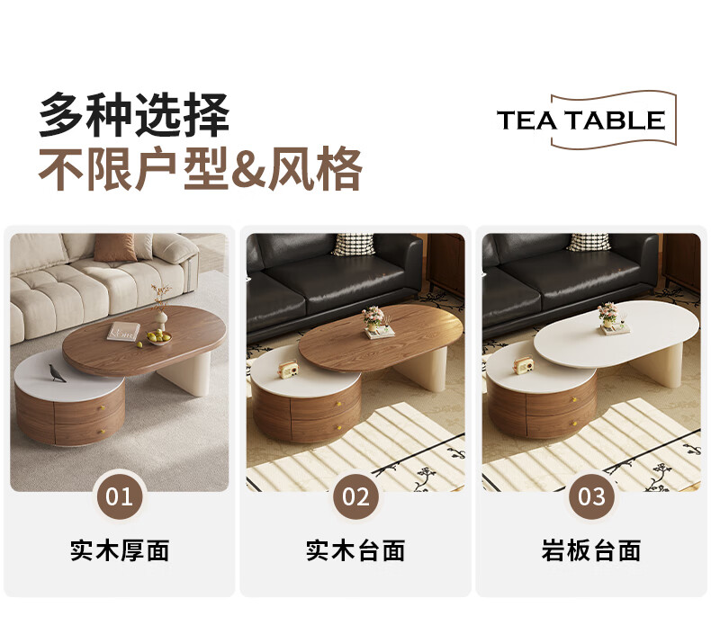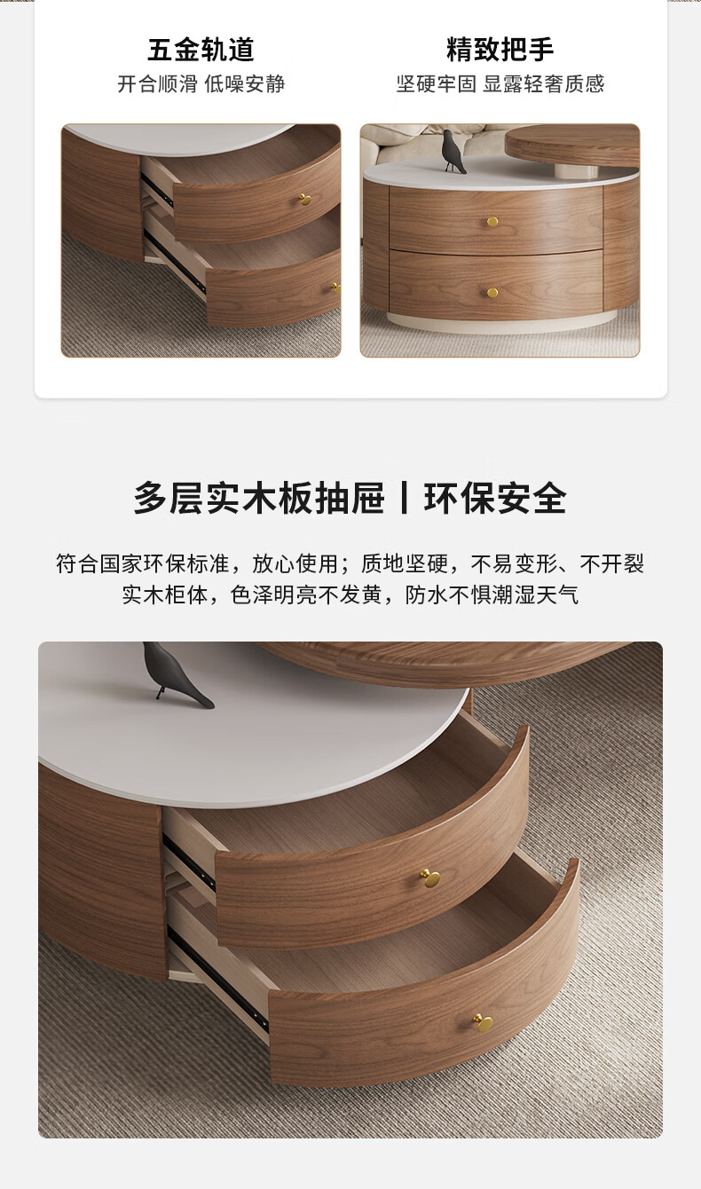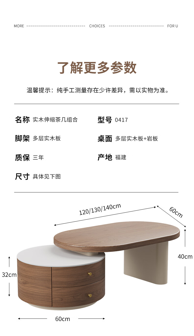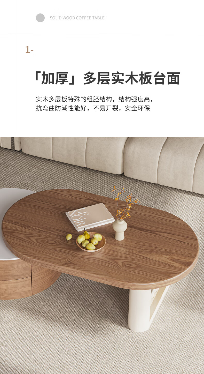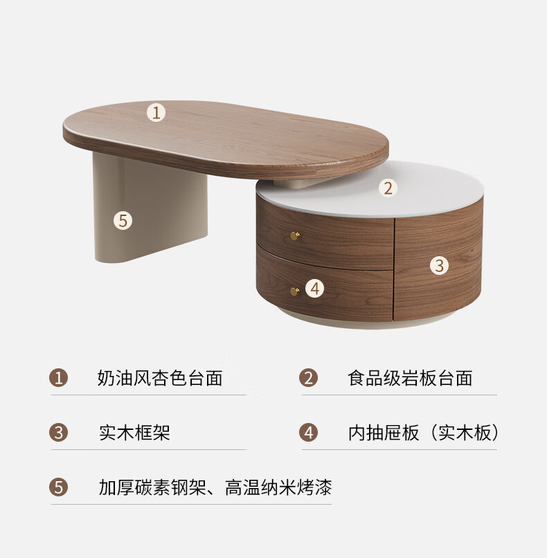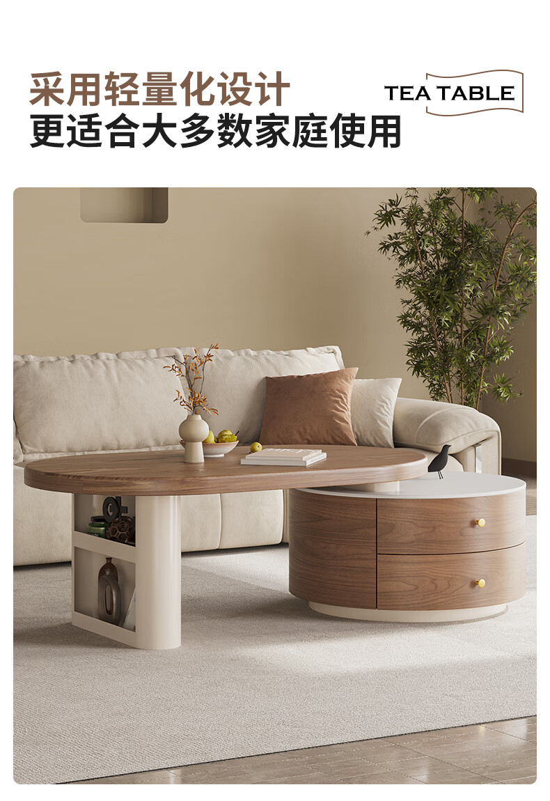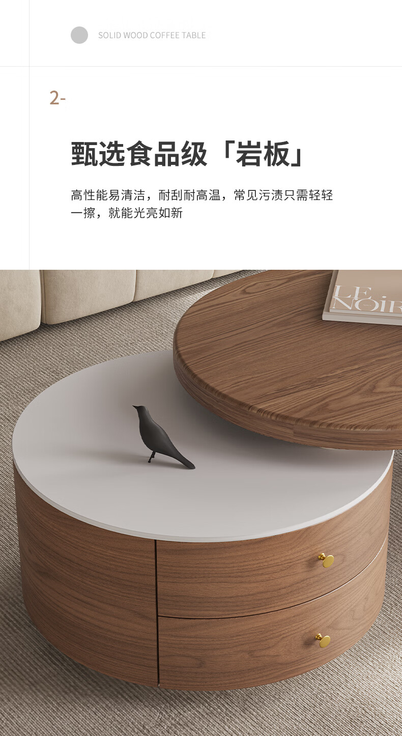 Zuo Ke Zuo's home antique solid wood retractable coffee table living room household small apartment 2025 new retro high-end light luxury tea table combination solid wood thick round retractable coffee table 120cm